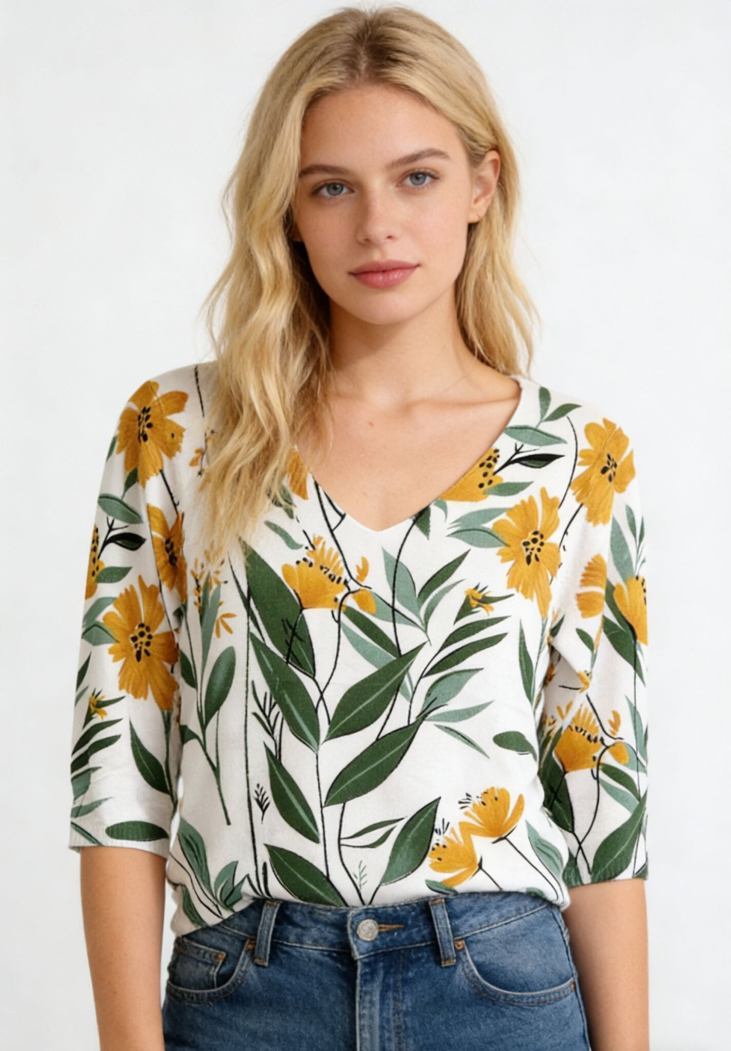 Dámský svetřík s 3/4 rukávem. Svetr má výstřih do V, jednoduchý střih, příjemný materiál.