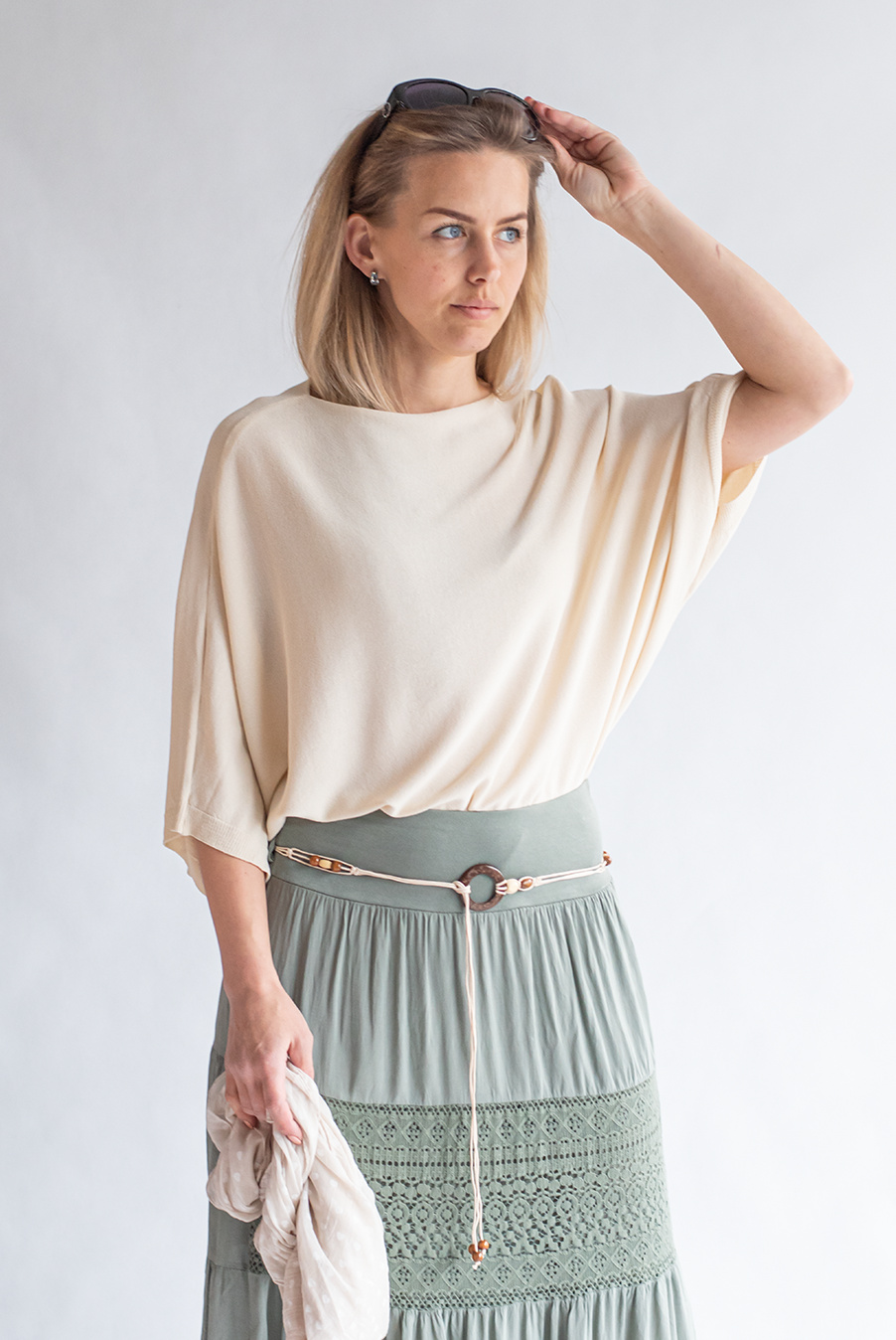 Módní volnočasový svetřík volnějšího netopýřího střihu