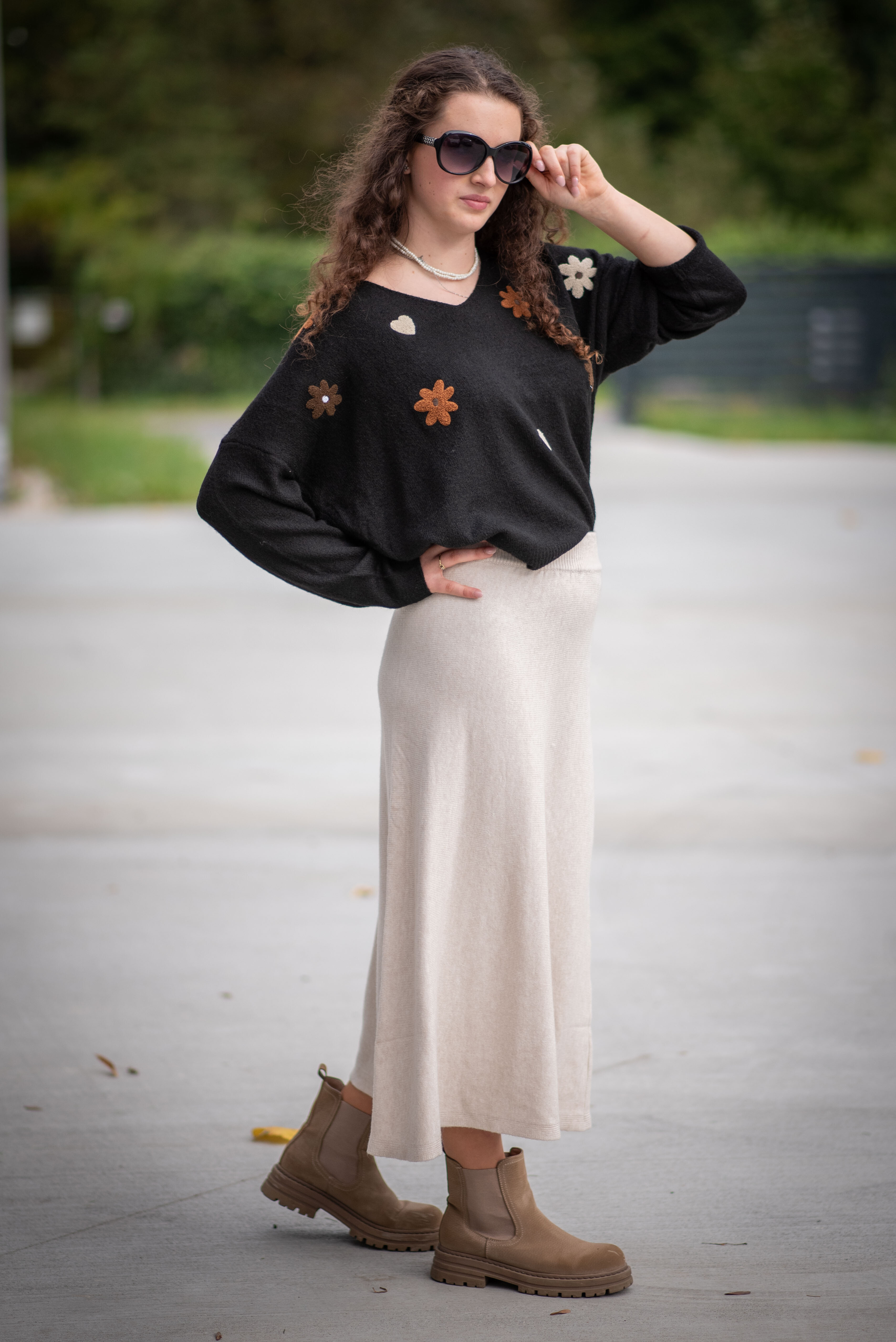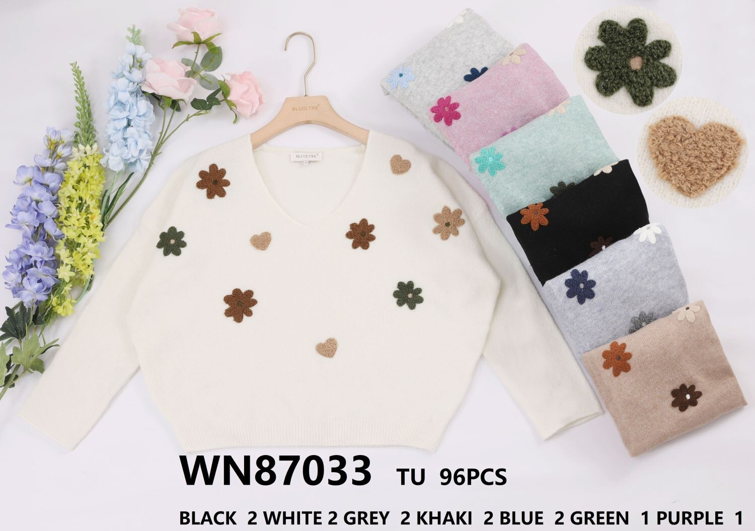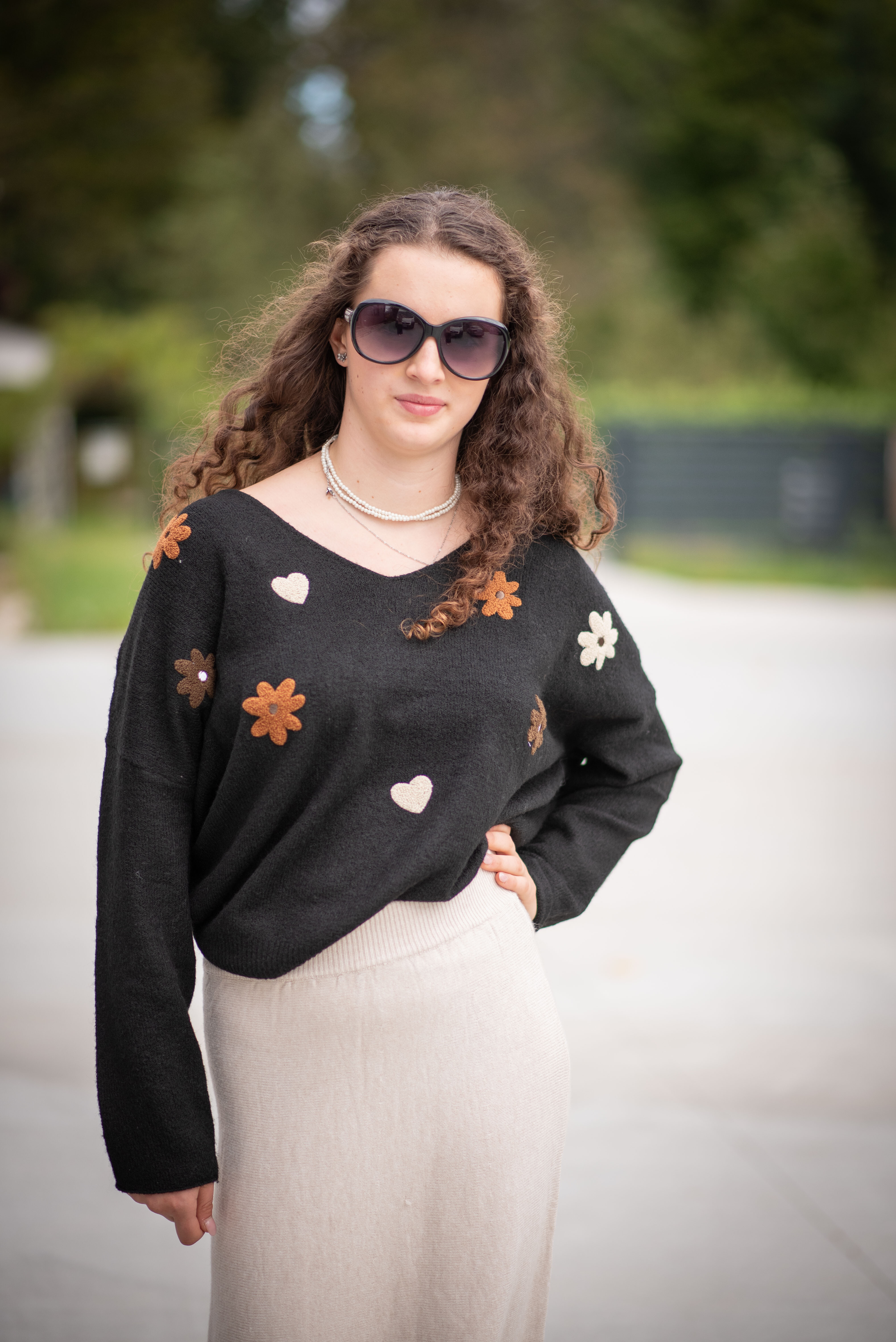 Svetřík oversize, výstřih do V, doplněno výšivkou. Dovoz Itálie