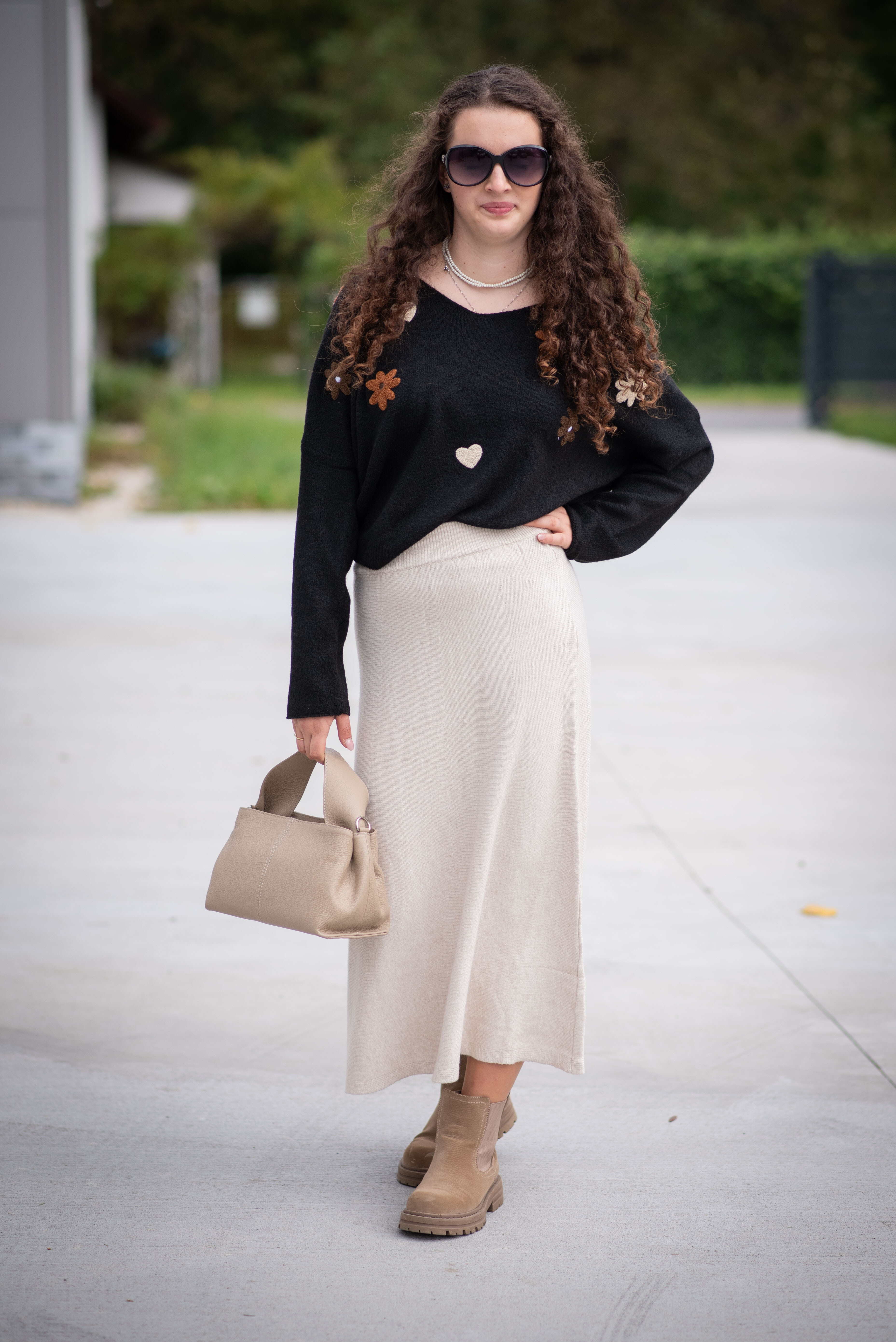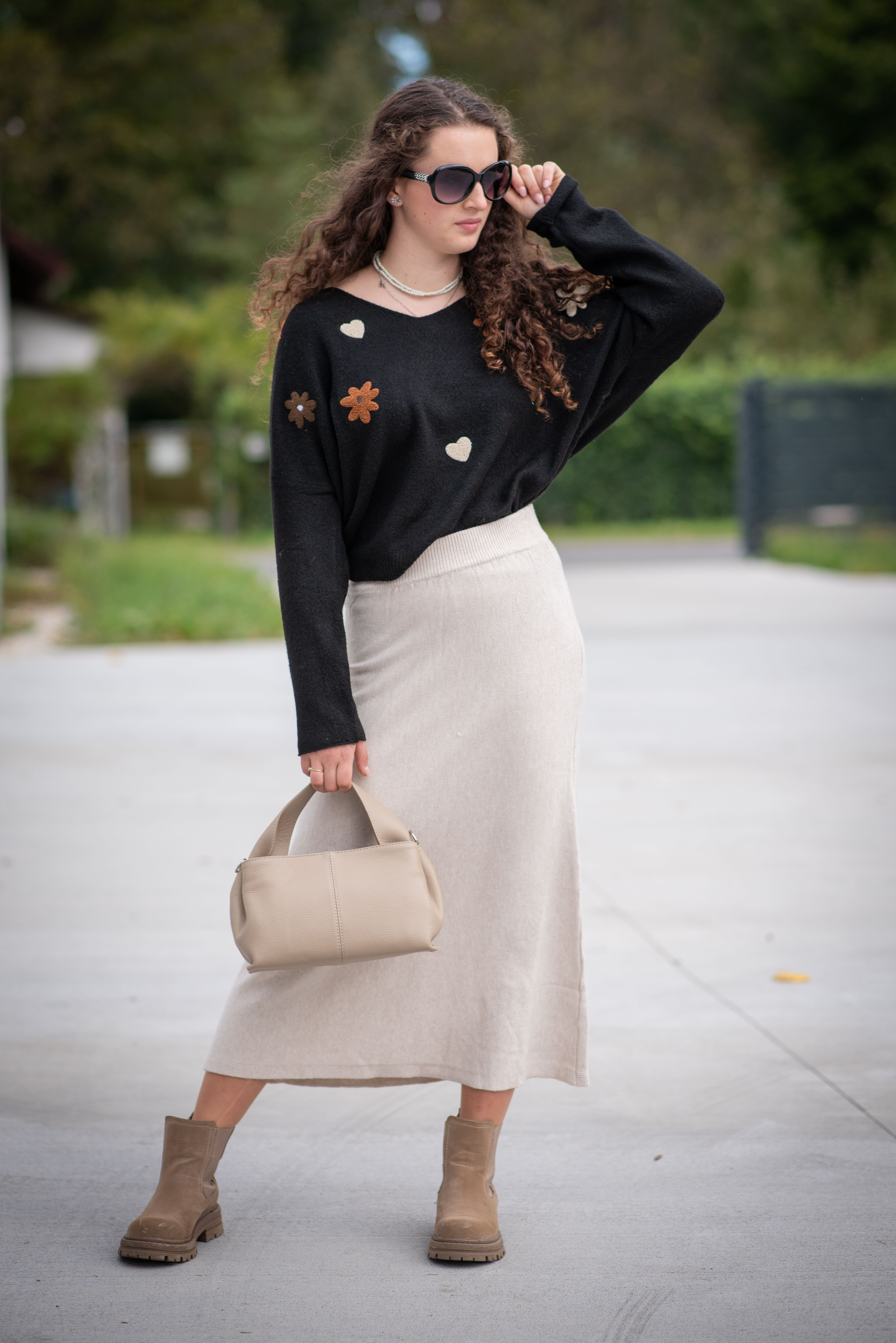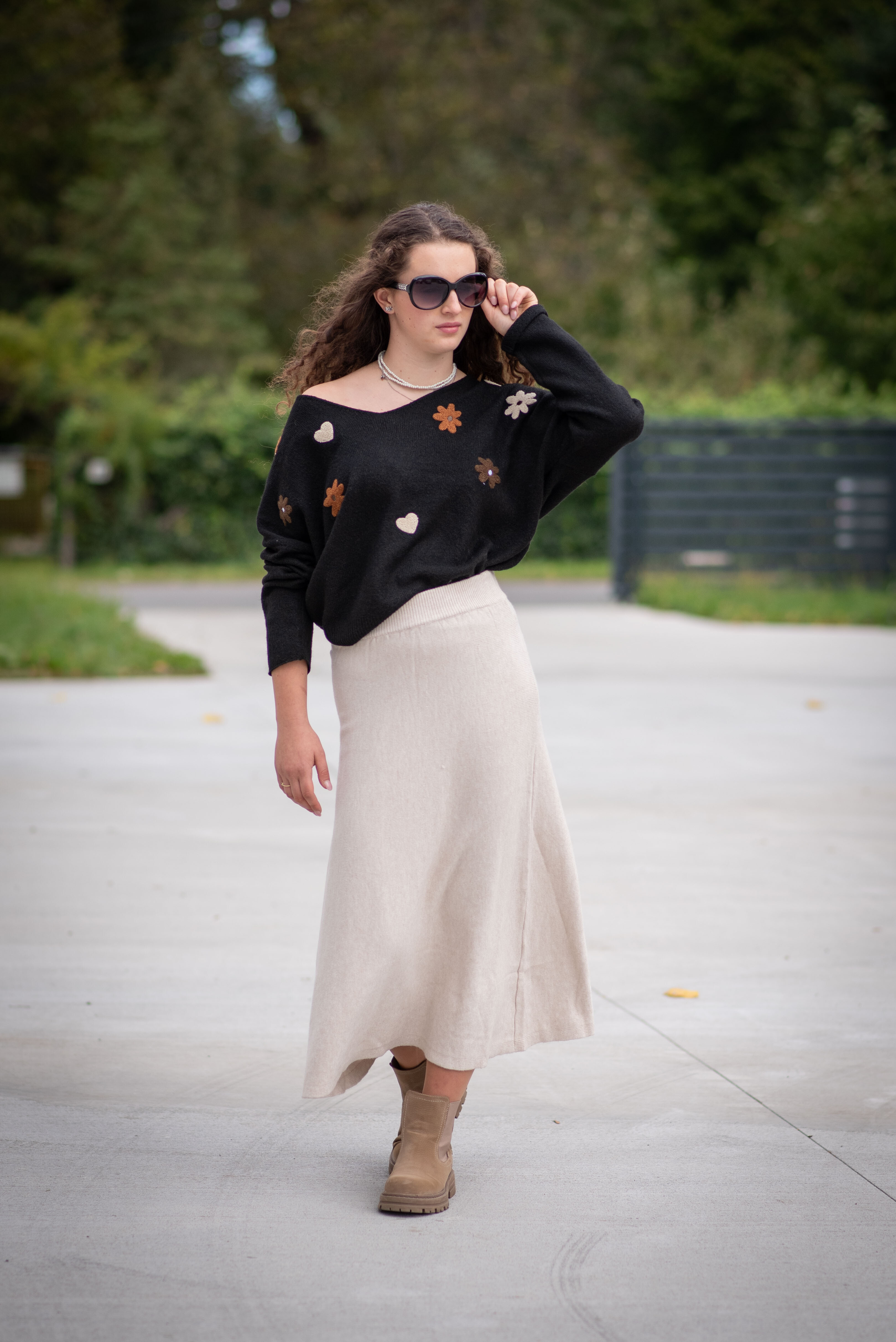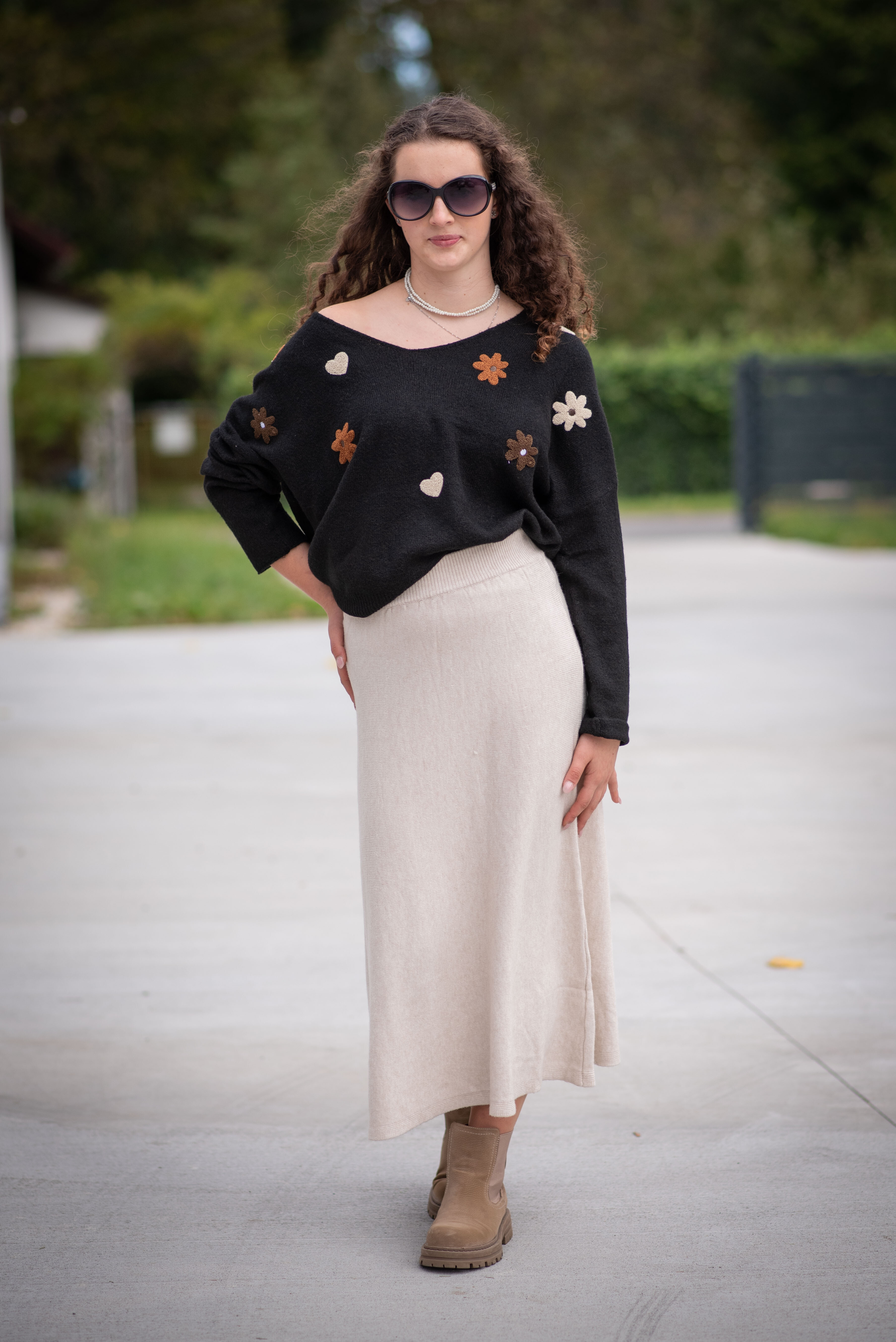Svetřík oversize, výstřih do V, doplněno výšivkou. Dovoz Itálie