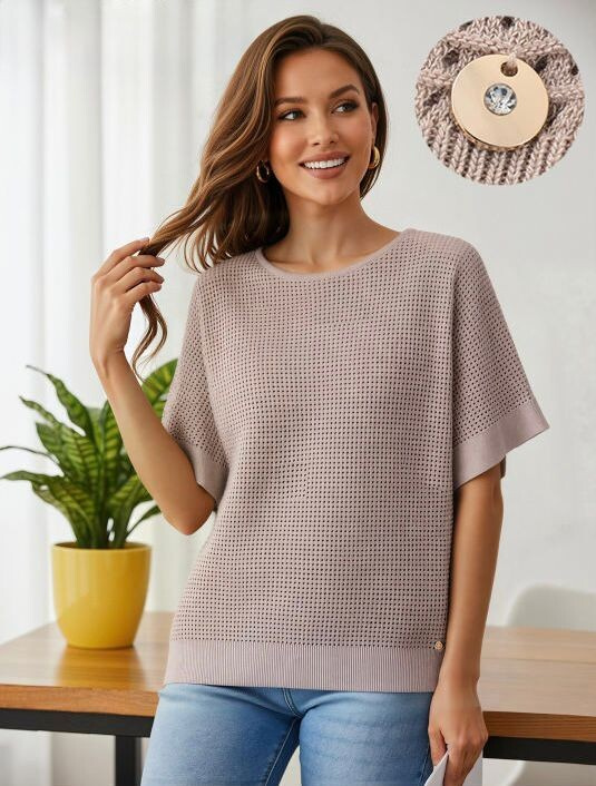 Módní přízový svetřík/halenka s krátkým raglánovým rukávem. Svetřík je volnějšího střihu.