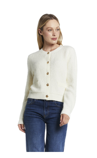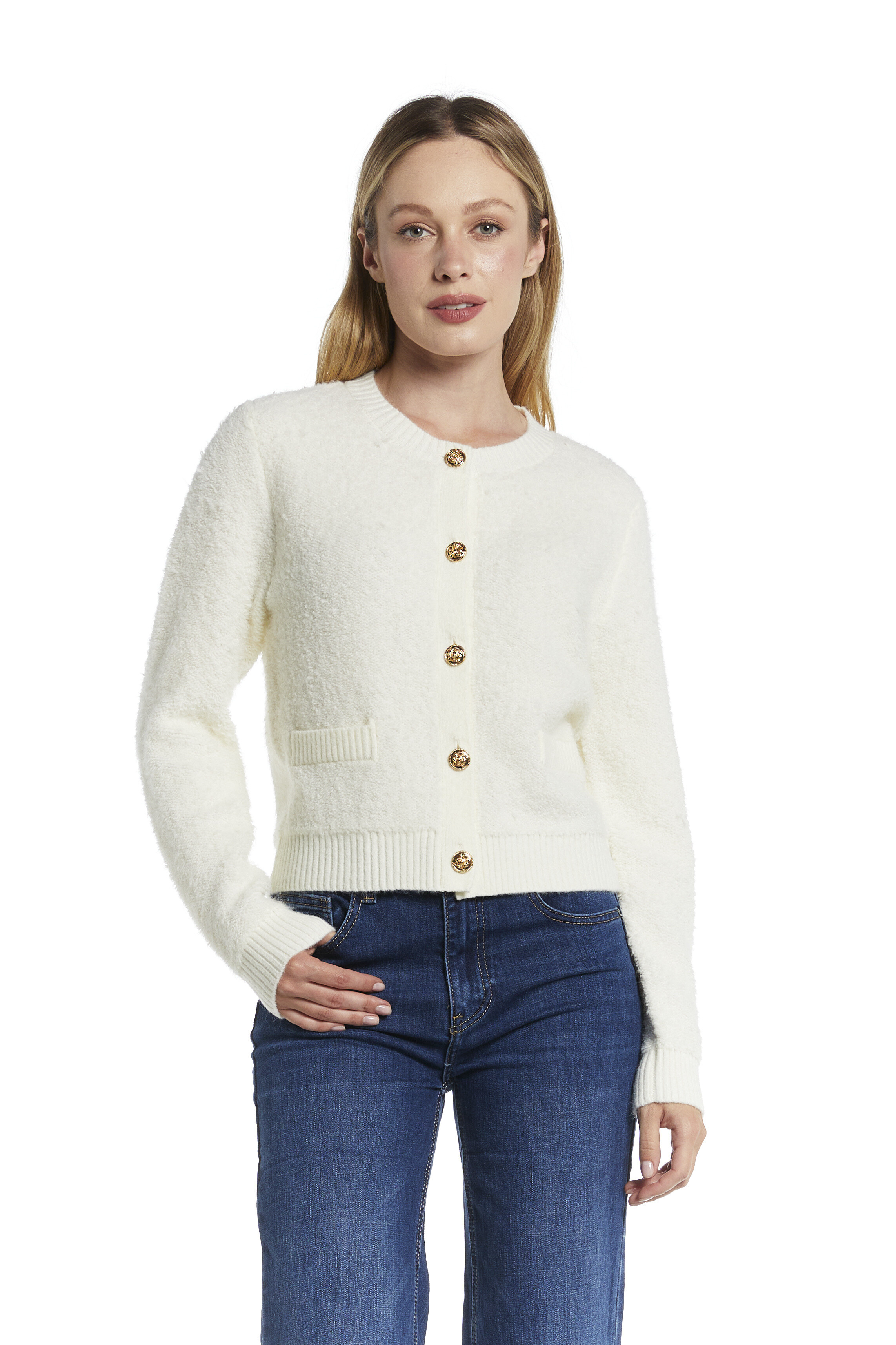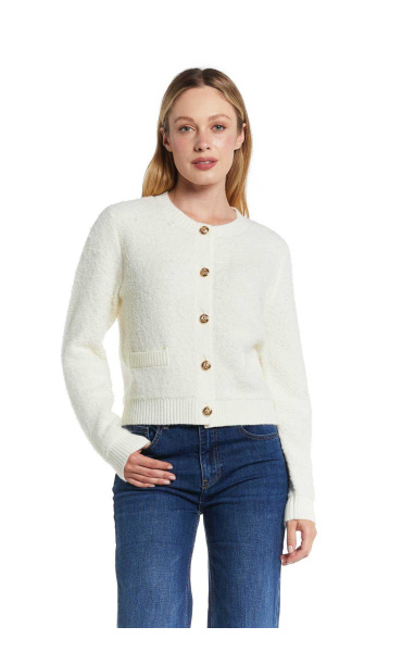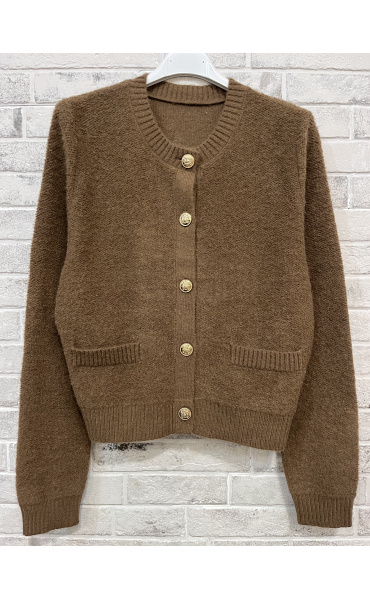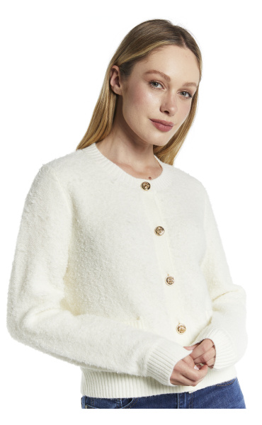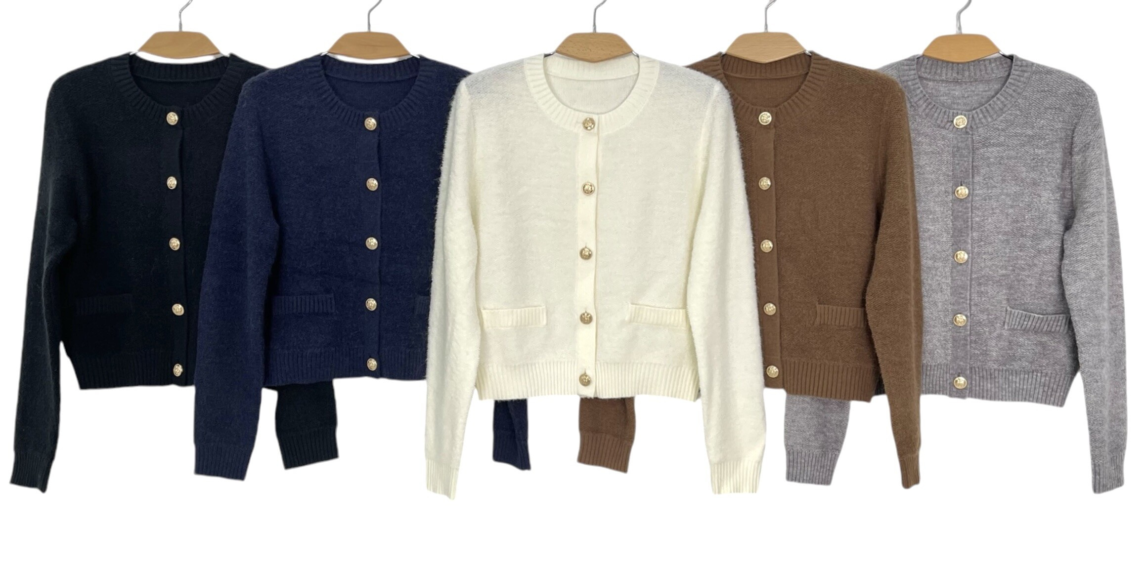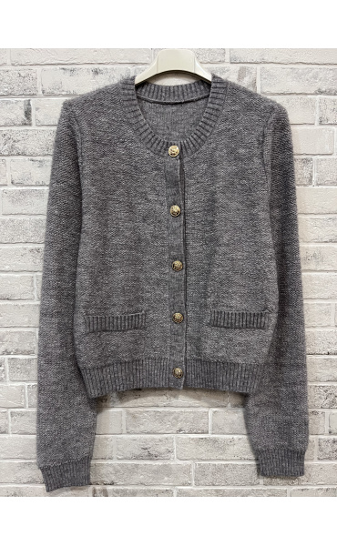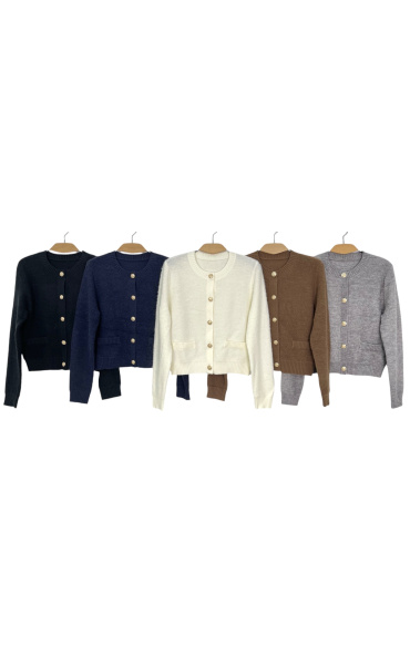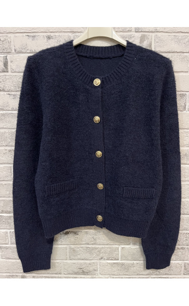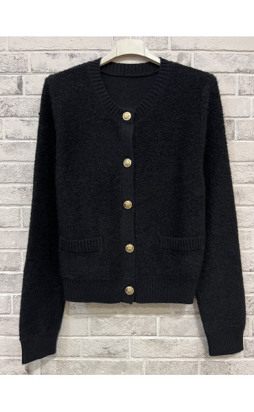 Elegantní svetřík propínací z jemného úpletu, elegantní zlaté knoflíky.