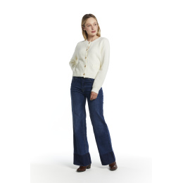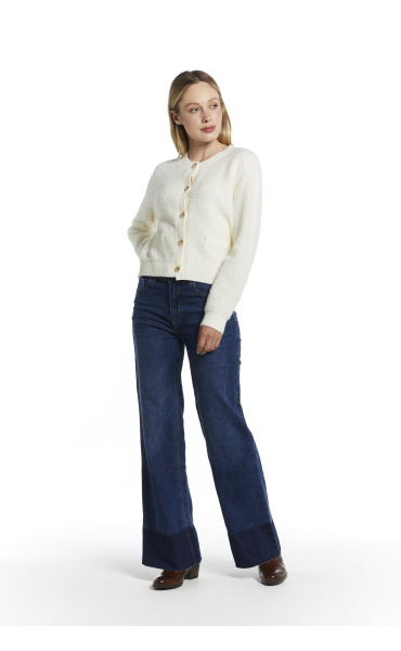 Elegantní propínací design s knoflíky dodává svetříku moderní vzhled, který snadno zkombinujete s různými styly oblečení. Střih je navržen tak, aby lichotil každé postavě, a díky elastickému úpletu se přizpůsobí vašim křivkám. Rukávy a spodní lem jsou zakončeny jemným žebrováním, které dodává svetříku sofistikovaný vzhled.