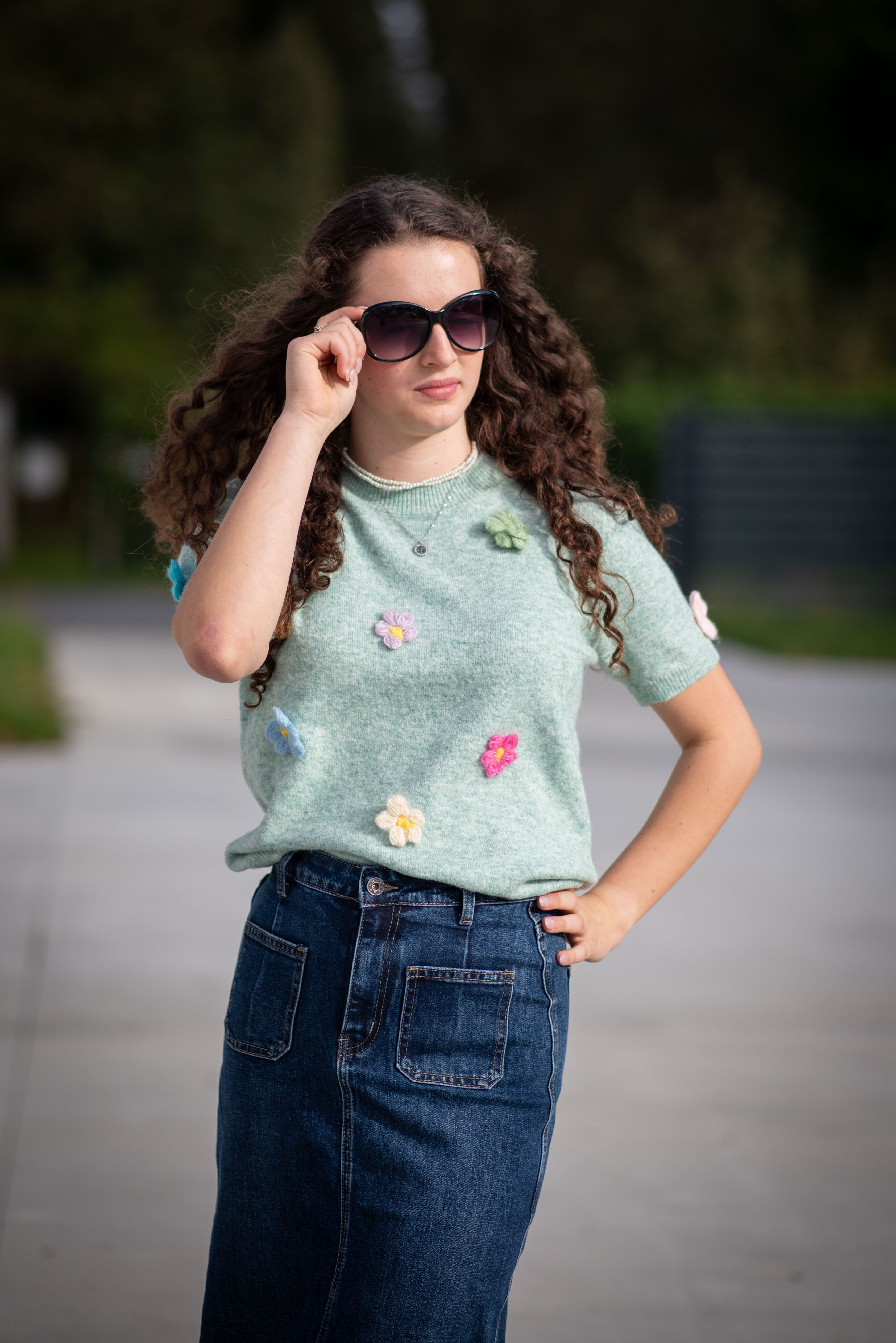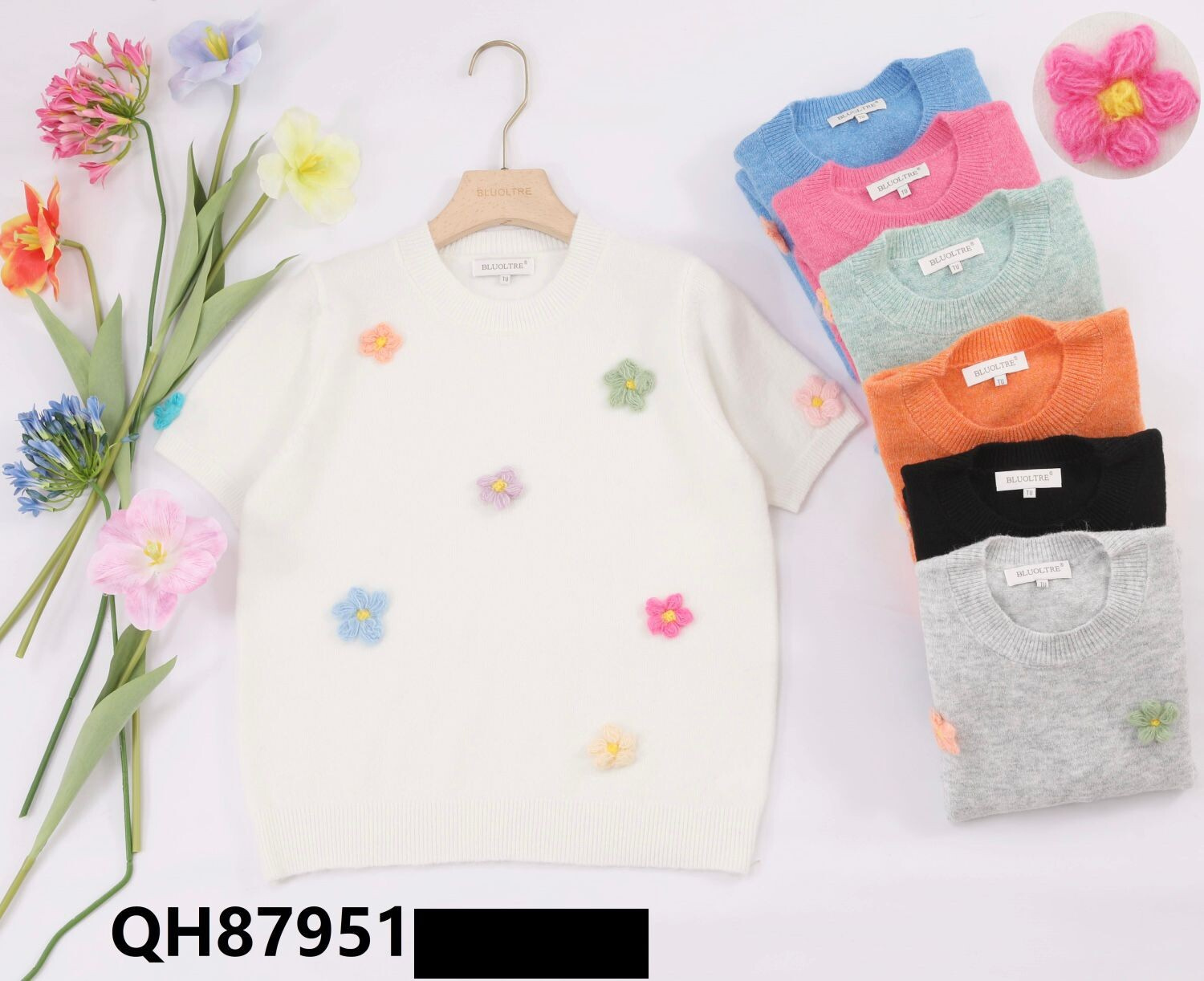Svetřík s aplikací květin QH87951 Itálie
