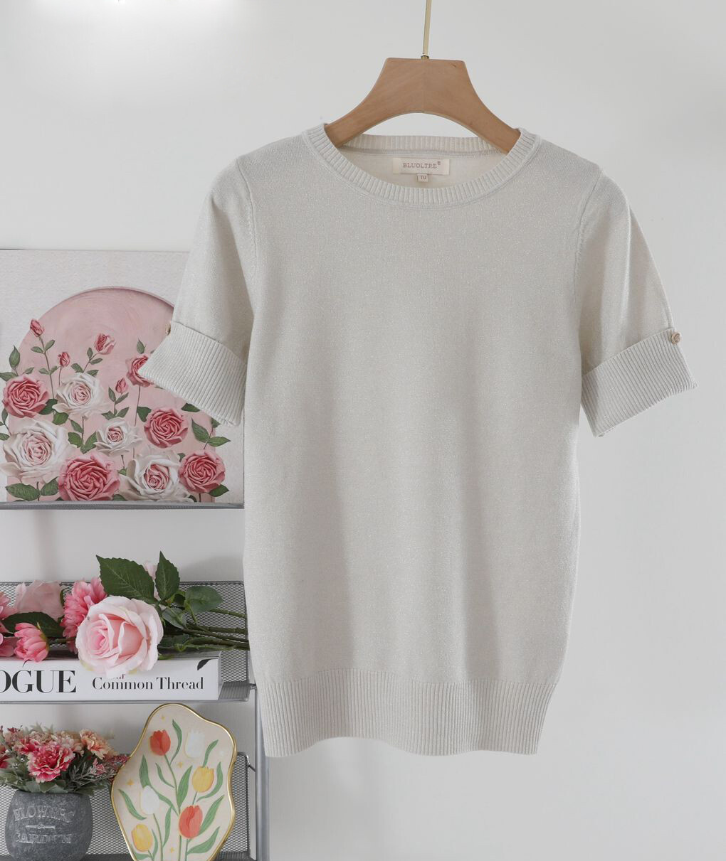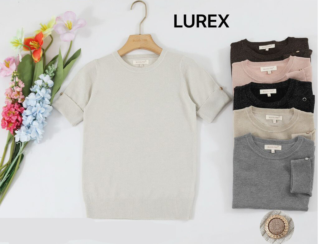 Elegantní svetřík s krátkým rukávem. Svetřík je z příjemného materiálu s lurexem, kulatý výstřih.