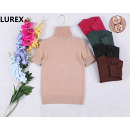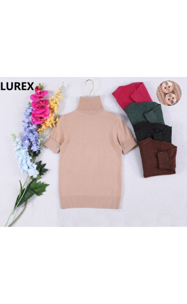 Svetřík s lurexem, krátkým zdobeným rukávem a rolákem ,