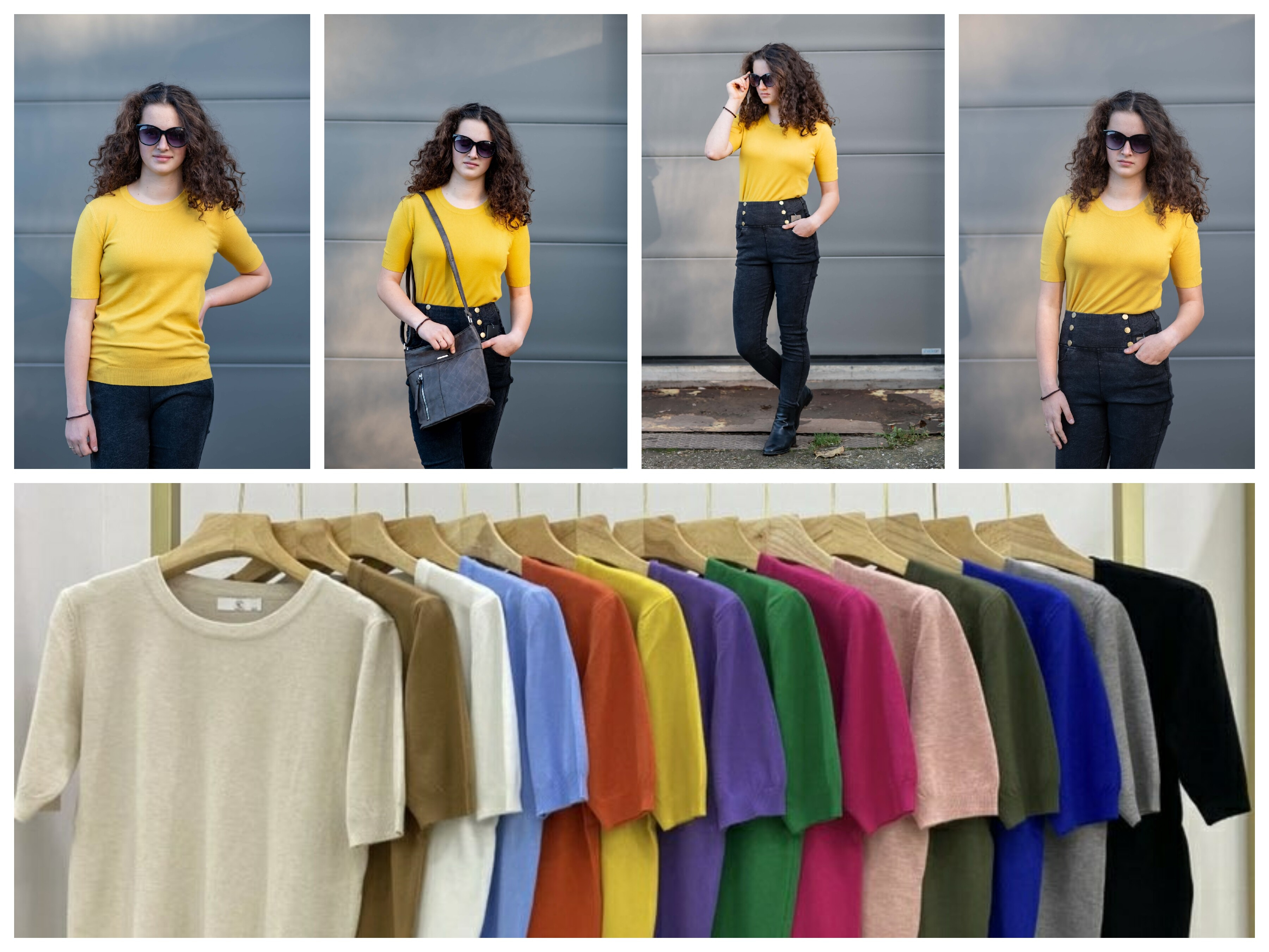 Elegantní svetřík s krátkým rukávem, kulatý výstřih