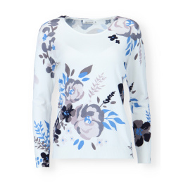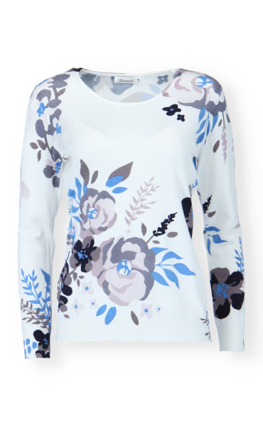 Módní úpletový svetřík s potiskem a kulatým výstřihem.