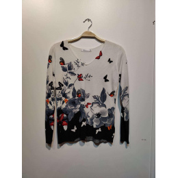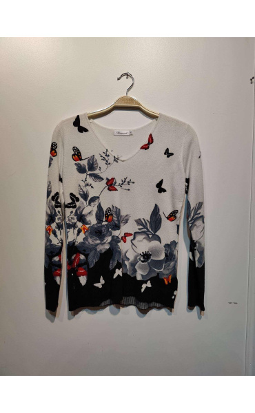 Módní úpletový svetřík s potiskem s výstřihem do V.