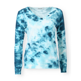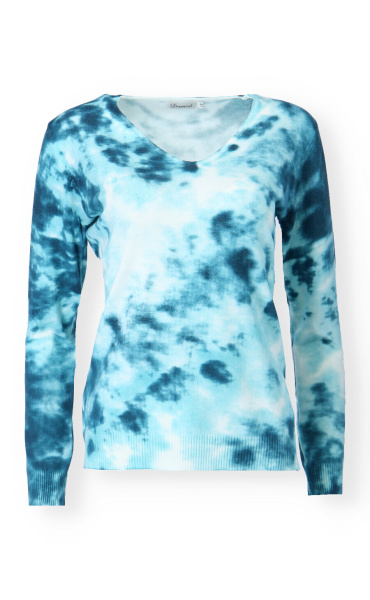 Módní úpletový svetřík s potiskem, véčkový výstřih