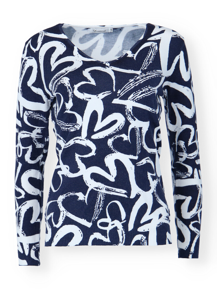 Módní úpletový svetřík s potiskem, véčkový výstřih.