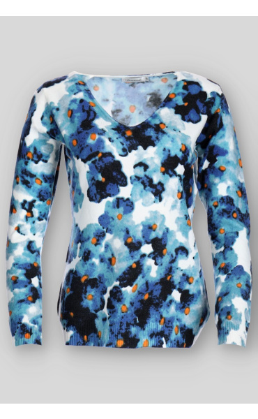 Módní úpletový svetřík s potiskem s výstřihem do V.
