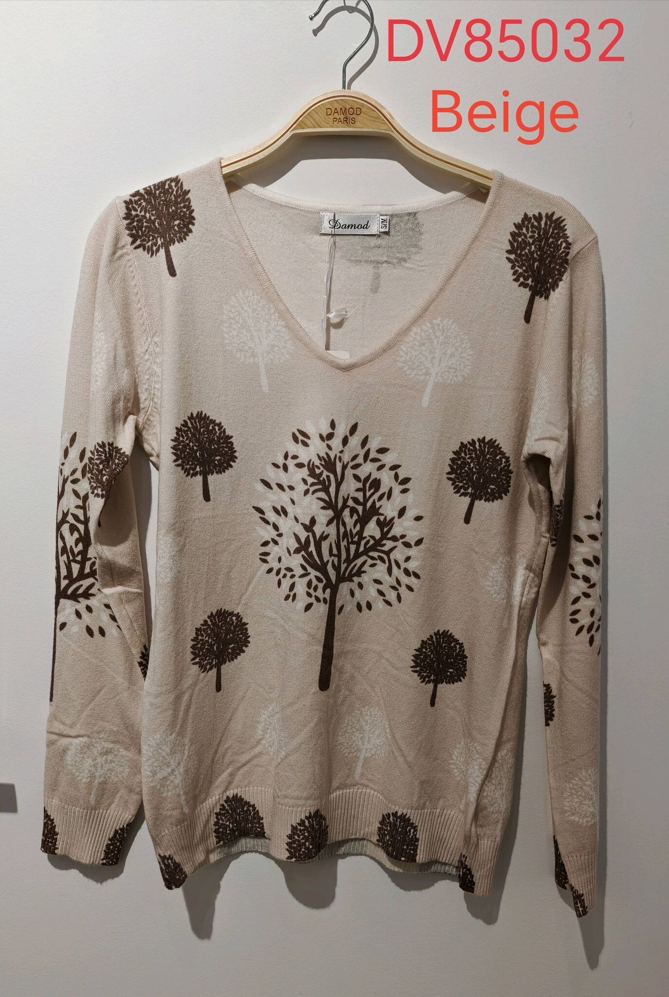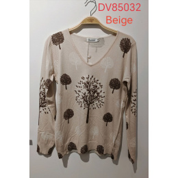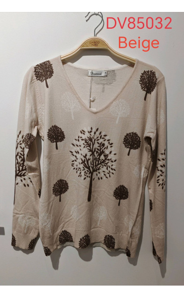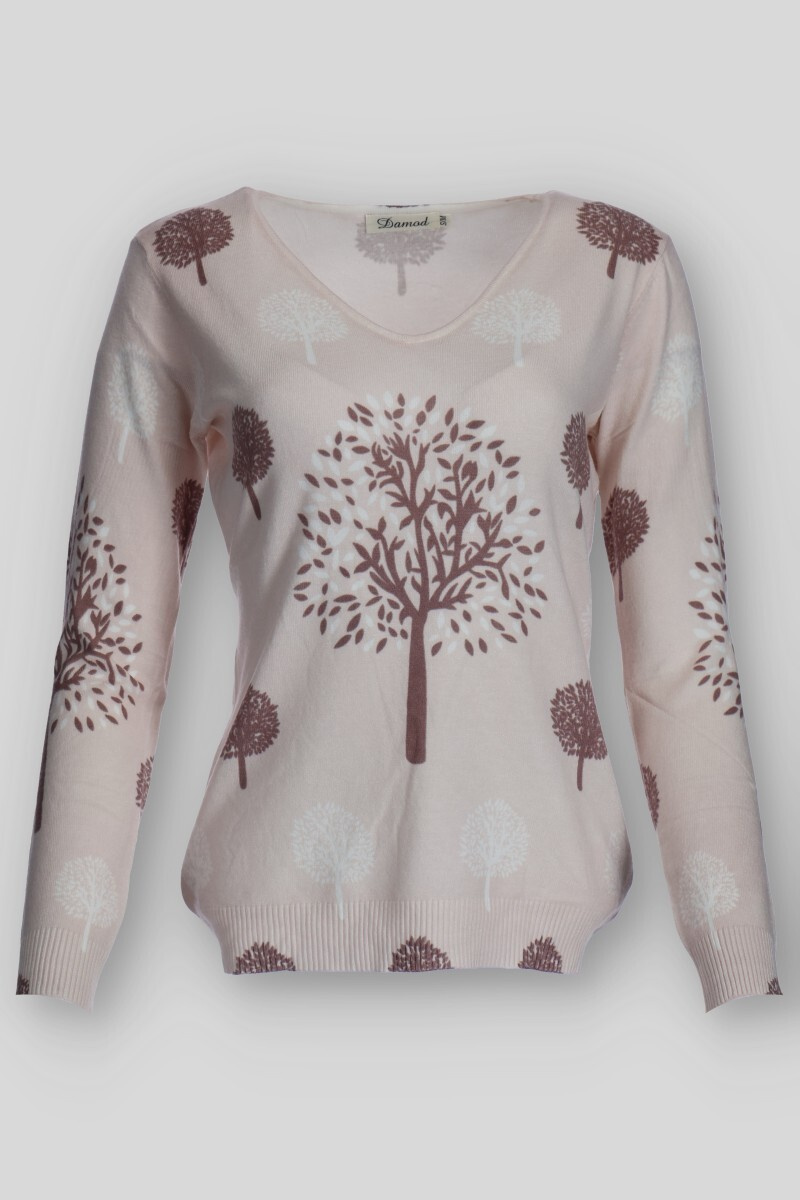 Módní úpletový svetřík s potiskem s výstřihem do V.