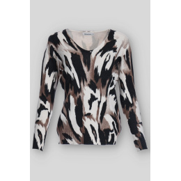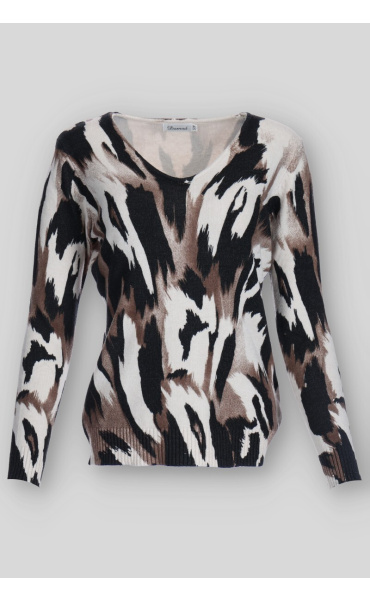 Módní úpletový svetřík s potiskem s výstřihem do V.