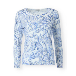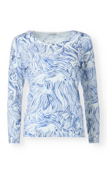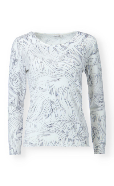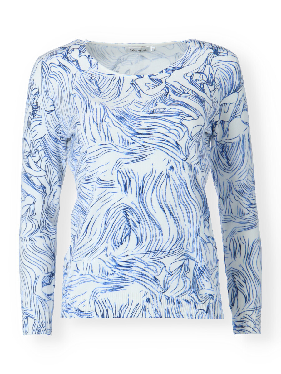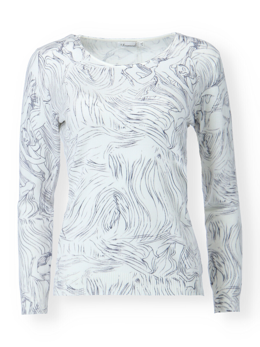Módní úpletový svetřík s potiskem a kulatým výstřihem.