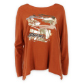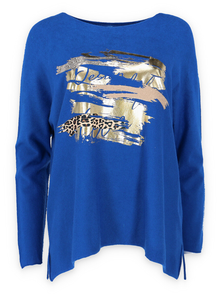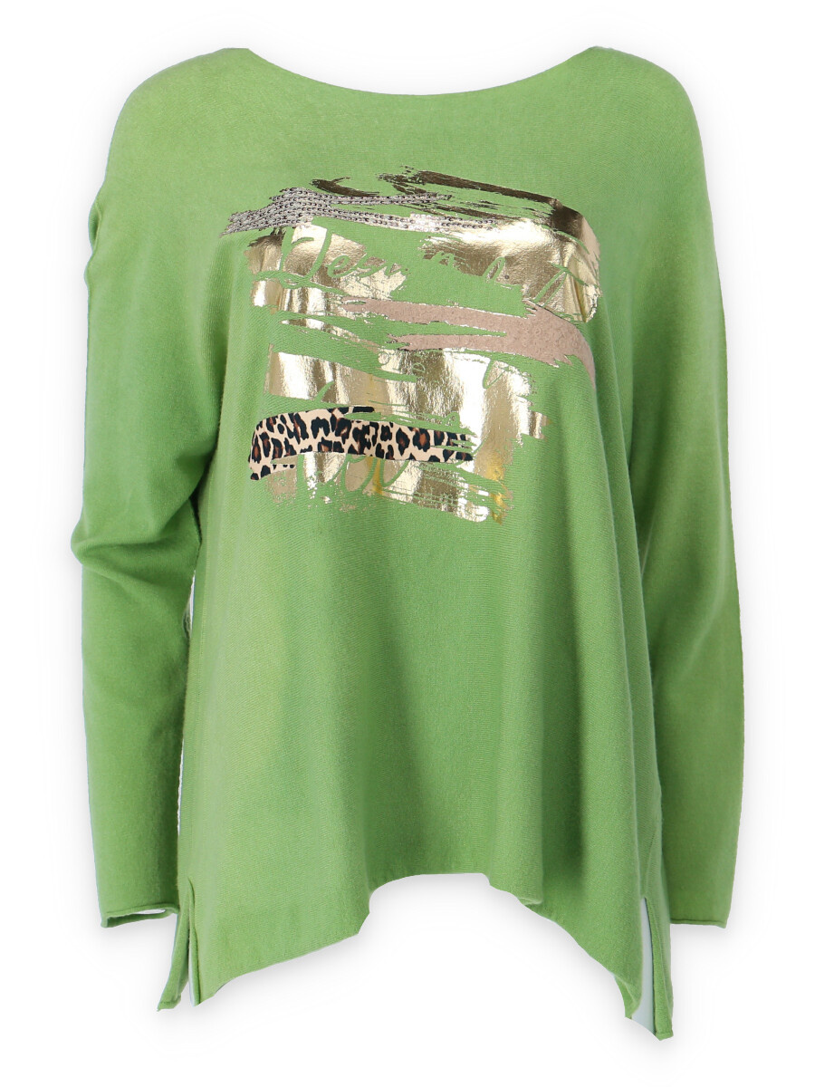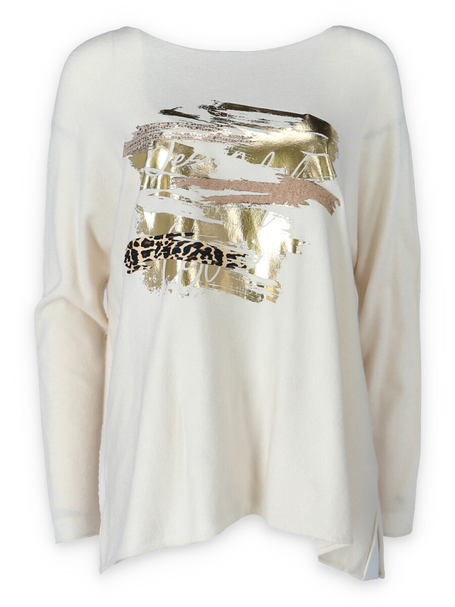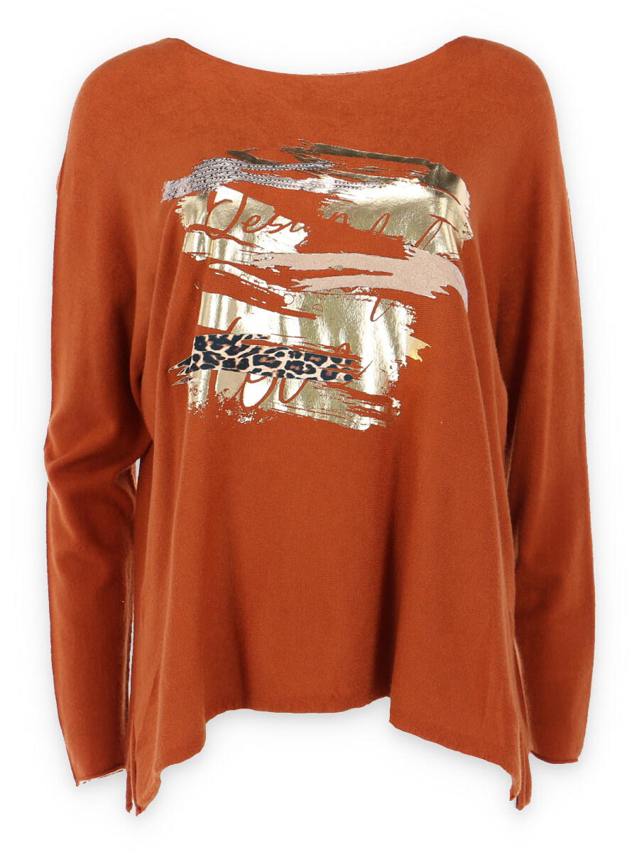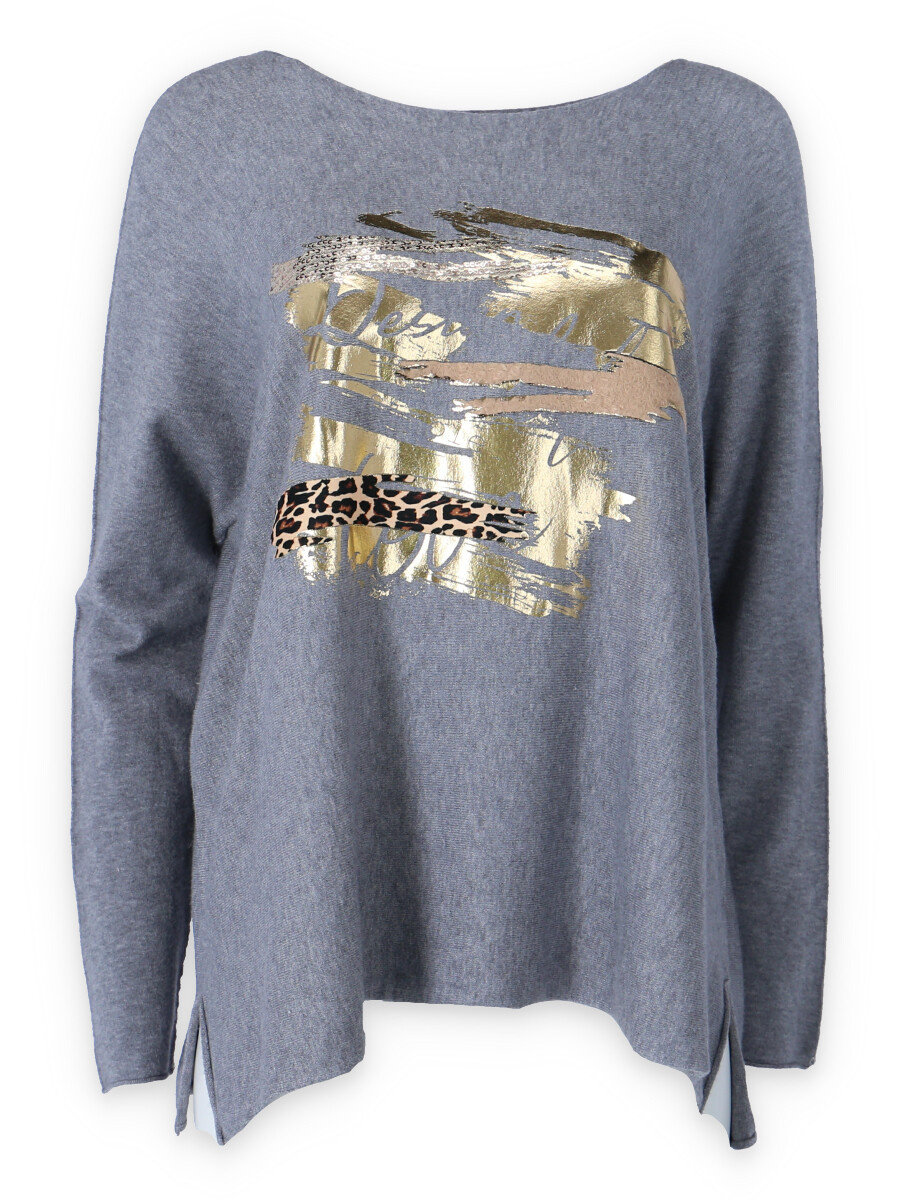 Módní volnočasový svetřík volnějšího střihu s potiskem.
