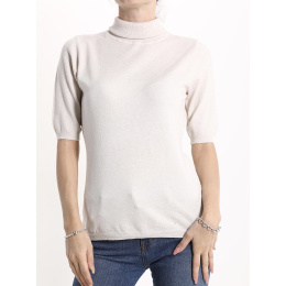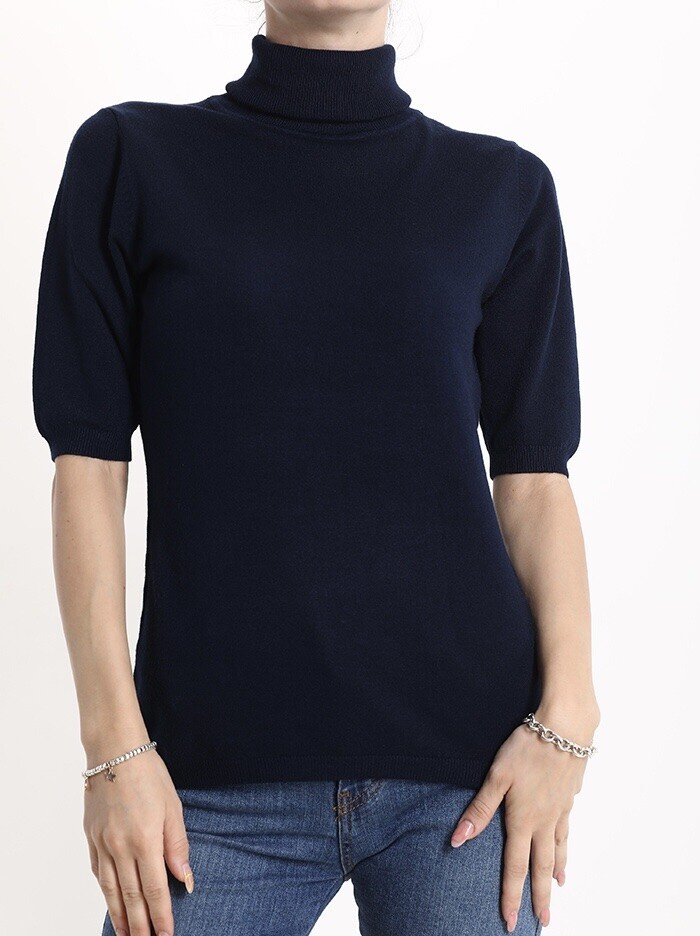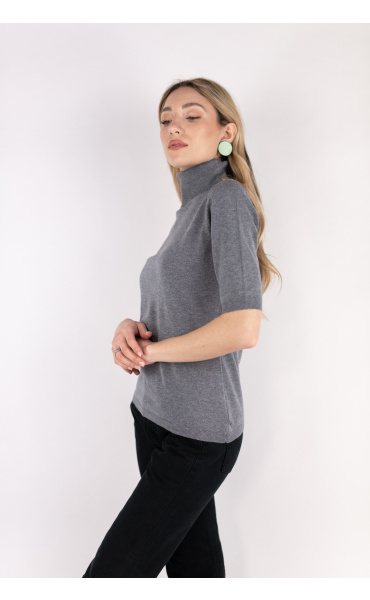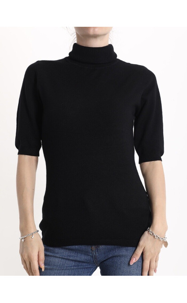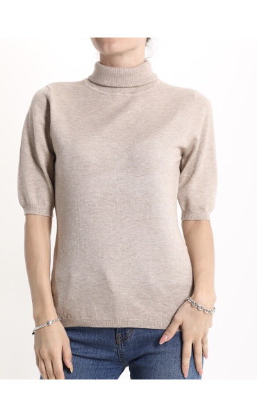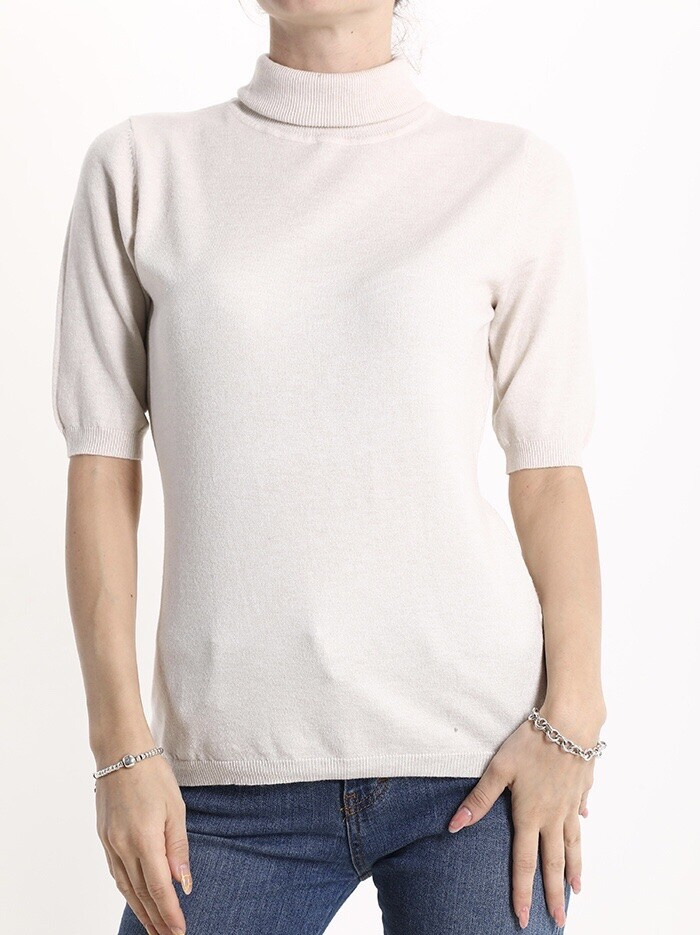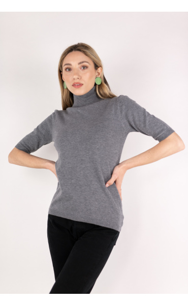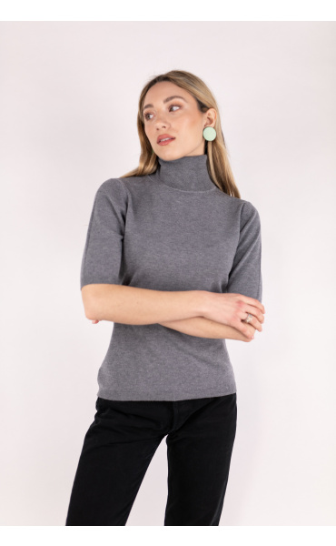Svetřík se pyšní elegantním stojáčkem, který dodává celkovému vzhledu sofistikovanost a jemnost. Krátké rukávy jsou ideální pro teplejší dny, ale zároveň umožňují snadné vrstvení pod sako nebo kabát v chladnějších měsících. Díky svému univerzálnímu designu se snadno kombinuje s různými styly oblečení, od elegantních kalhot po ležérní džíny.