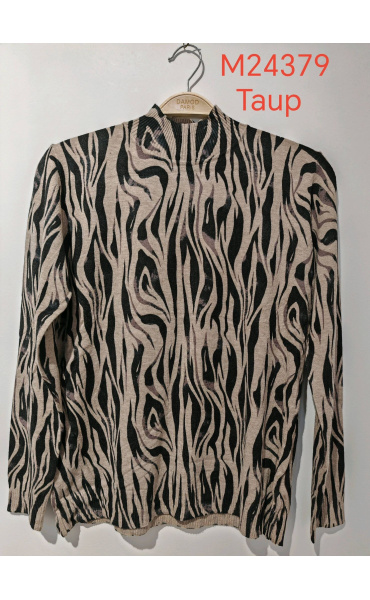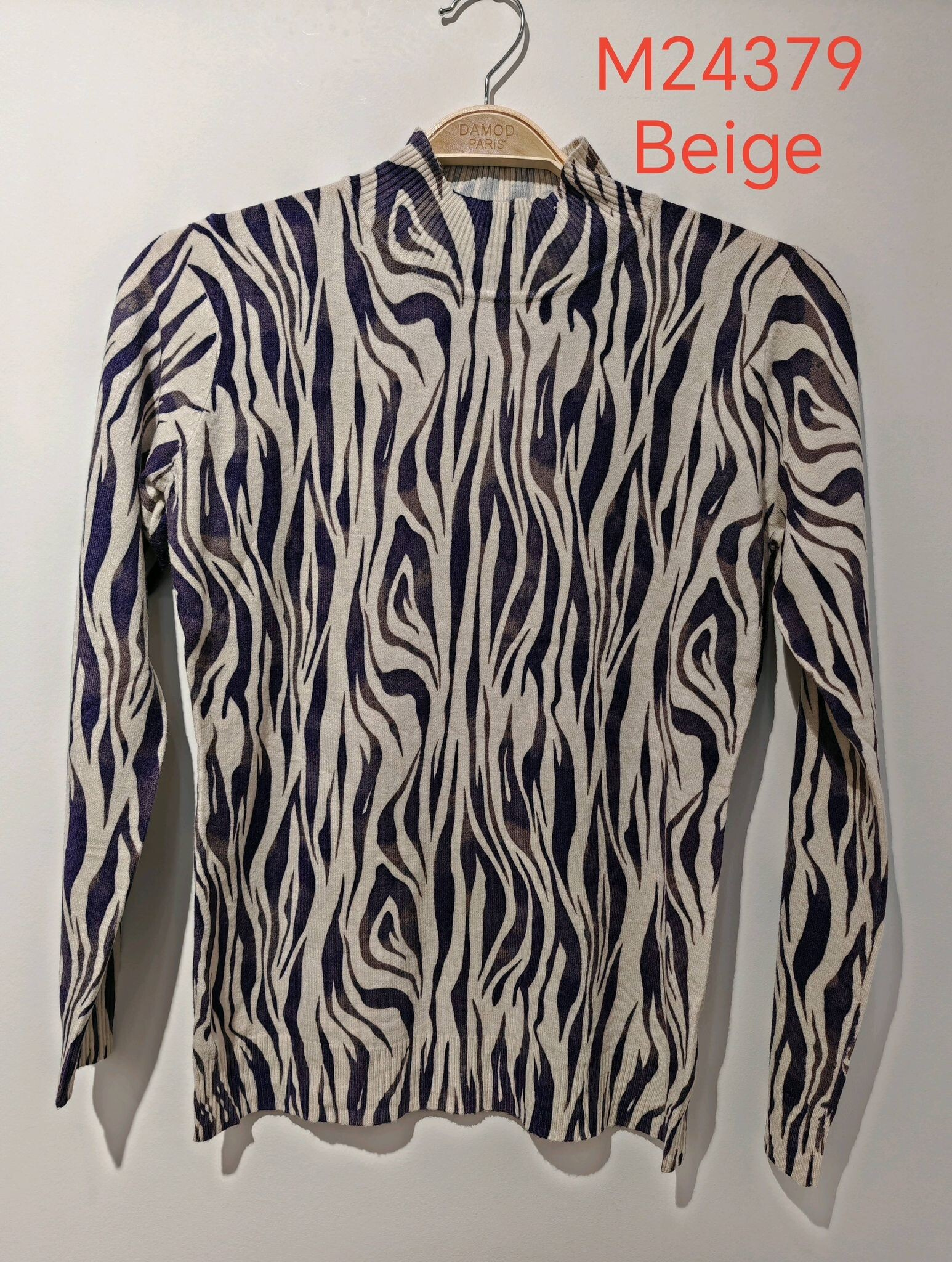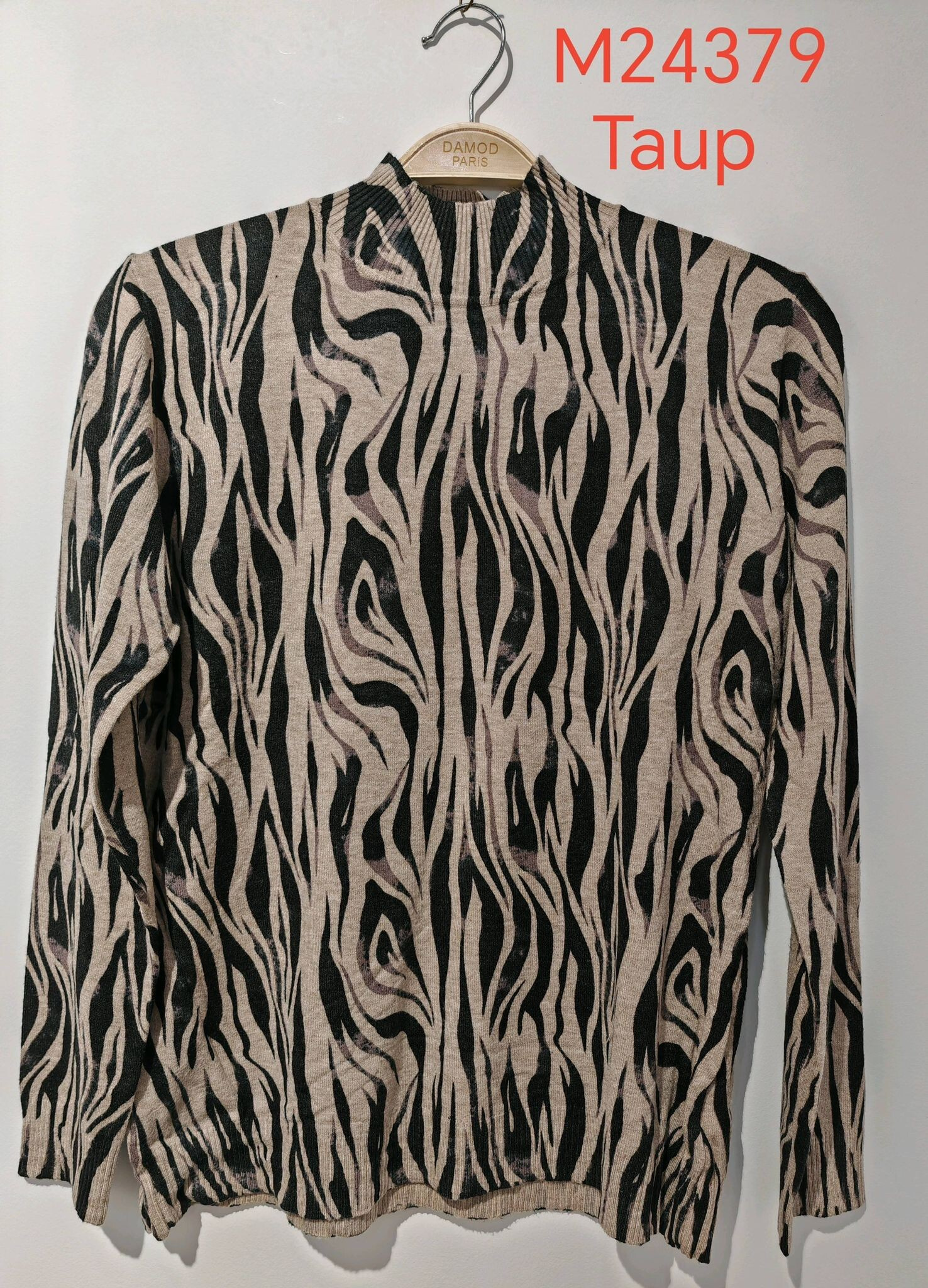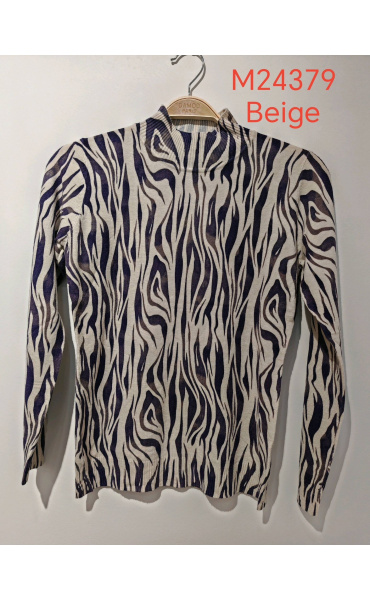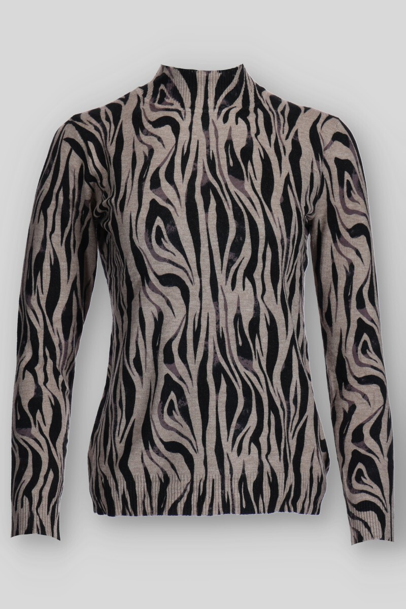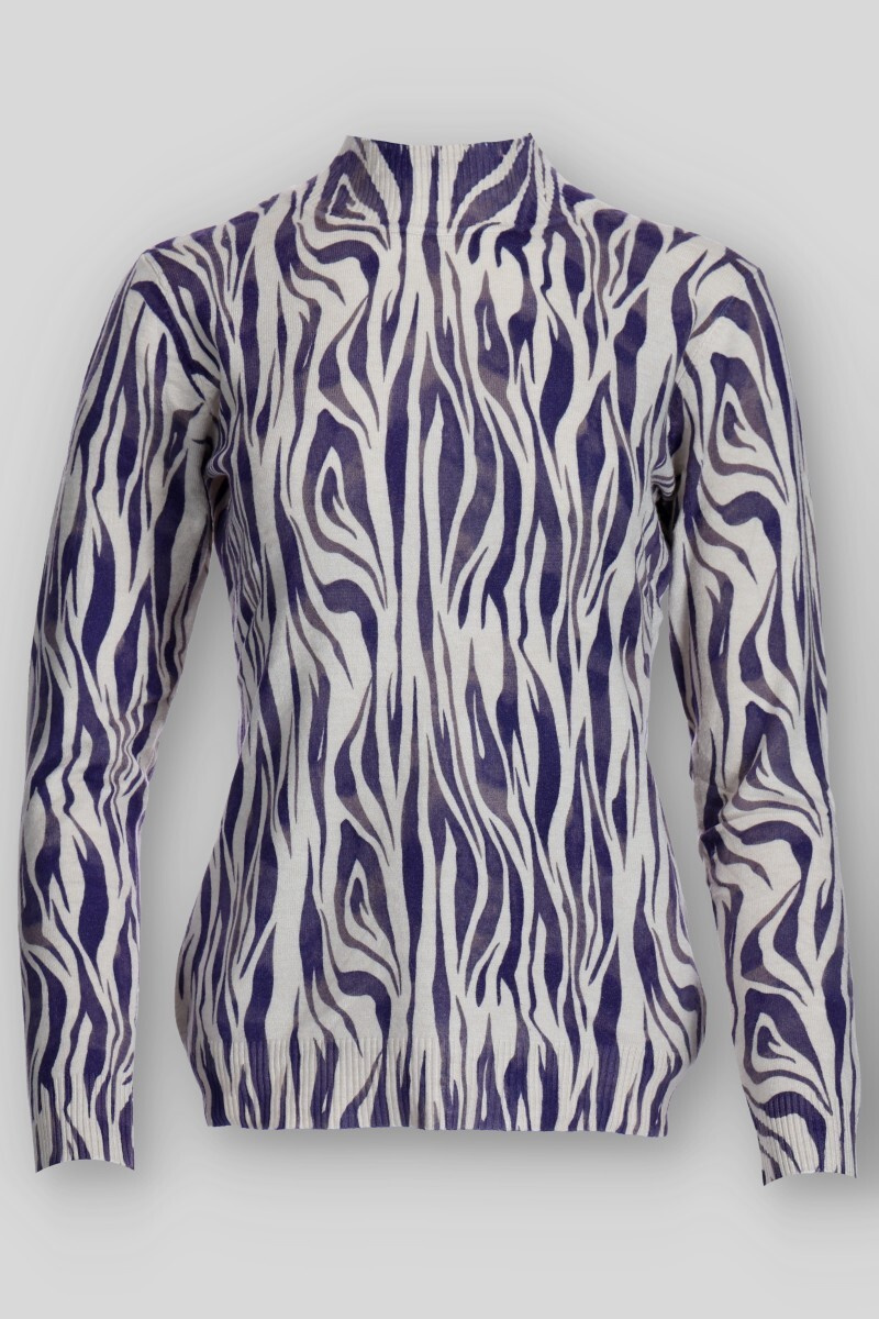Módní úpletový svetřík s potiskem se stojáčkem.