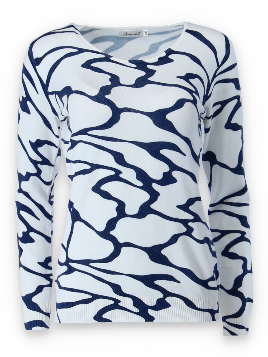 Módní úpletový svetřík s potiskem, kulatý výstřih.