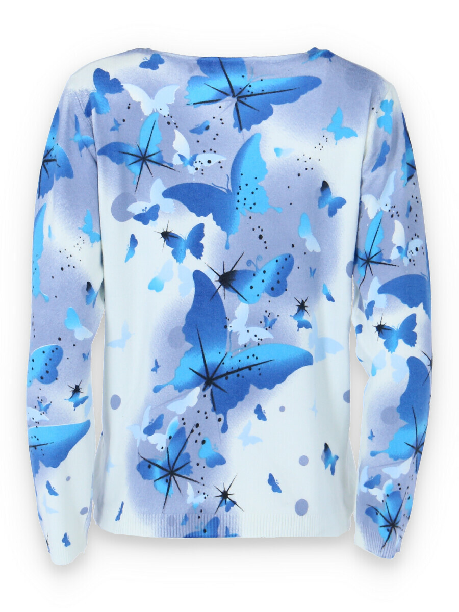 Módní úpletový svetřík s potiskem, véčkový výstřih.