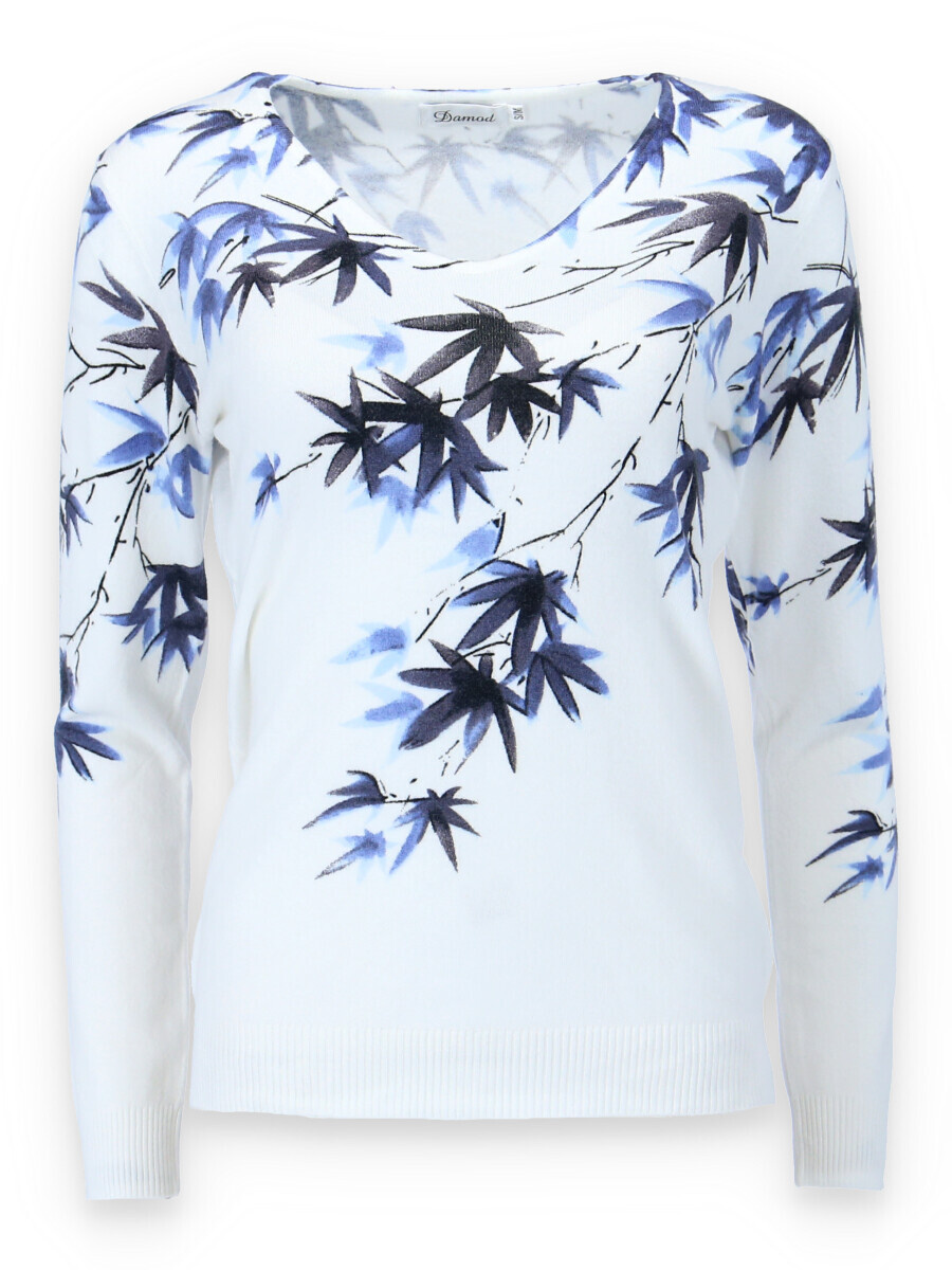 Módní úpletový svetřík s potiskem, véčkový výstřih.