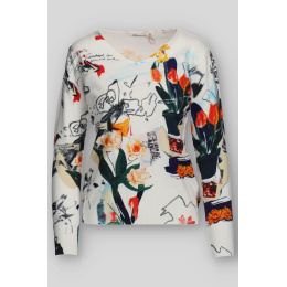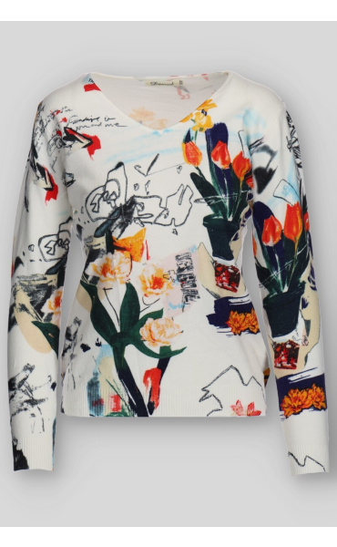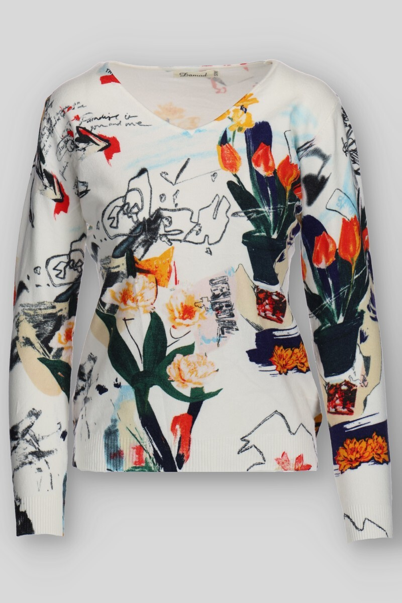 Módní úpletový svetřík s potiskem, véčkový výstřih.