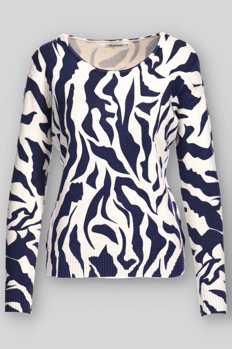 Módní úpletový svetřík s potiskem, kulatý výstřih.