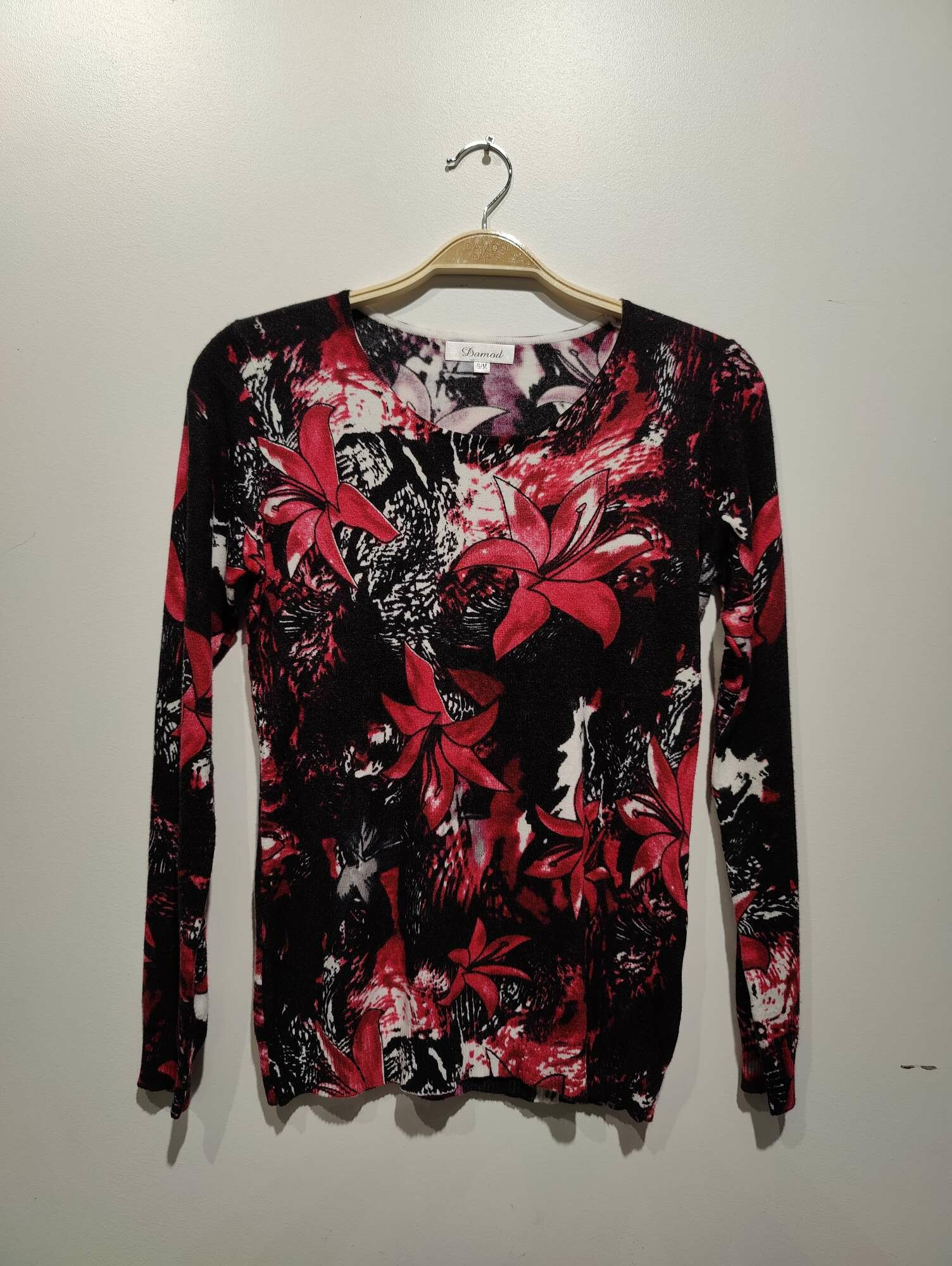Módní úpletový svetřík s potiskem, véčkový výstřih.