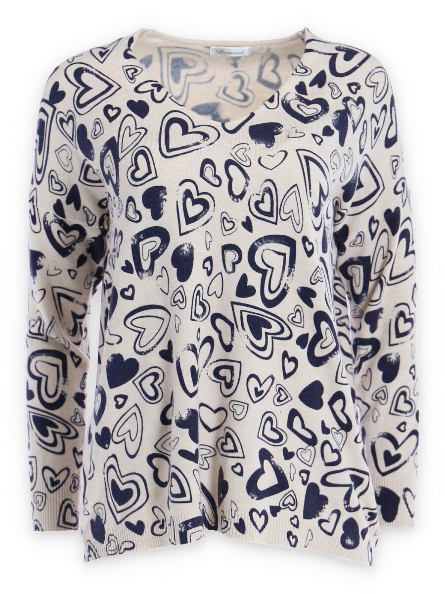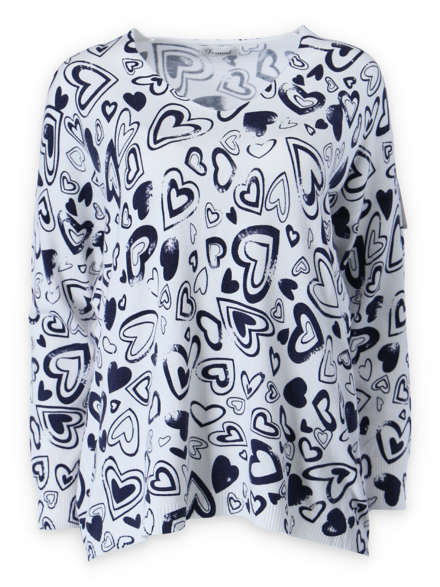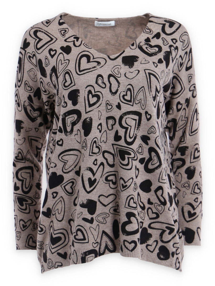 Módní úpletový svetřík s potiskem, véčkový výstřih.