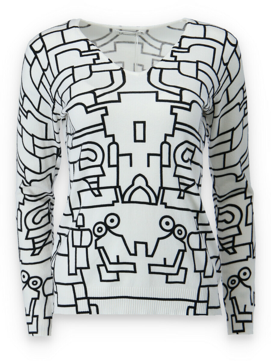 Módní úpletový svetřík s potiskem, véčkový výstřih.