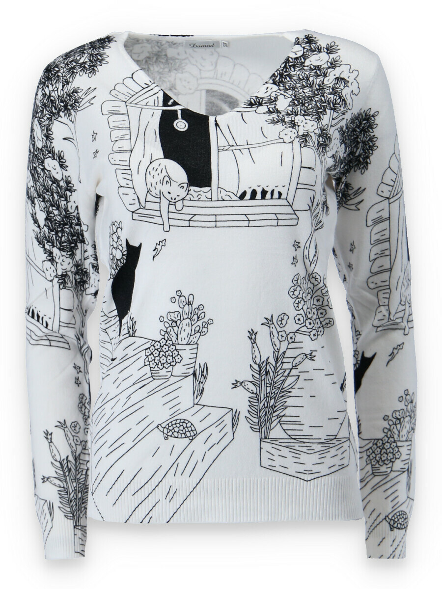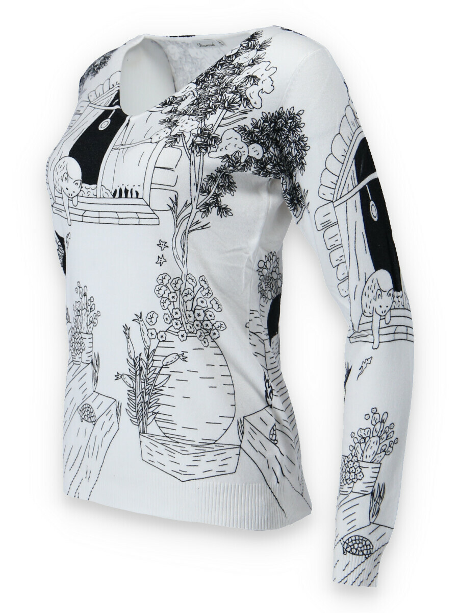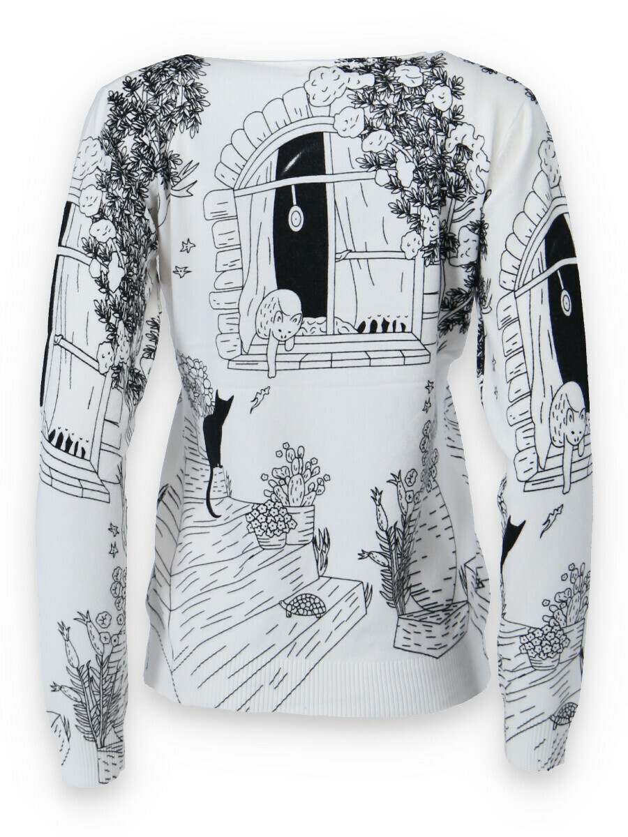 Módní úpletový svetřík s potiskem, véčkový výstřih.