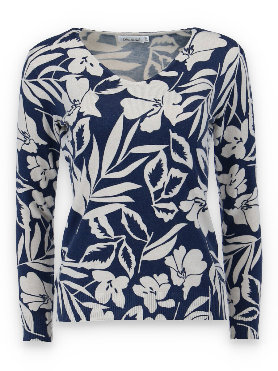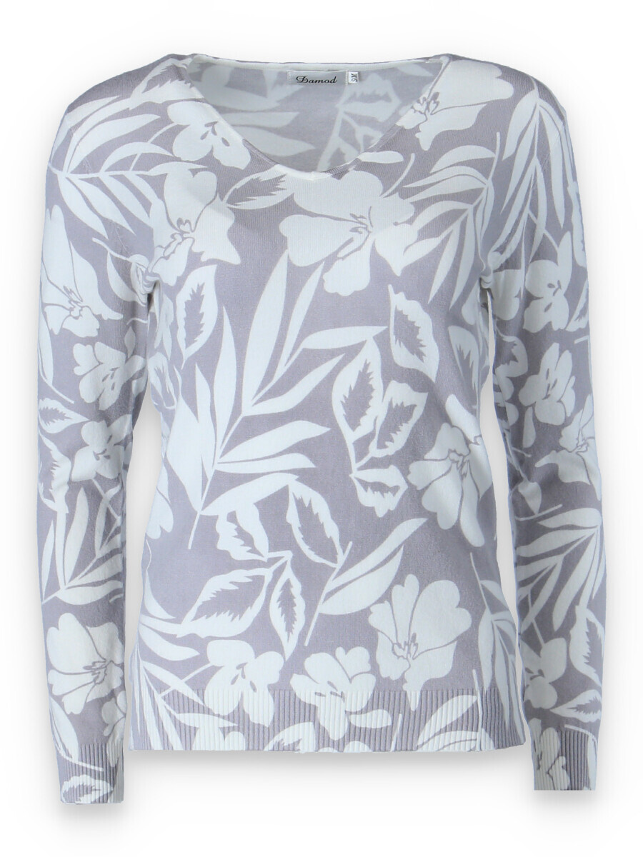 Módní úpletový svetřík s potiskem, véčkový výstřih.