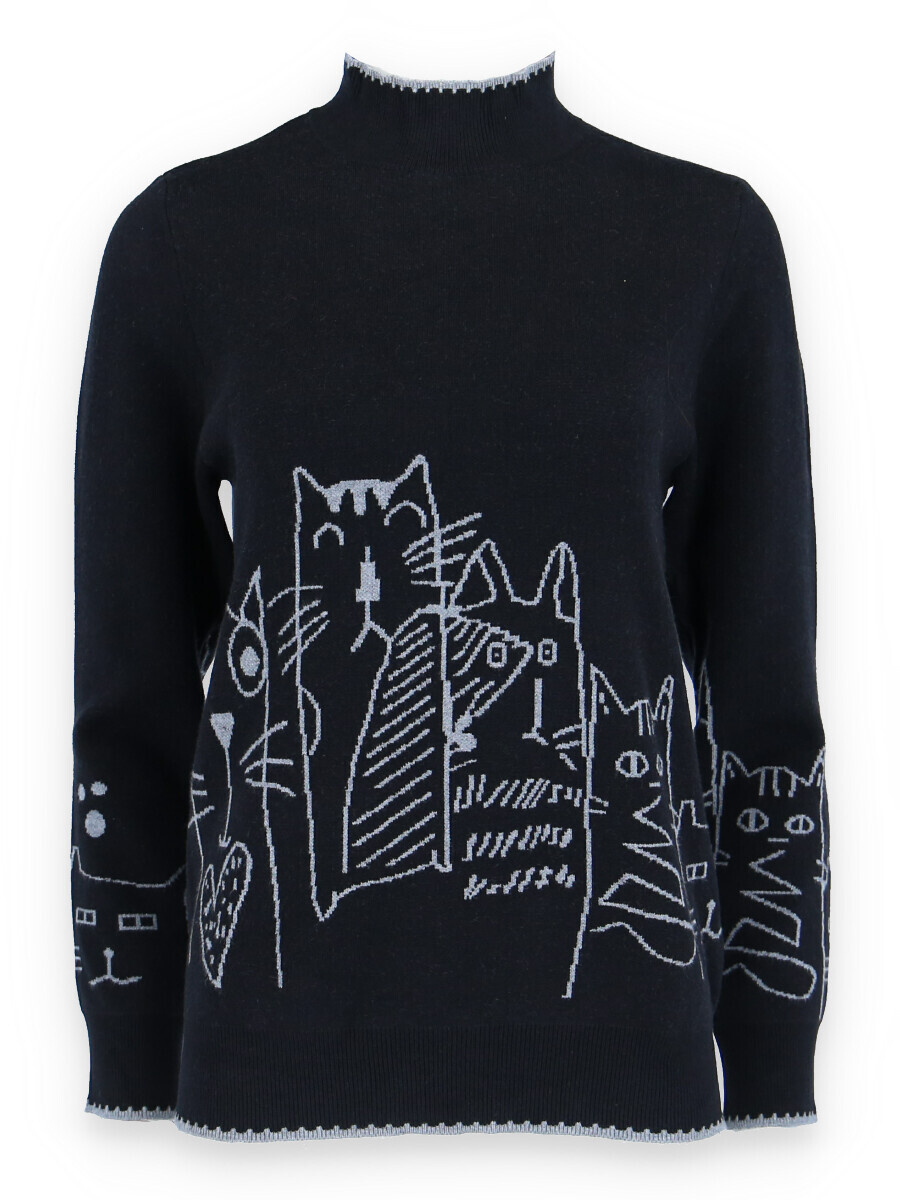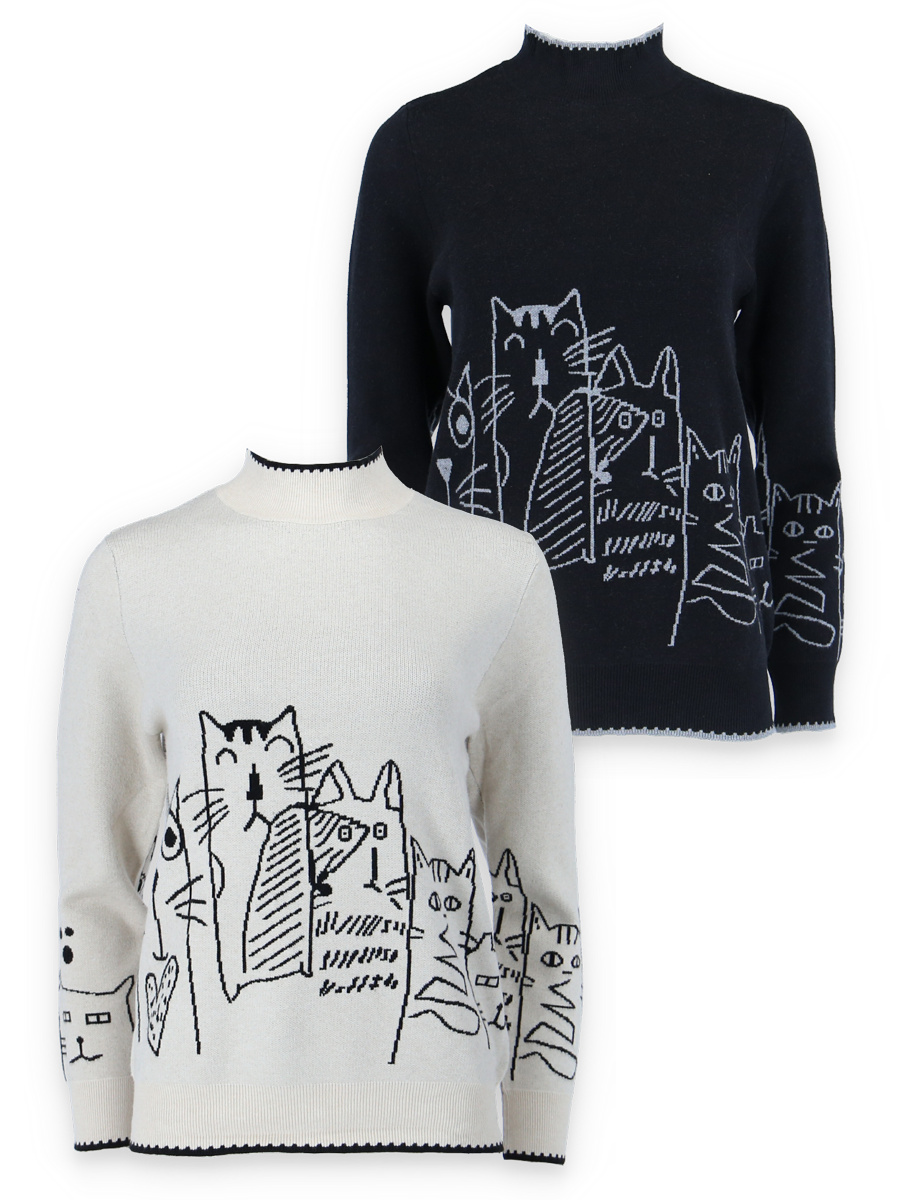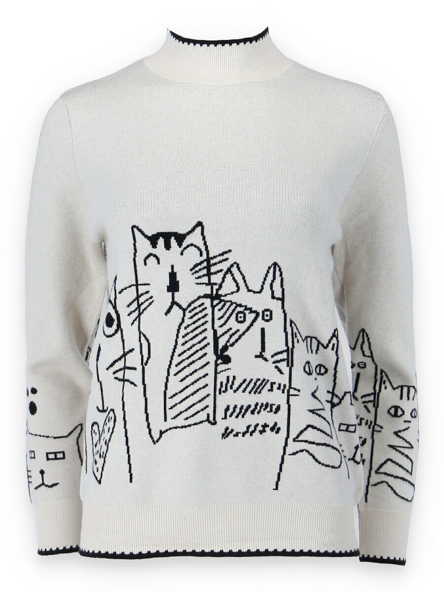 Módní úpletový svetřík s potiskem se stojáčkem.