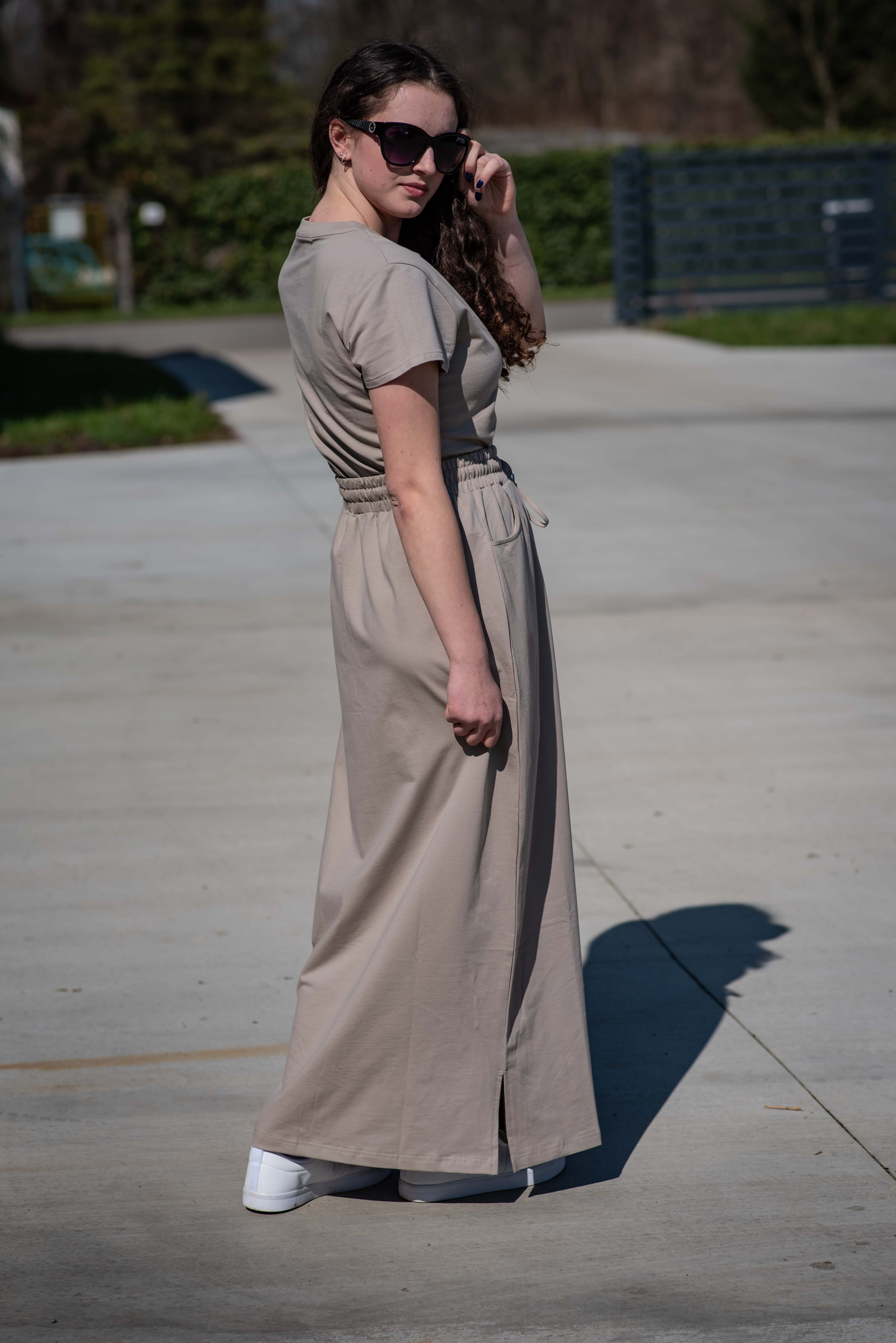 Dámská dlouhá tepláková sukně. Sukně je v pase do gumy a je z velmi příjemného materiálu.