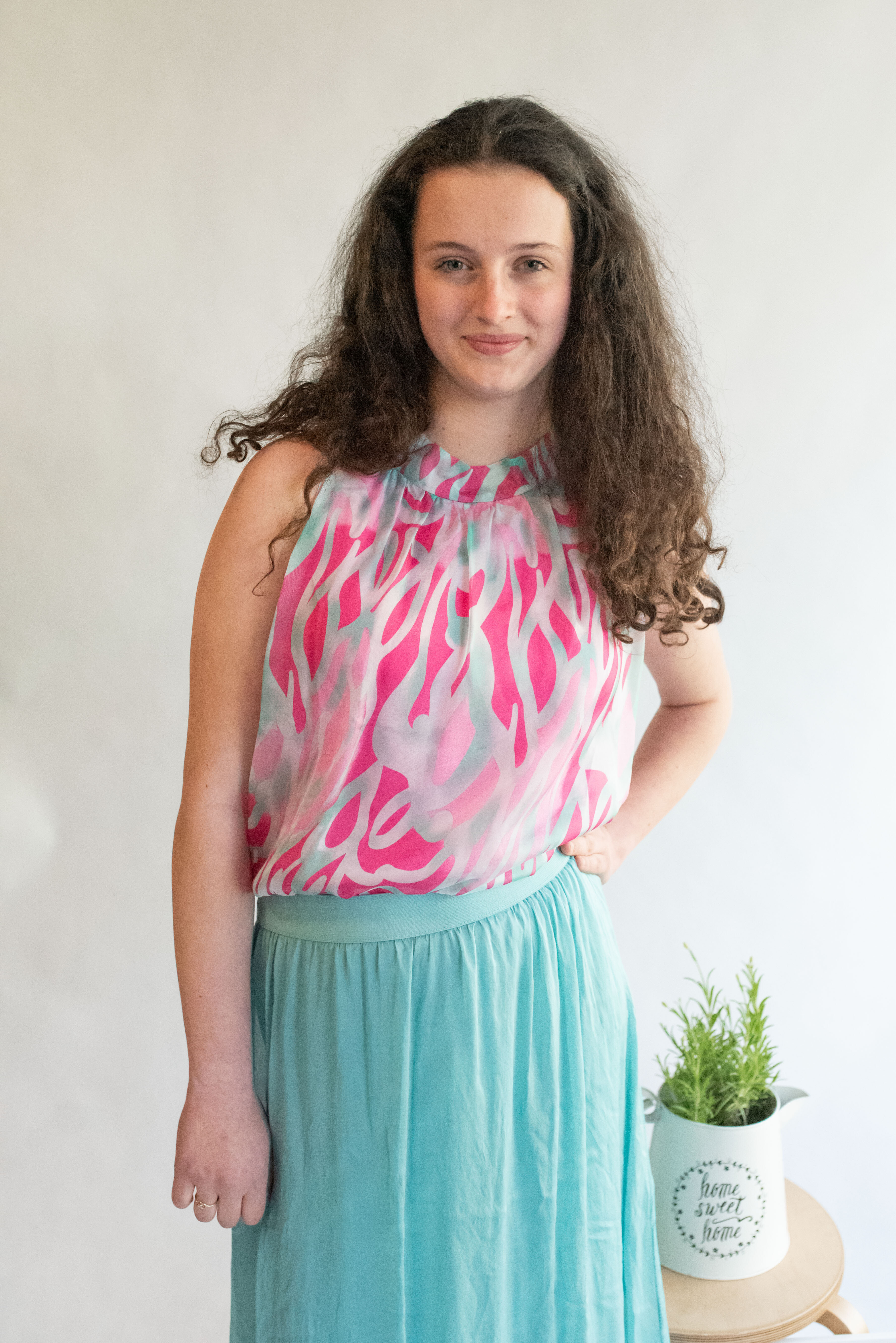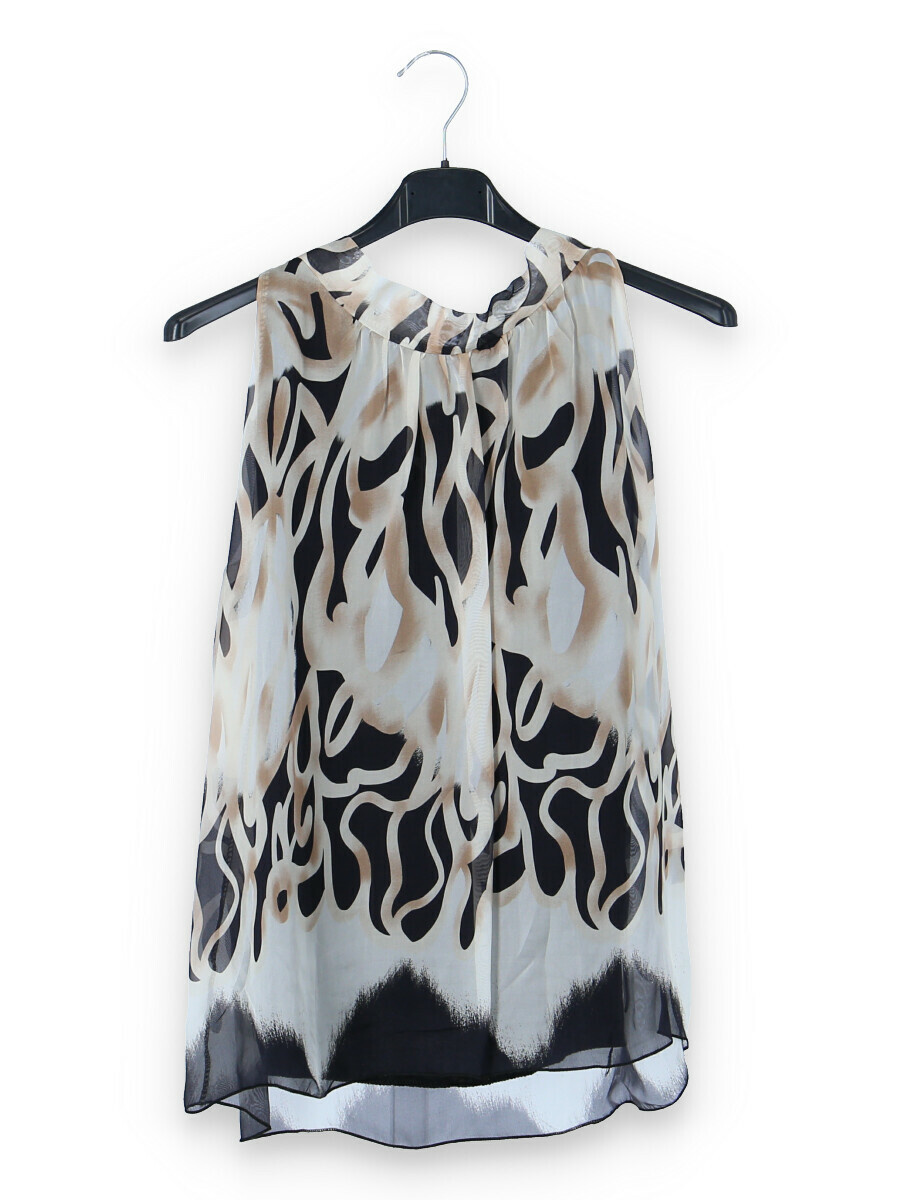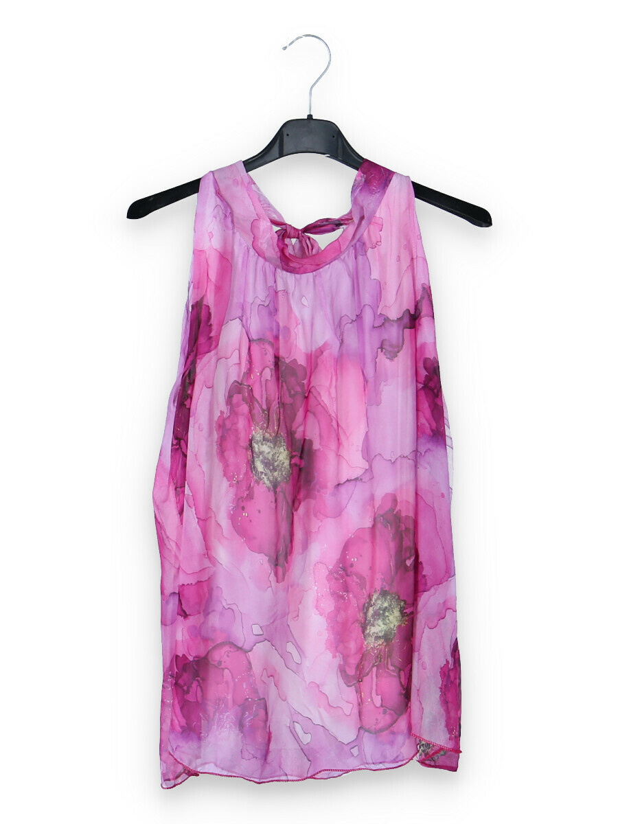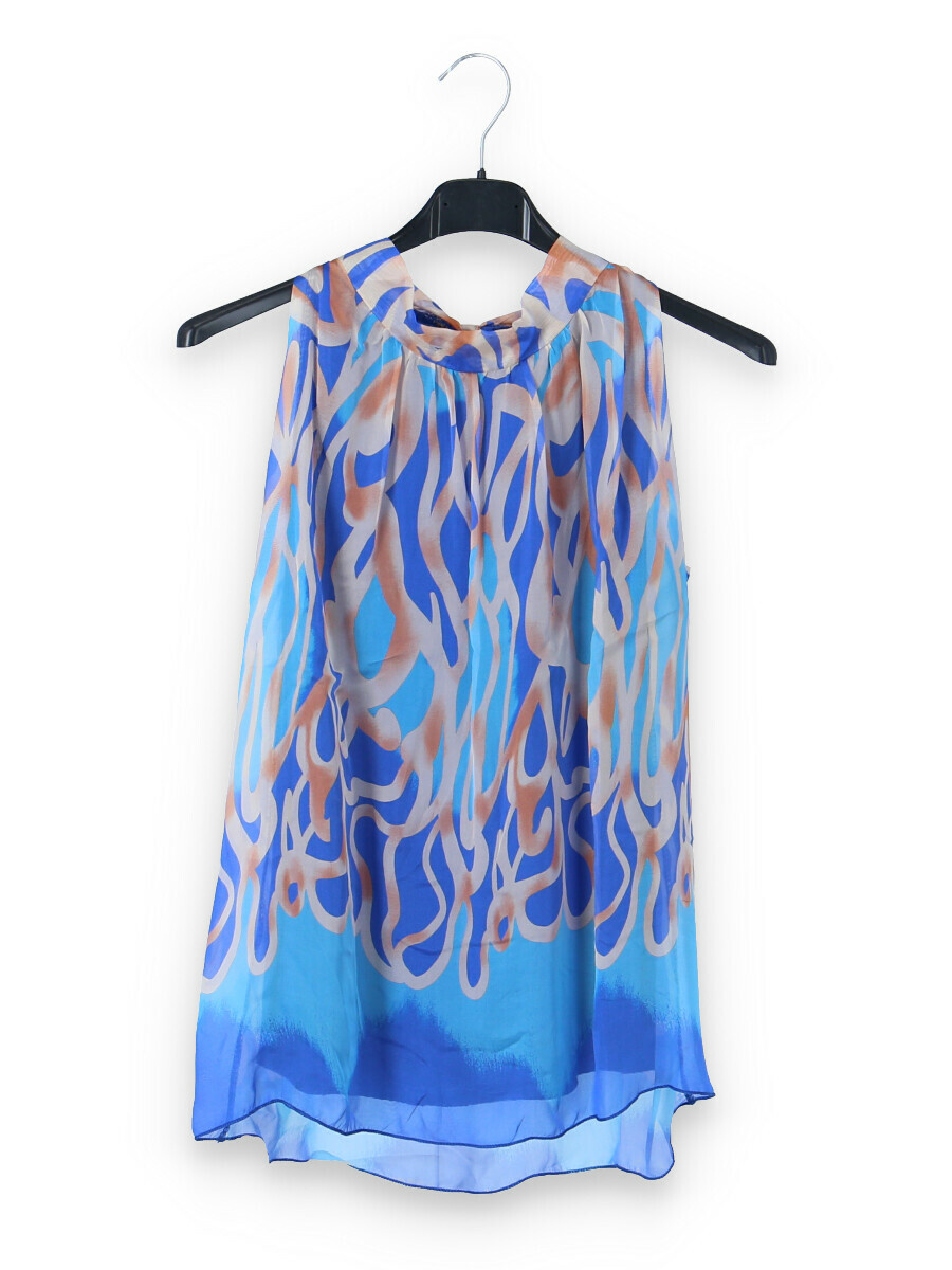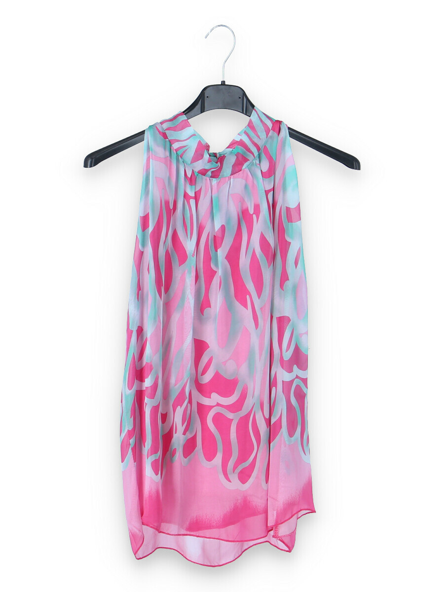 Letní hedvábný top se stojáčkem, se zavazováním na zádech.