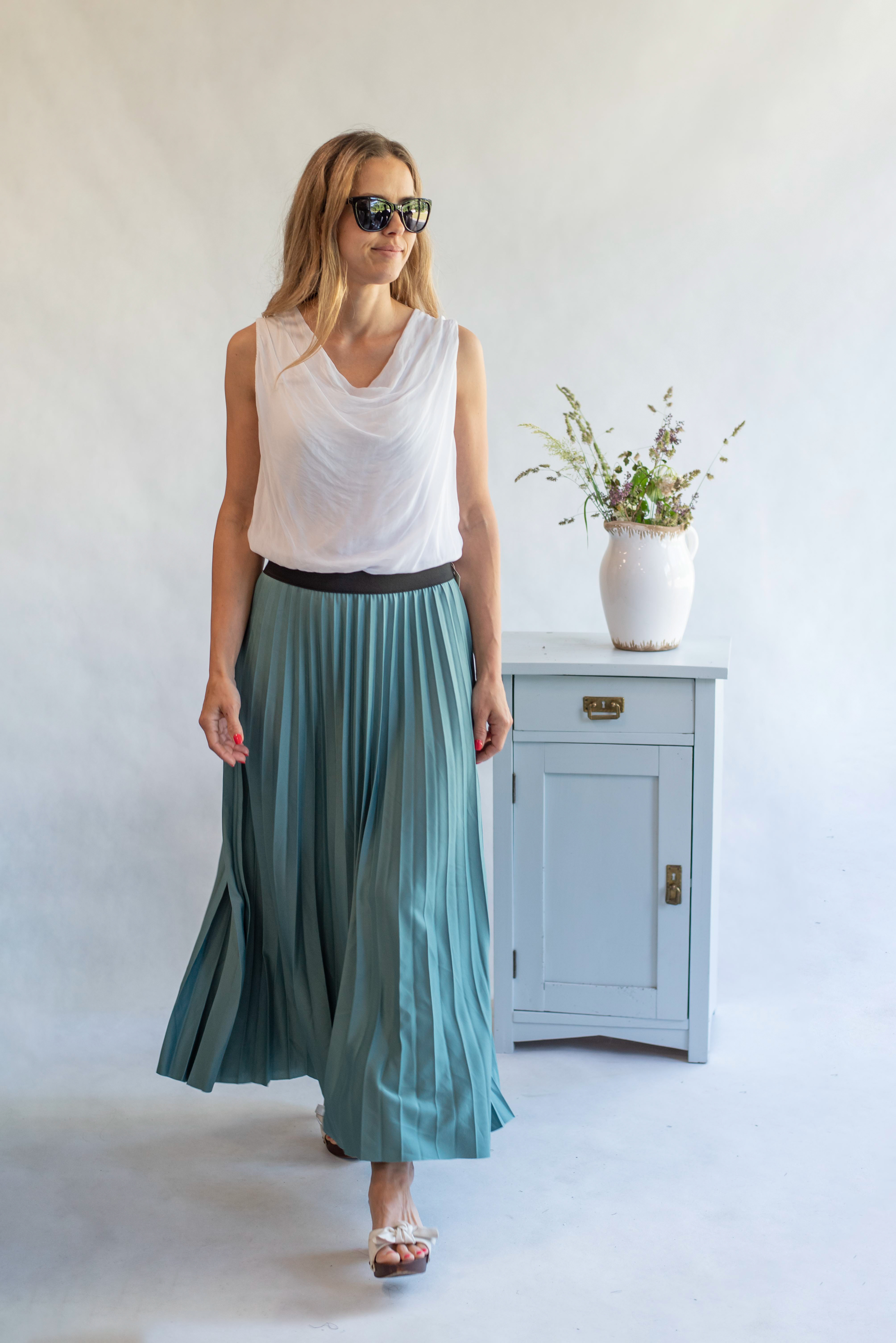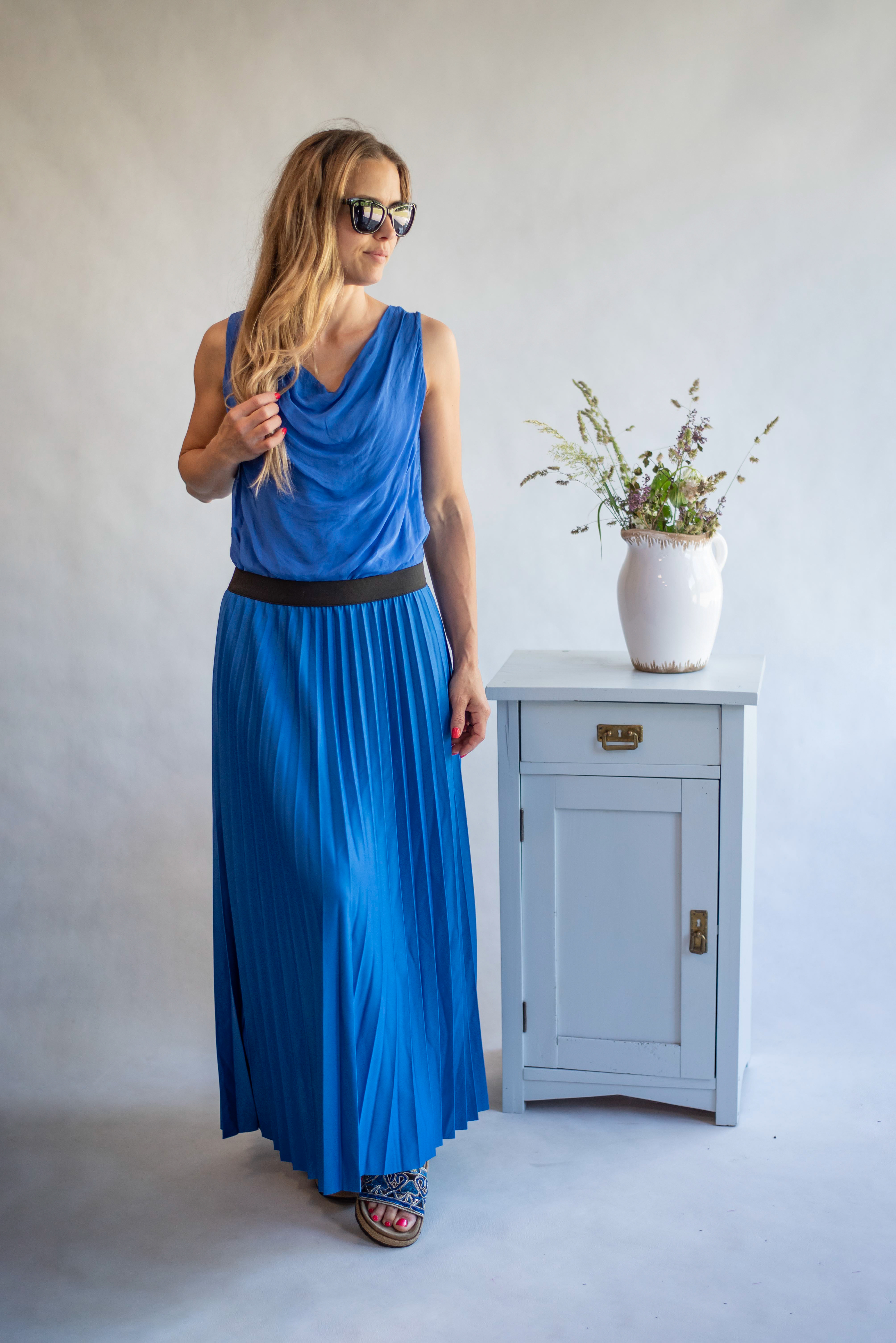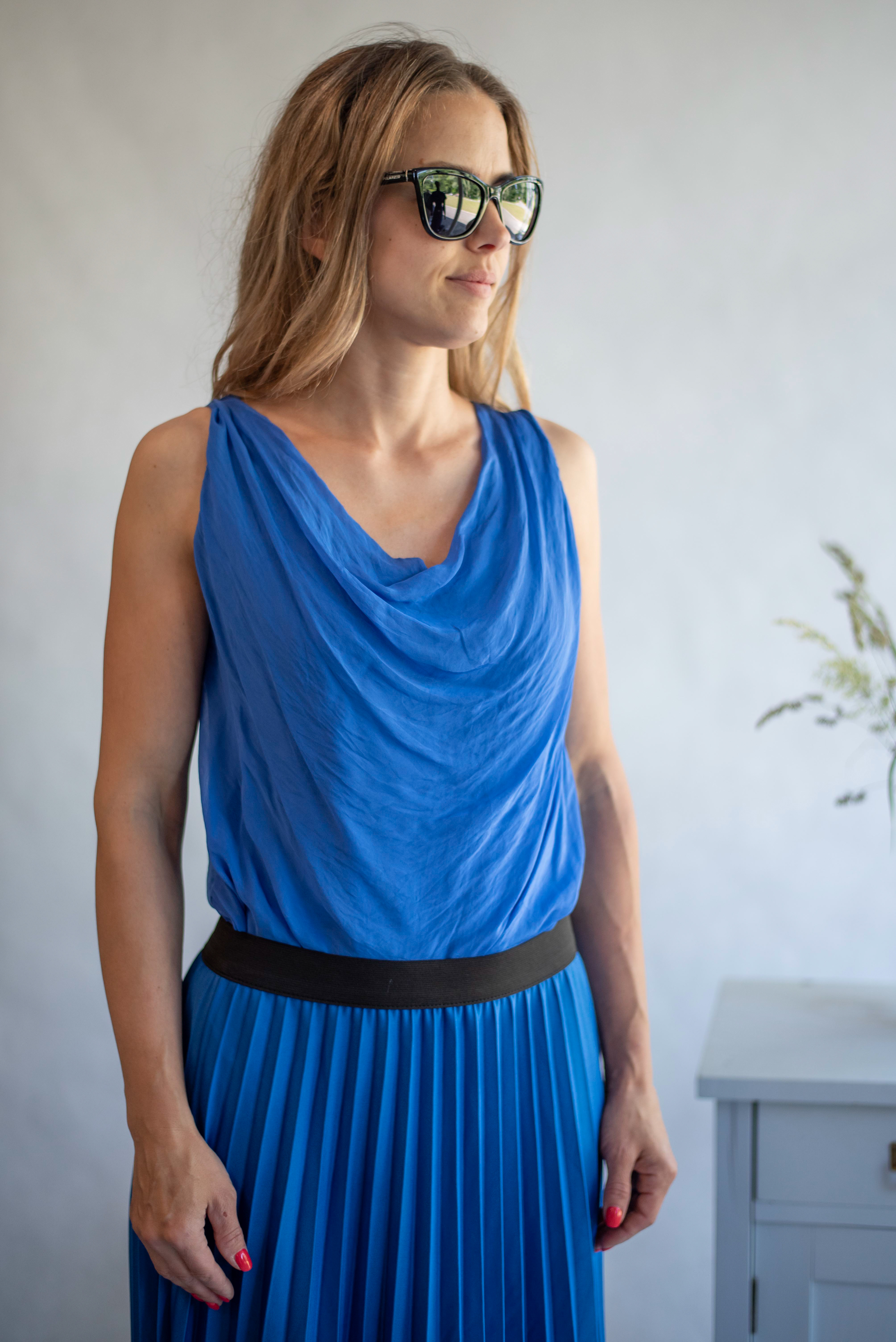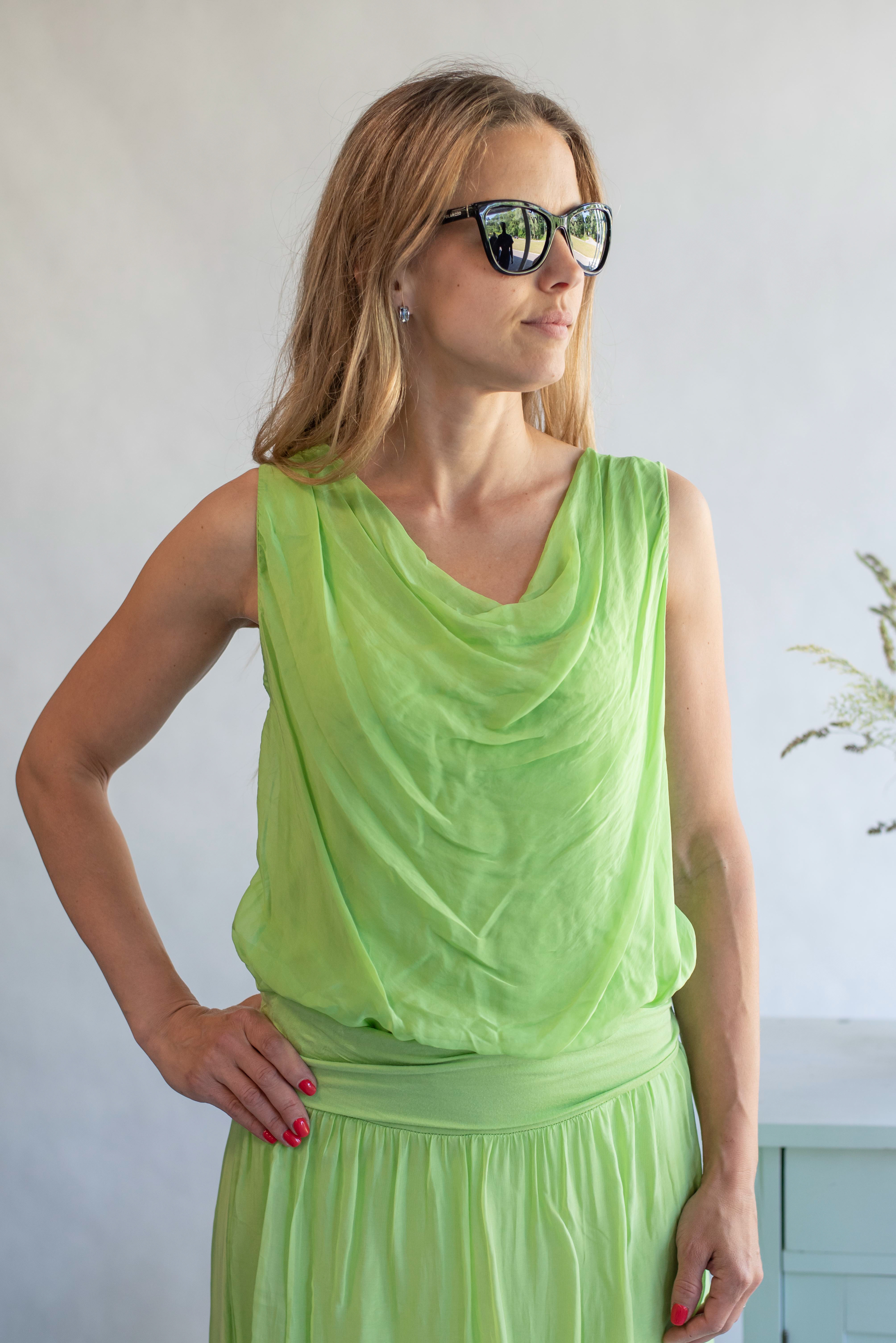 Letní top z hedvábí bez rukávů s podšívkou, výstřih s vodou, velice oblíbený model.