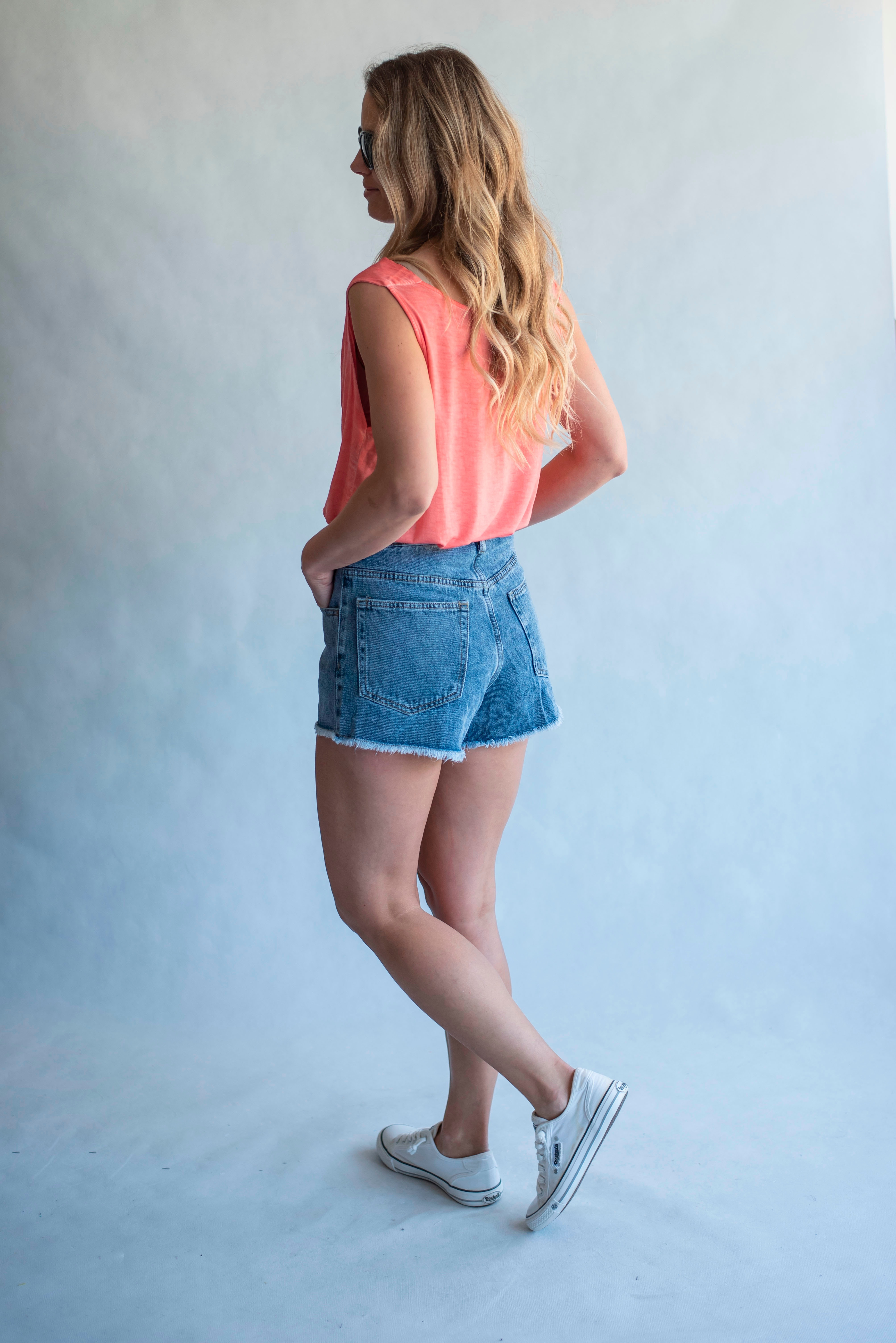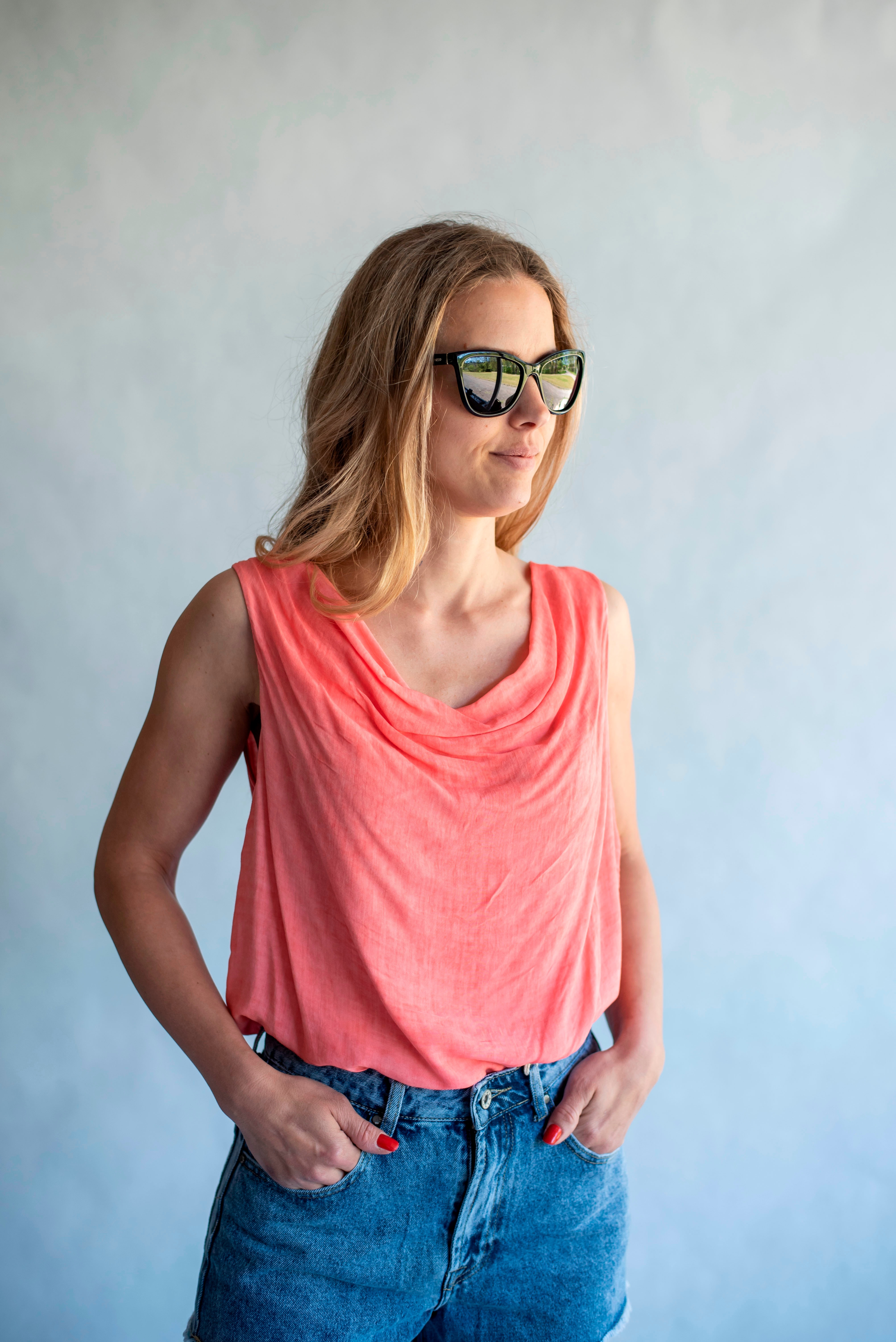 Letní top s vodou bez rukávu, odlehčený materiál.
