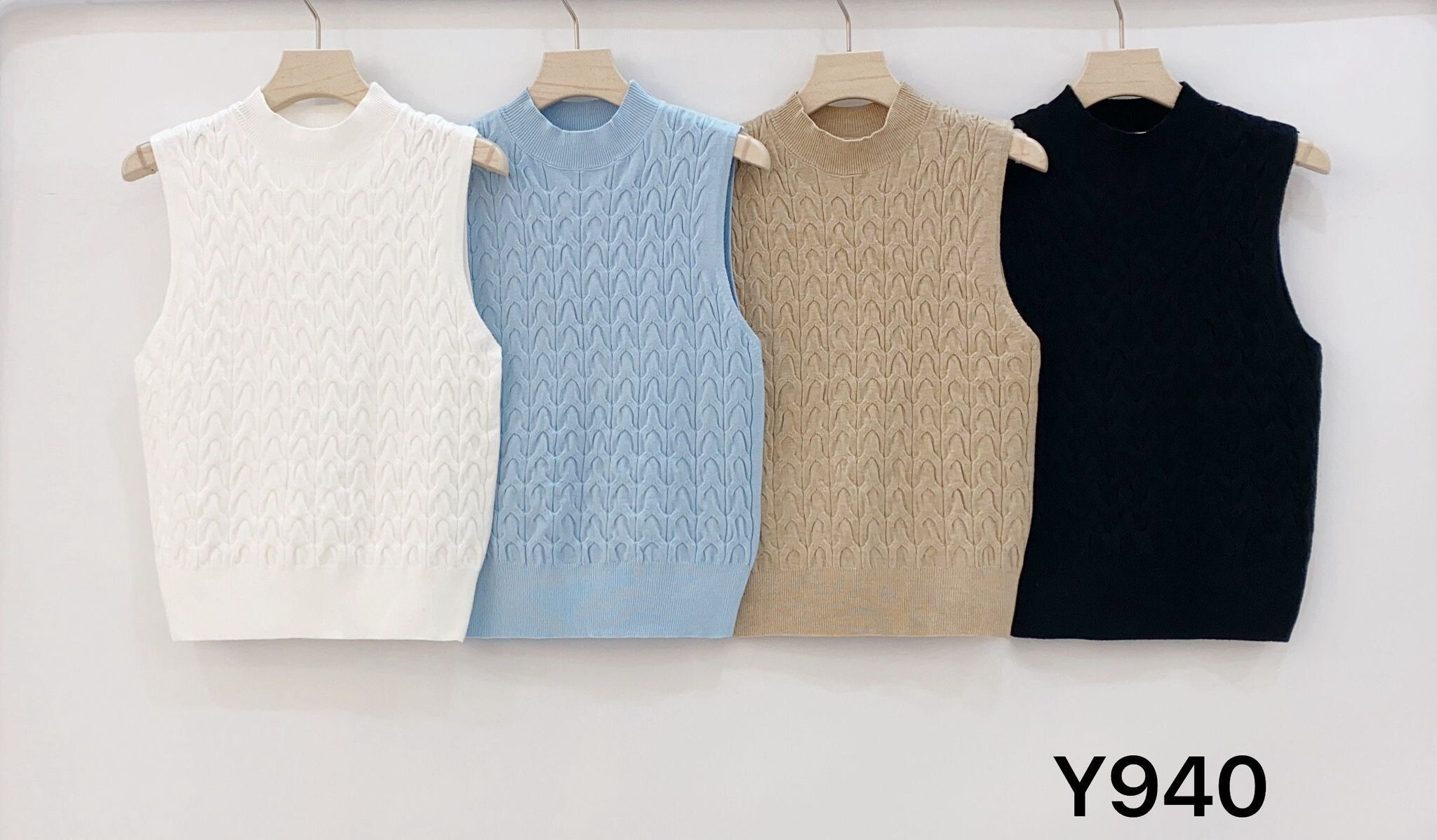Elegantní dámská top z copánkového úpletu. Top má menší stojáček a je bez rukávku. Stylový kousek, který můžete doplnit basic tričkem nebo nosit jen tak samotný.