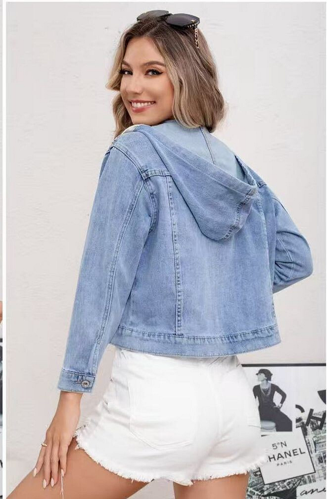 Trendy džínová bunda s kapucí, doplněná šňůrkou na stažení kapuce - dovezeno z Itálie.