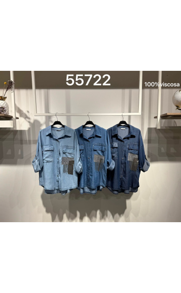 Trendy džínová propínací košile z odlehčené džínoviny. Košile má našité kapsy s klopami, regulaci na rukávu na knoflík a má prodlouženou zadní délku.