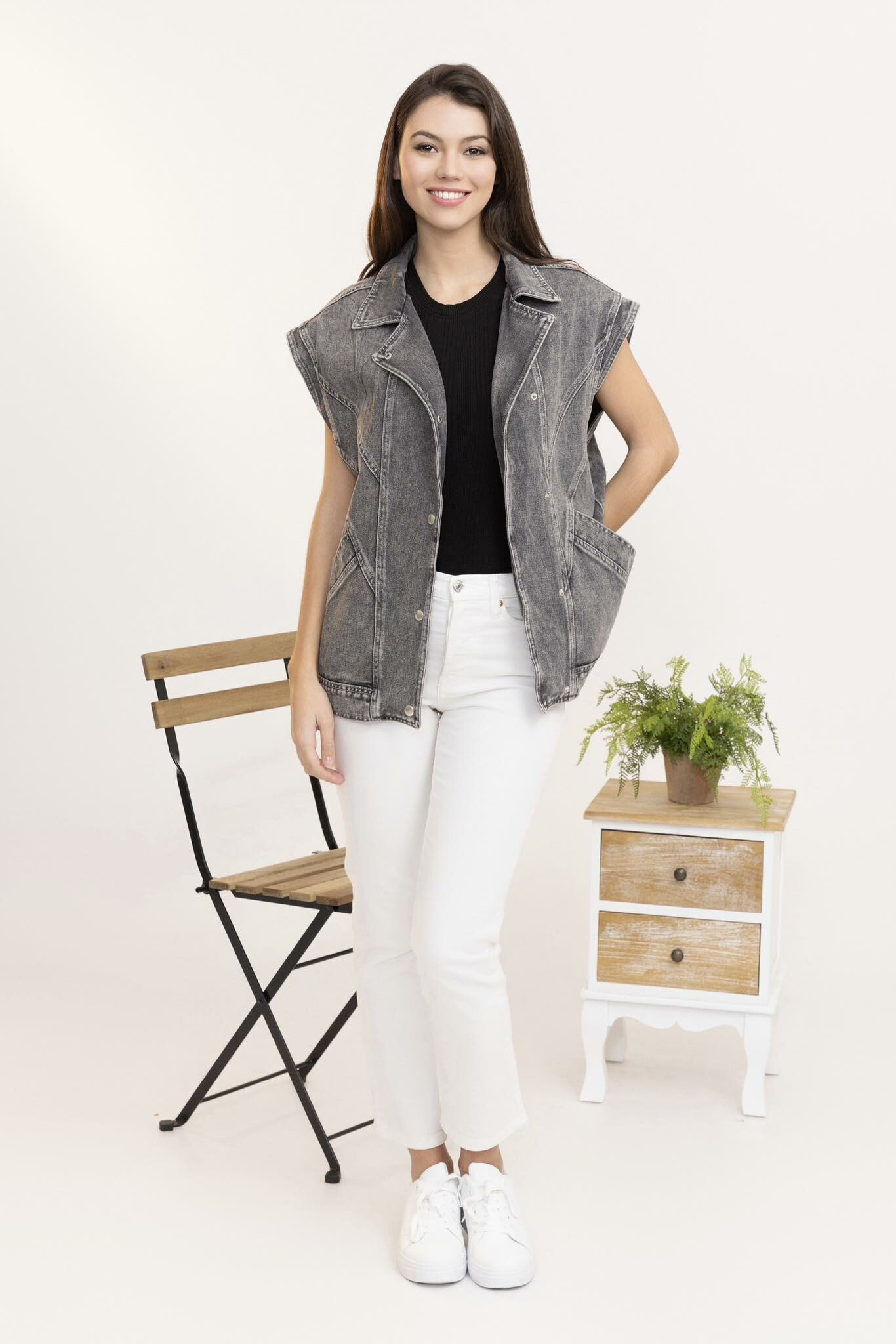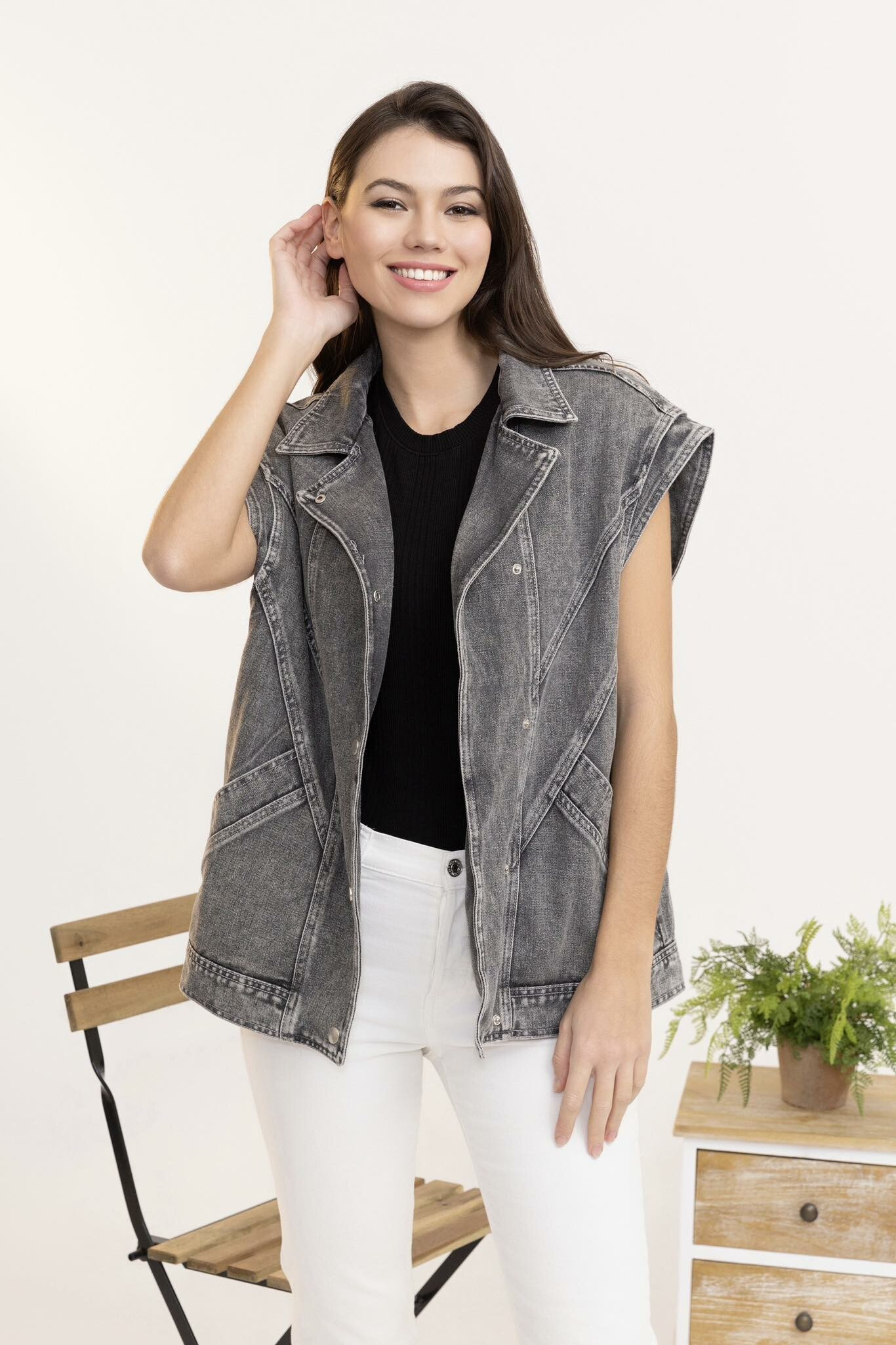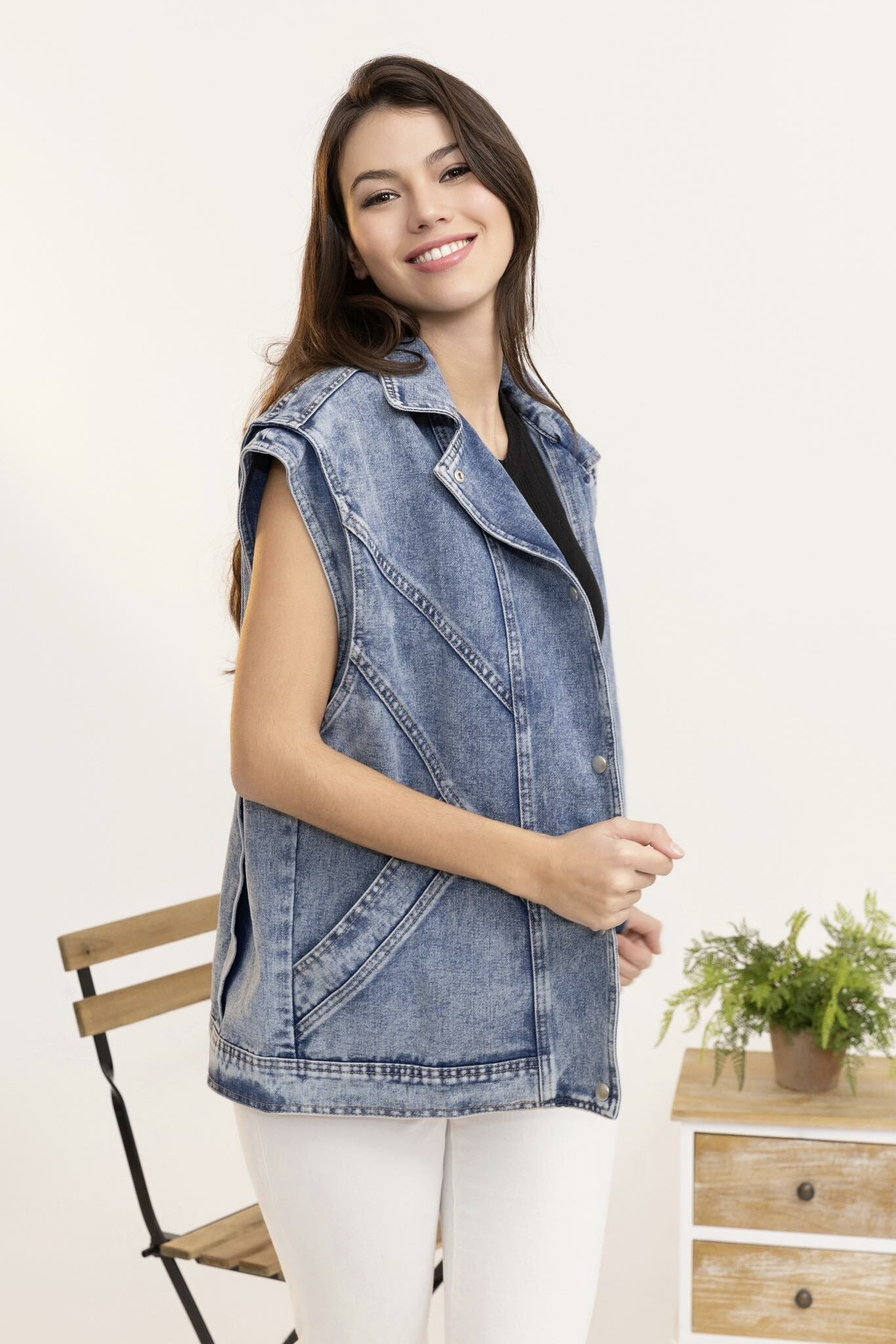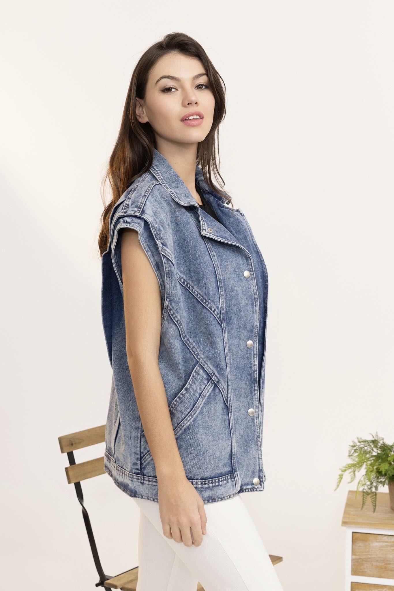 Trendy džínová vesta oversize C10449