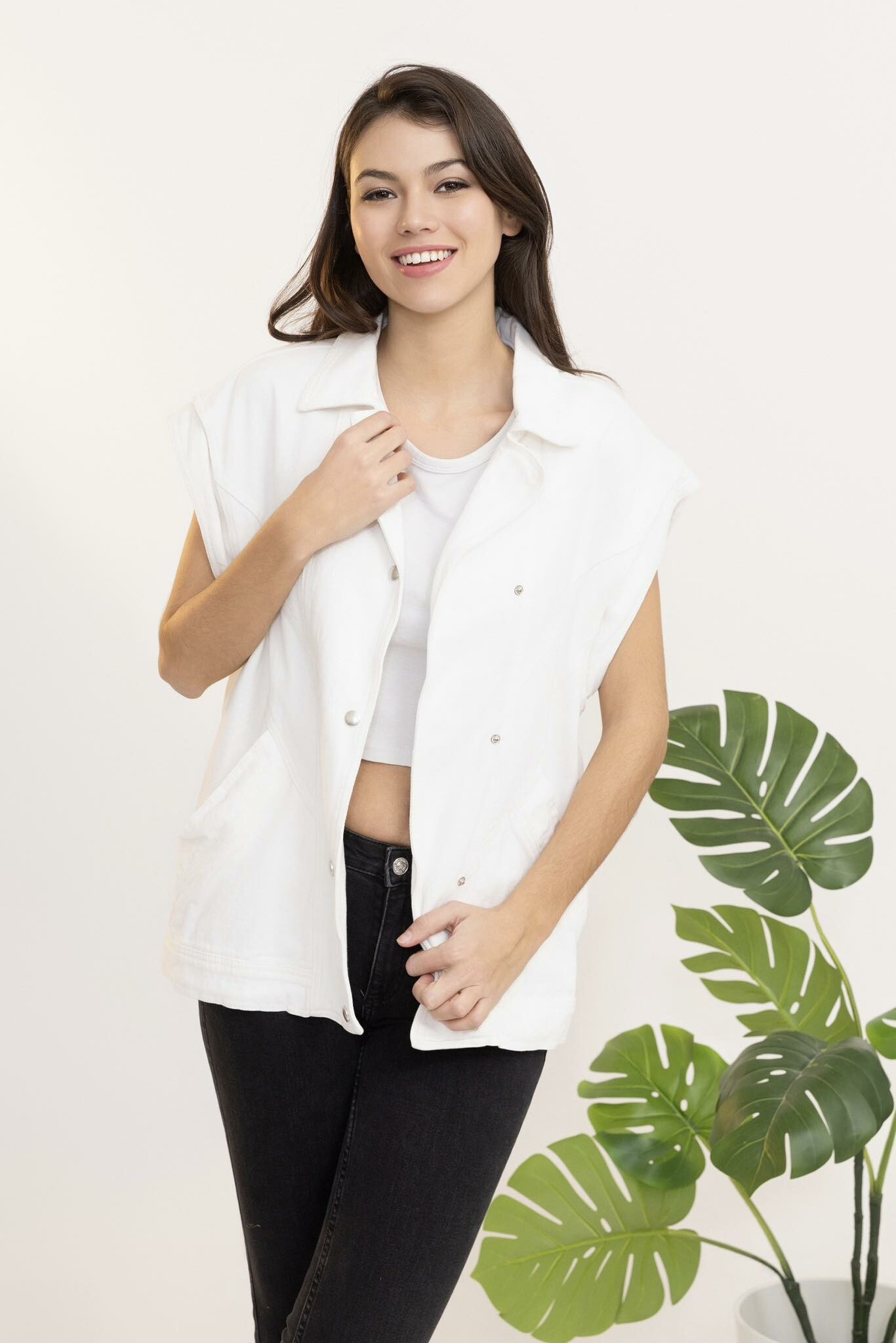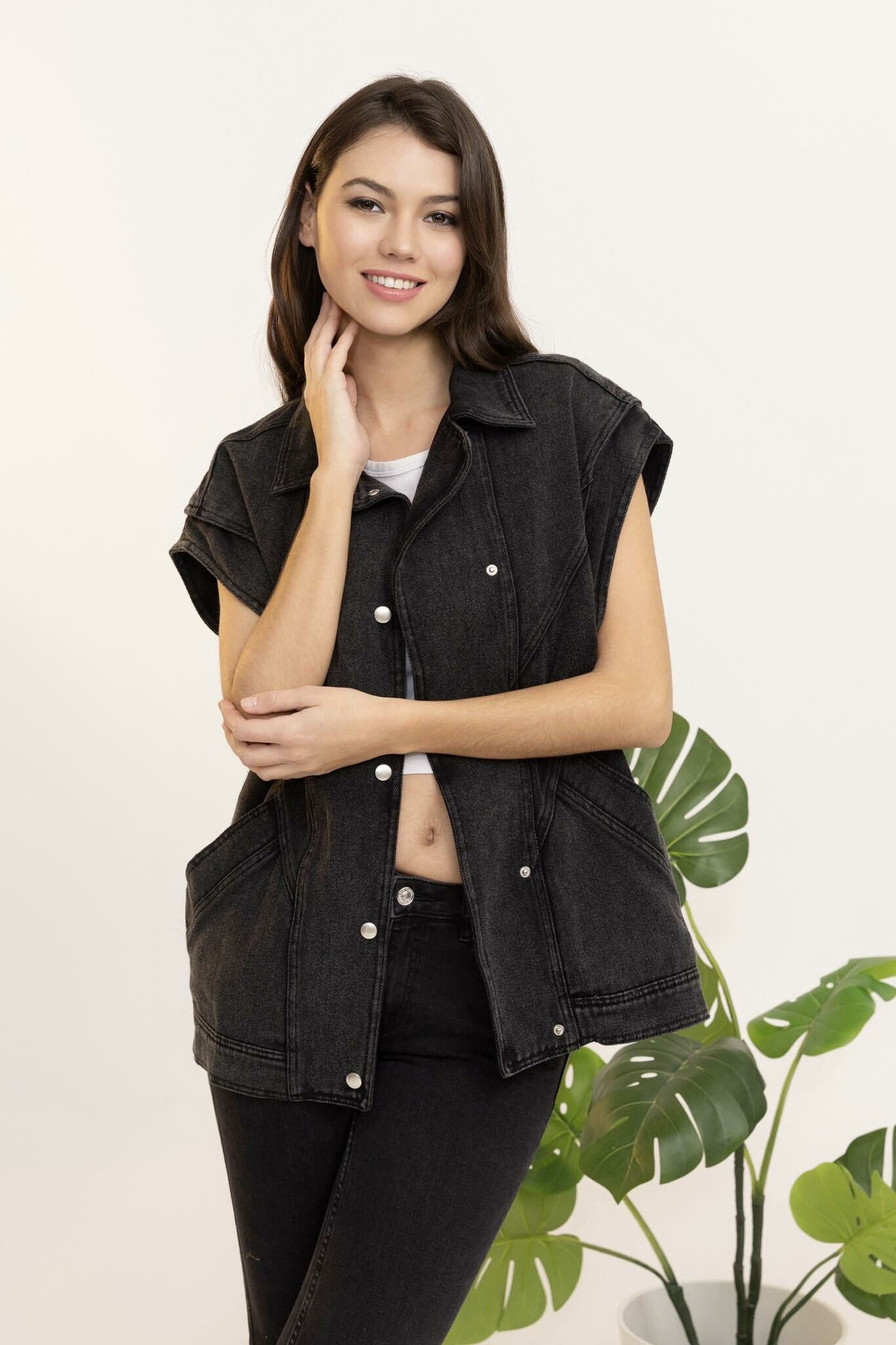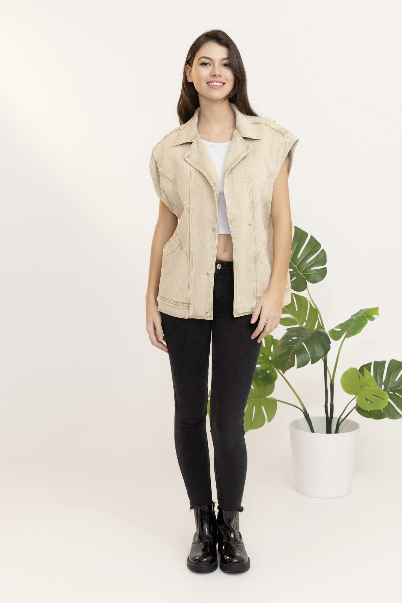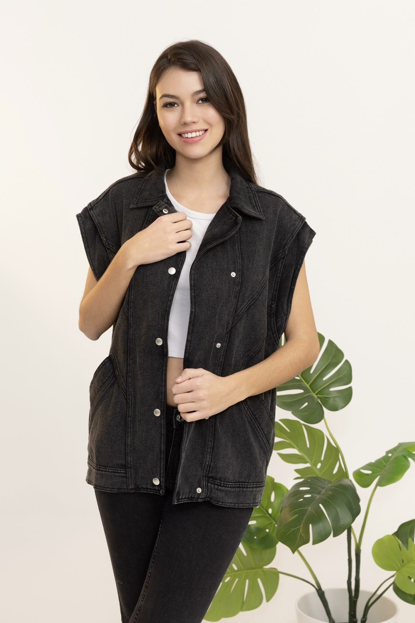 Trendy džínová vesta oversize C10449