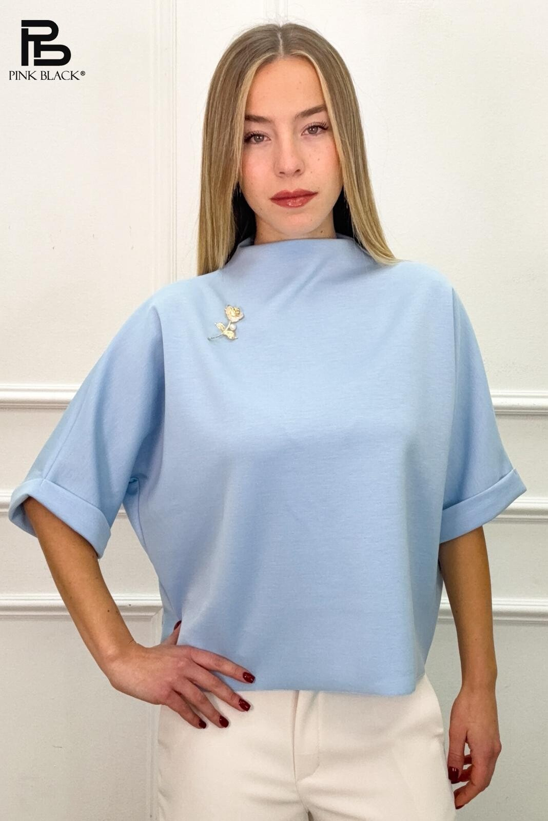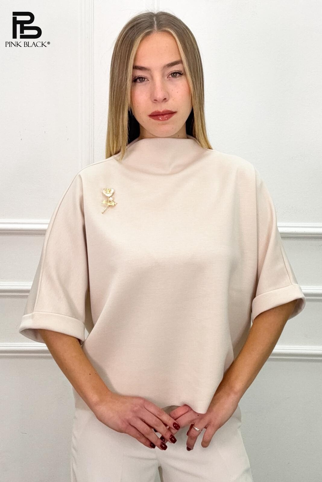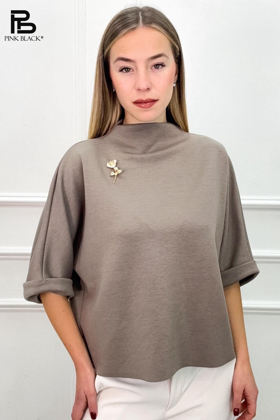 Trendy halenka se stojáčkem a broží 39198