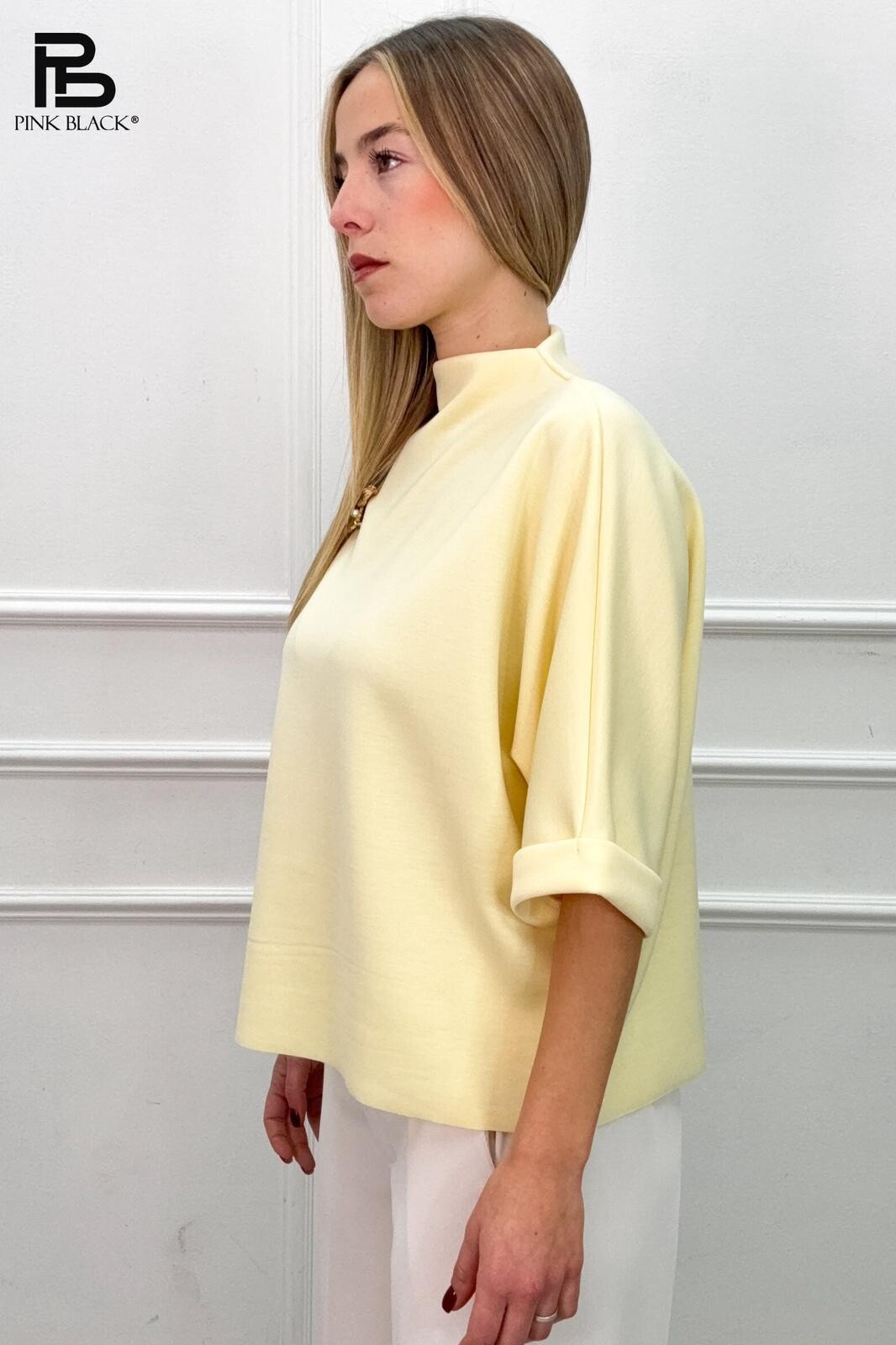 Trendy halenka s broží se stojáčkem. Halenka má raglánový 3/4 rukáv.