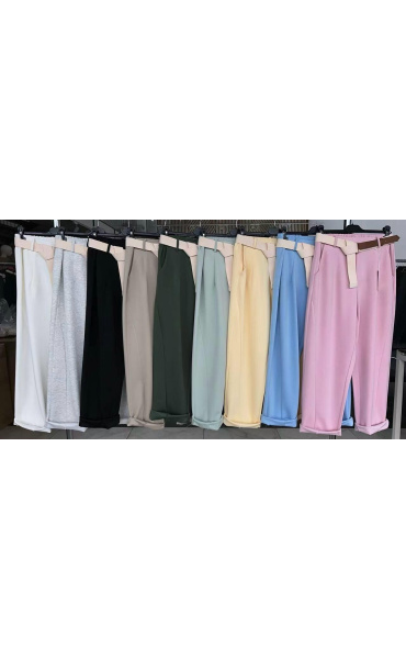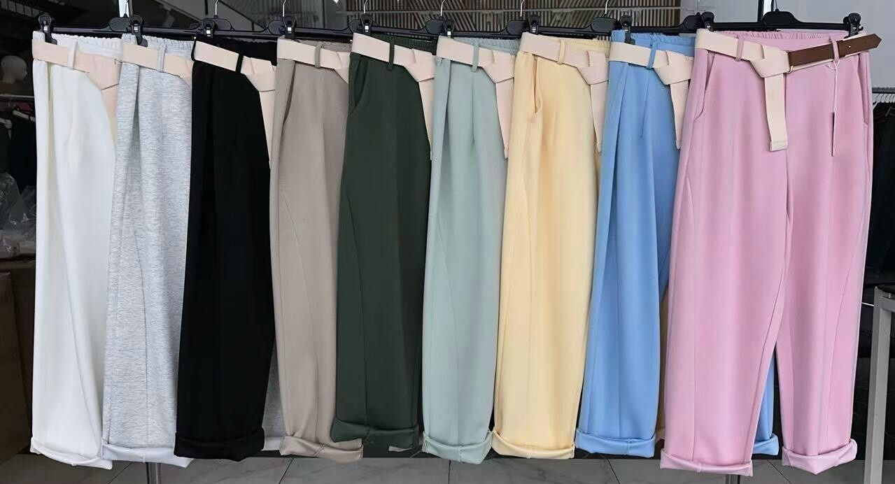 Trendy kalhoty v pase do gumy, doplněny stylovým páskem. Kalhoty mají po stranách všité kapsy.
