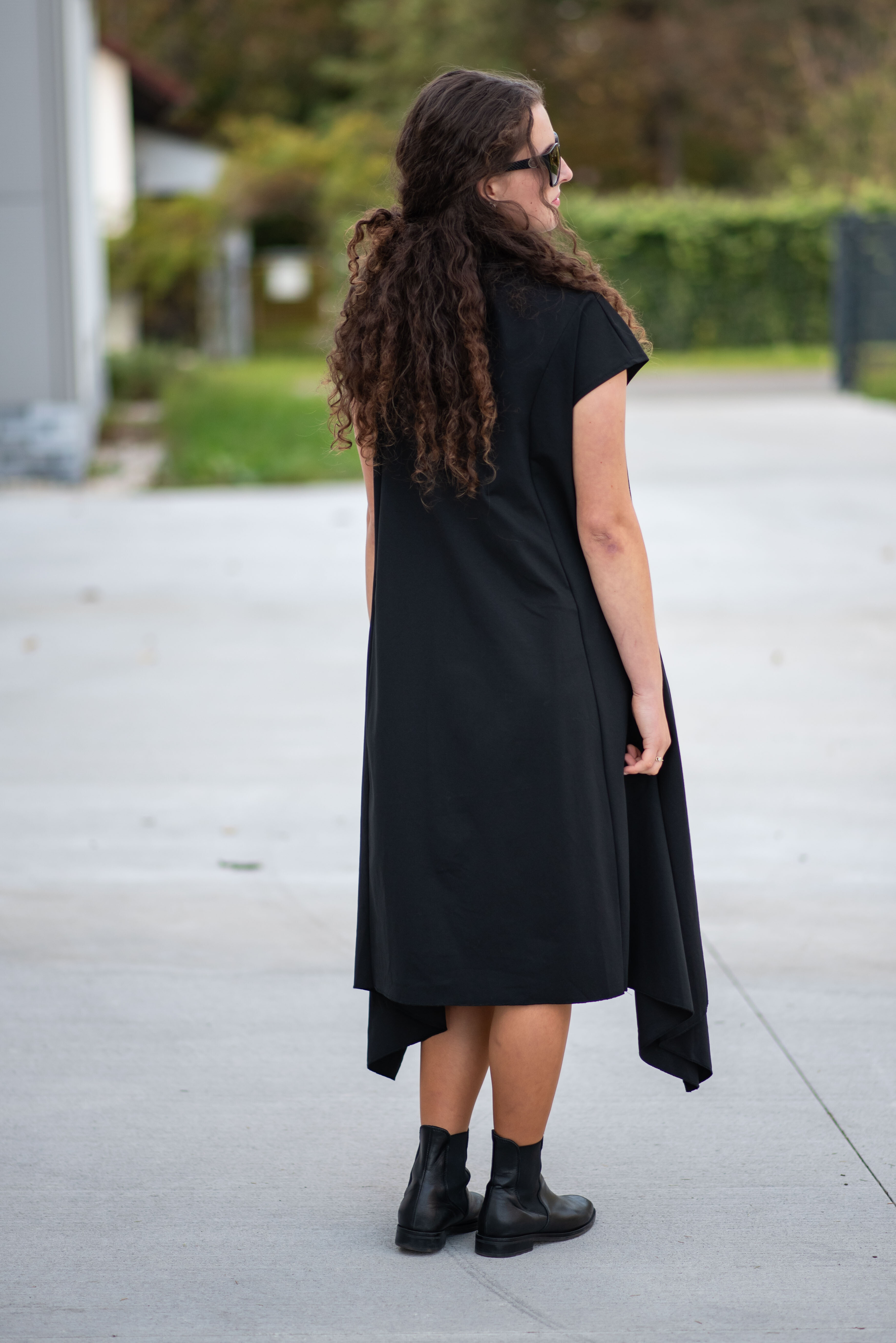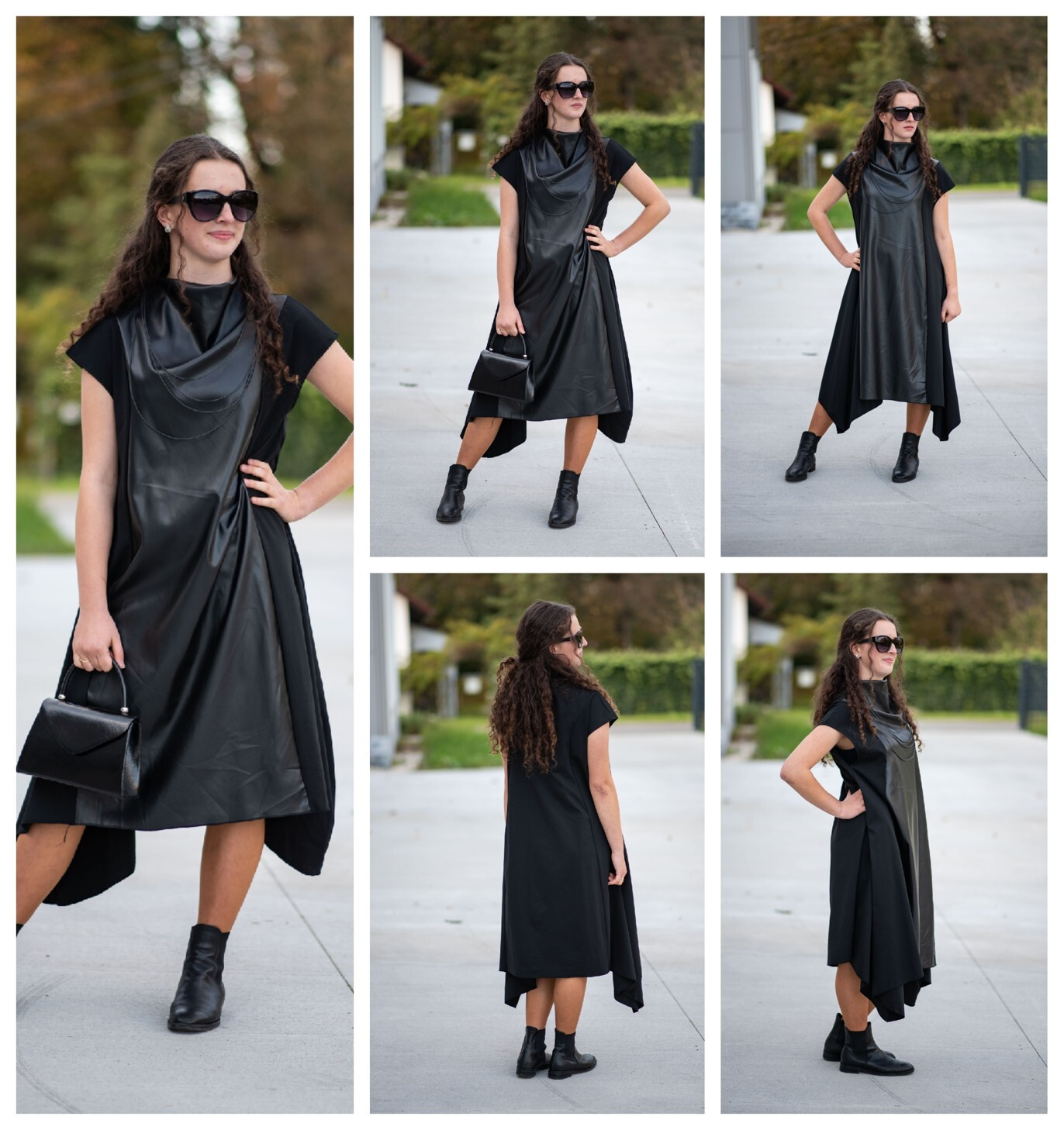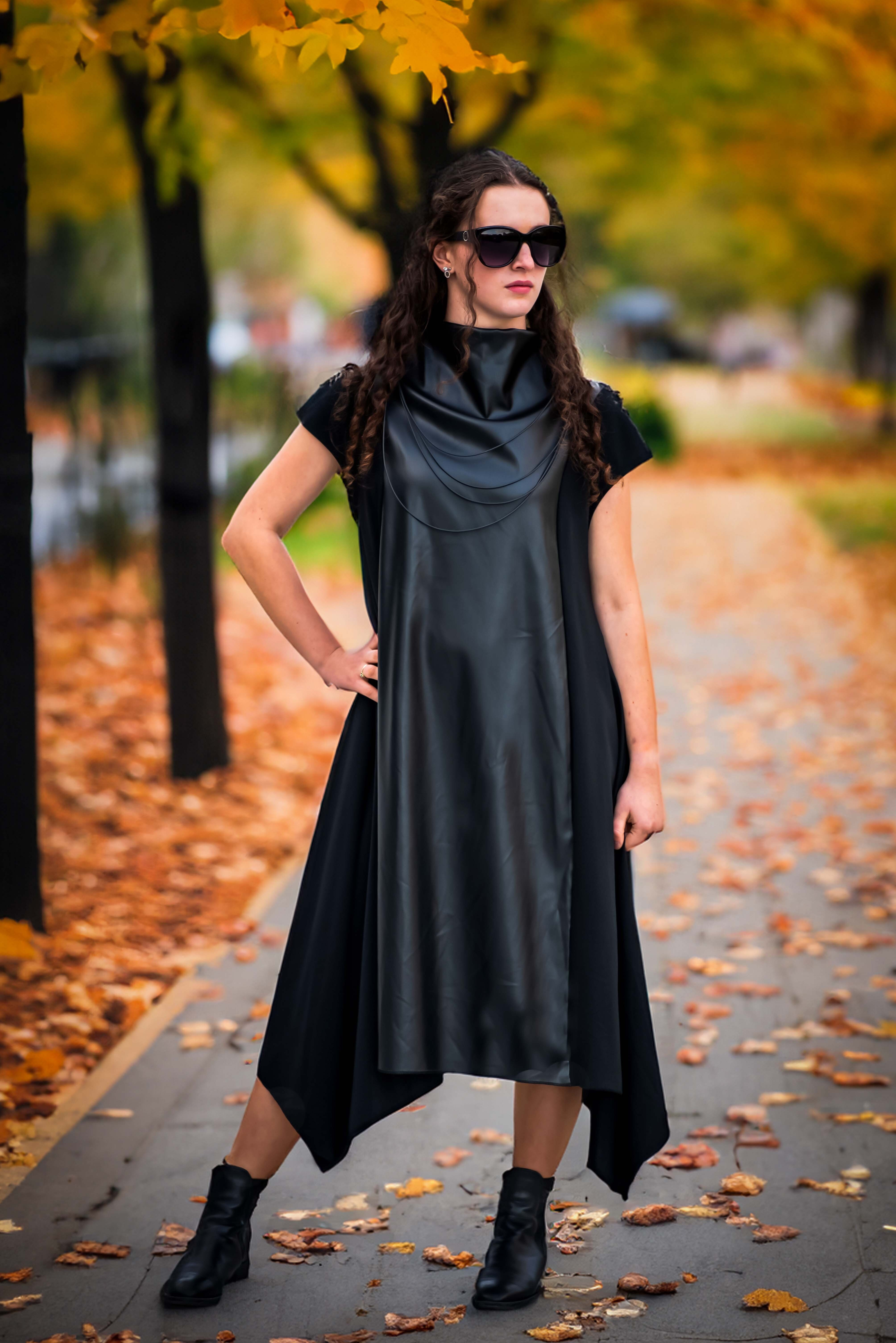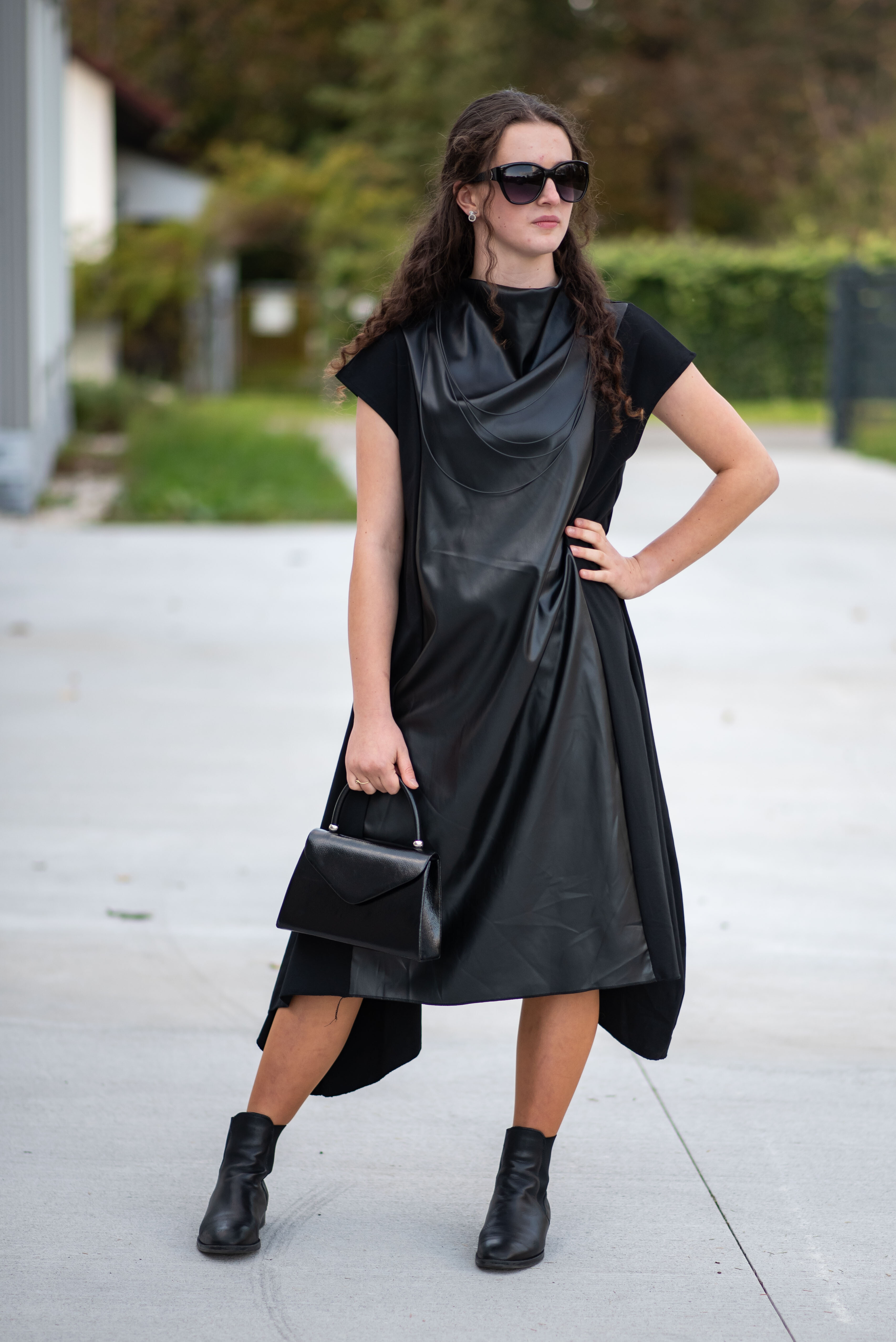 Trendy šaty s aplikací koženky s krátkým rukávem. Šaty/šatovka je ve spodní části po stranách do cípu.