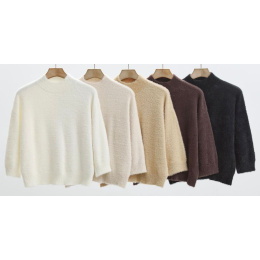 Trendy stojáček z úpletového materiálu s jemným chloupkem. Svetr je volnějšího střihu se stojáčkem.