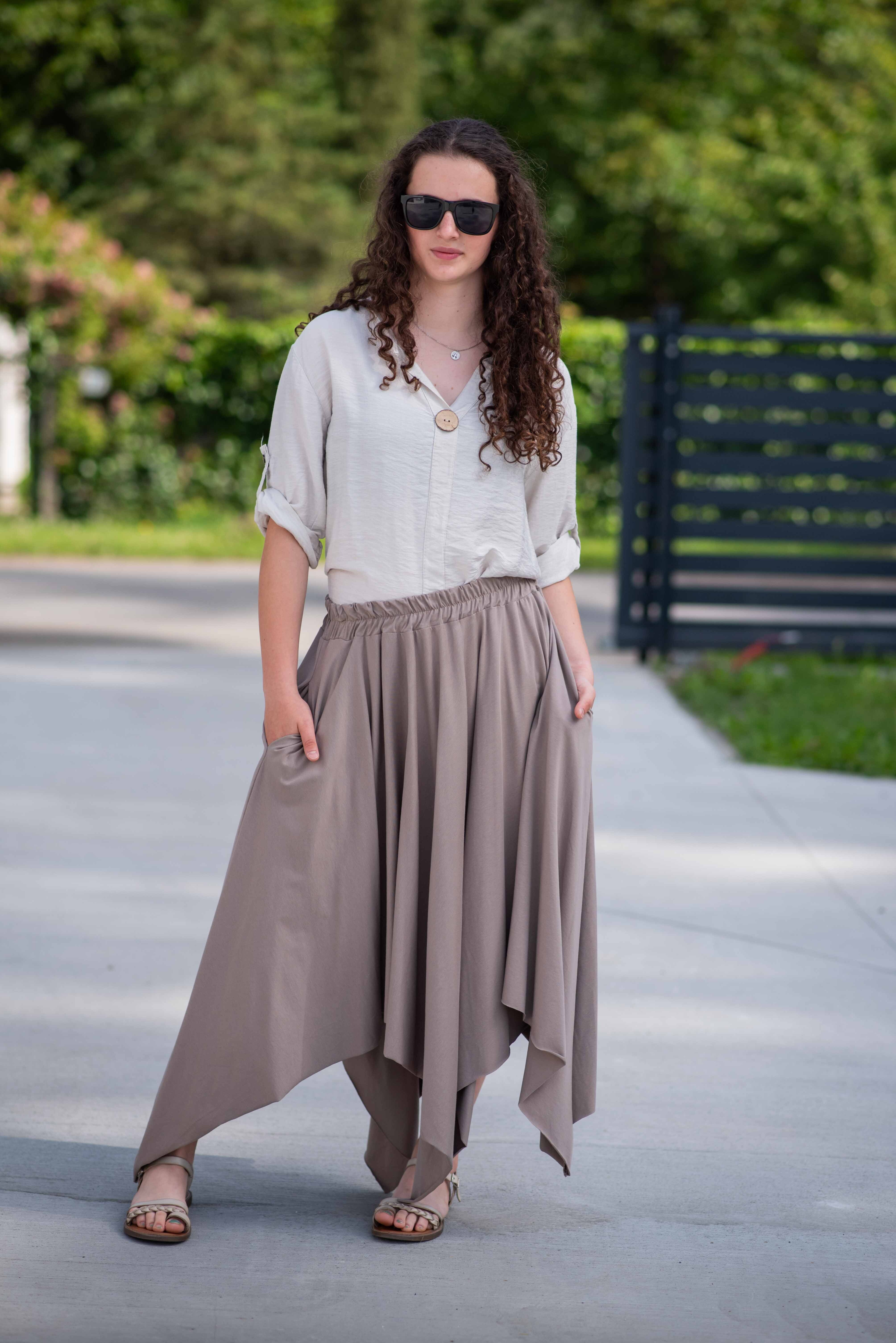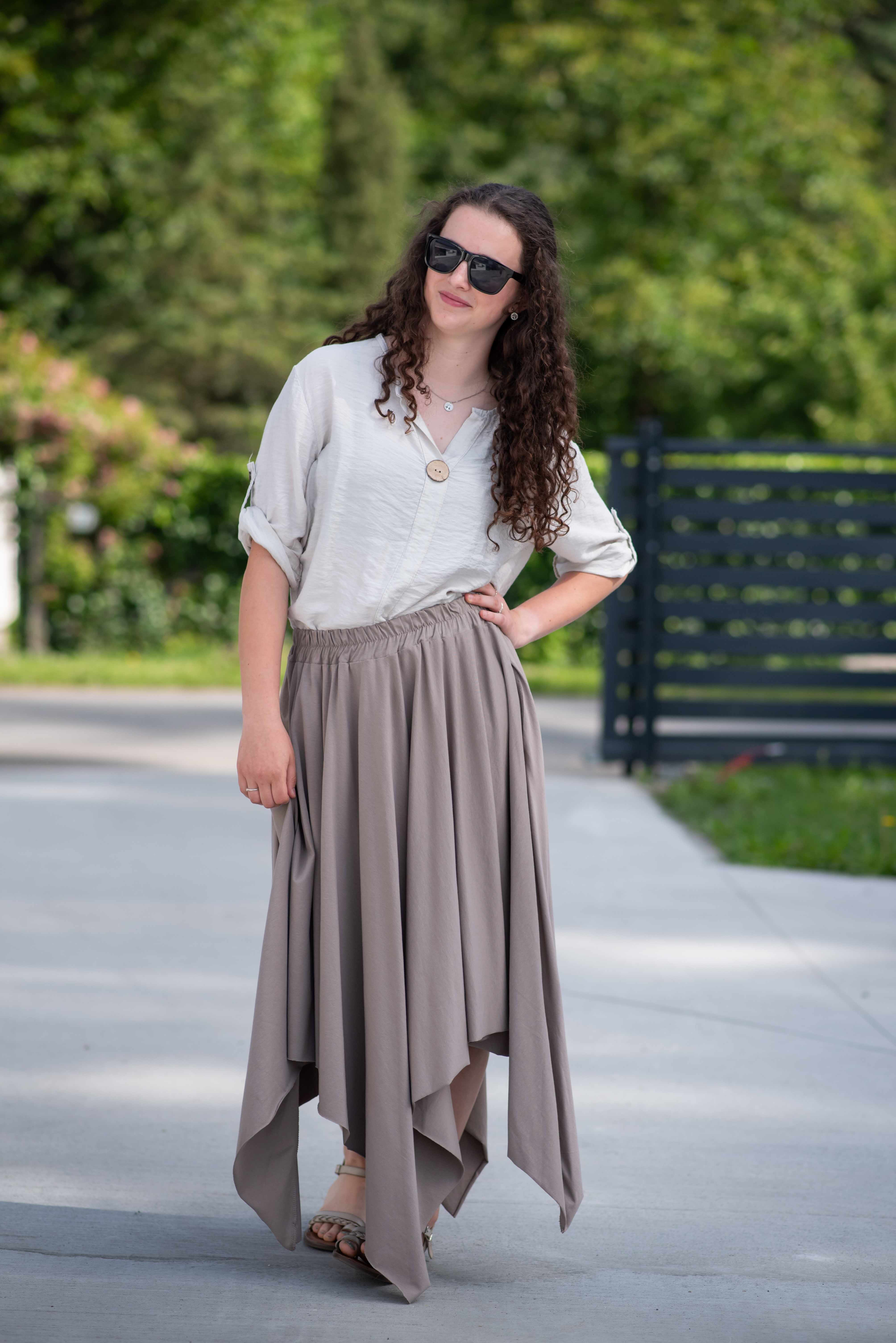 Tepláková trendy sukně do cípů.