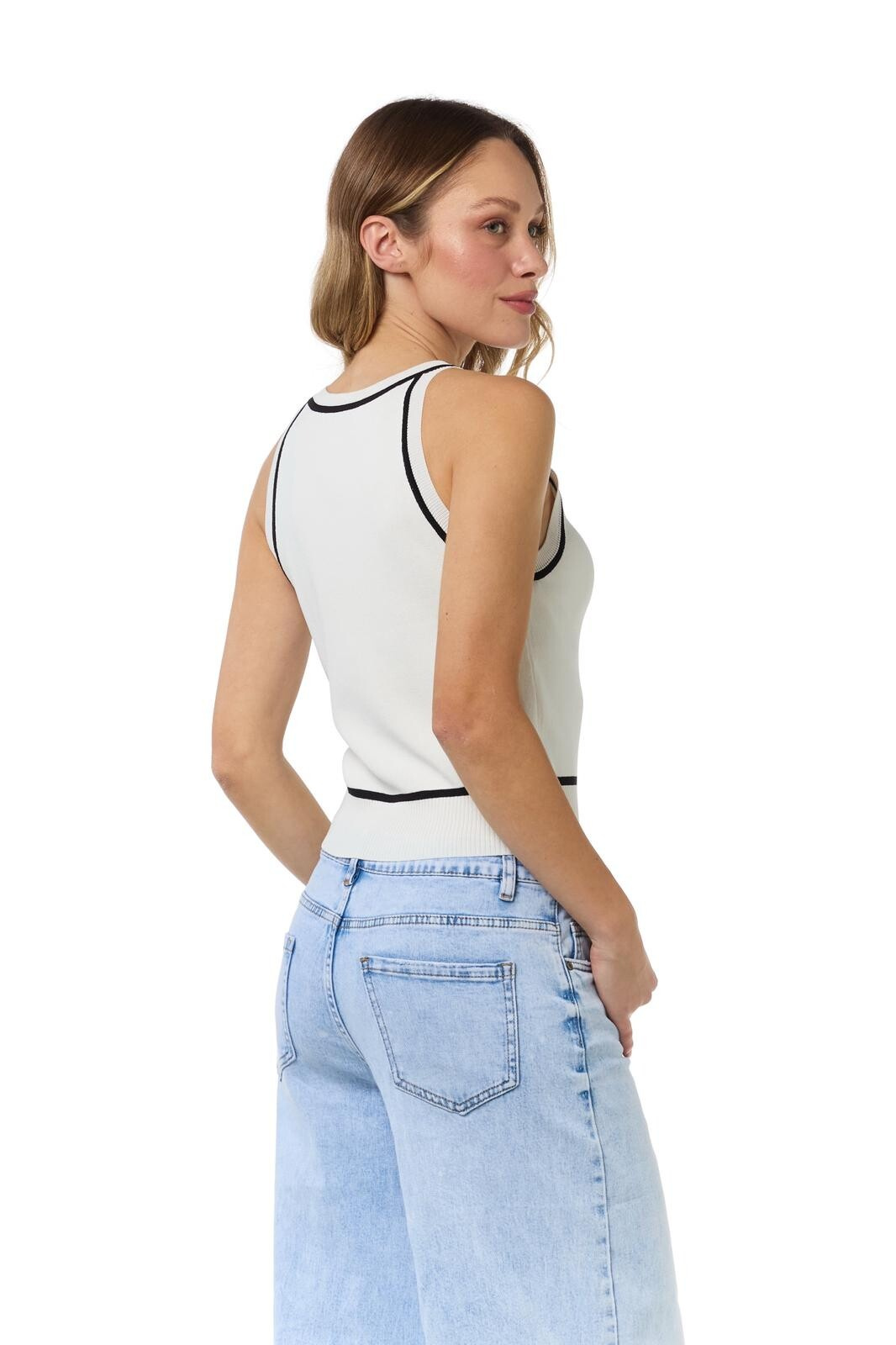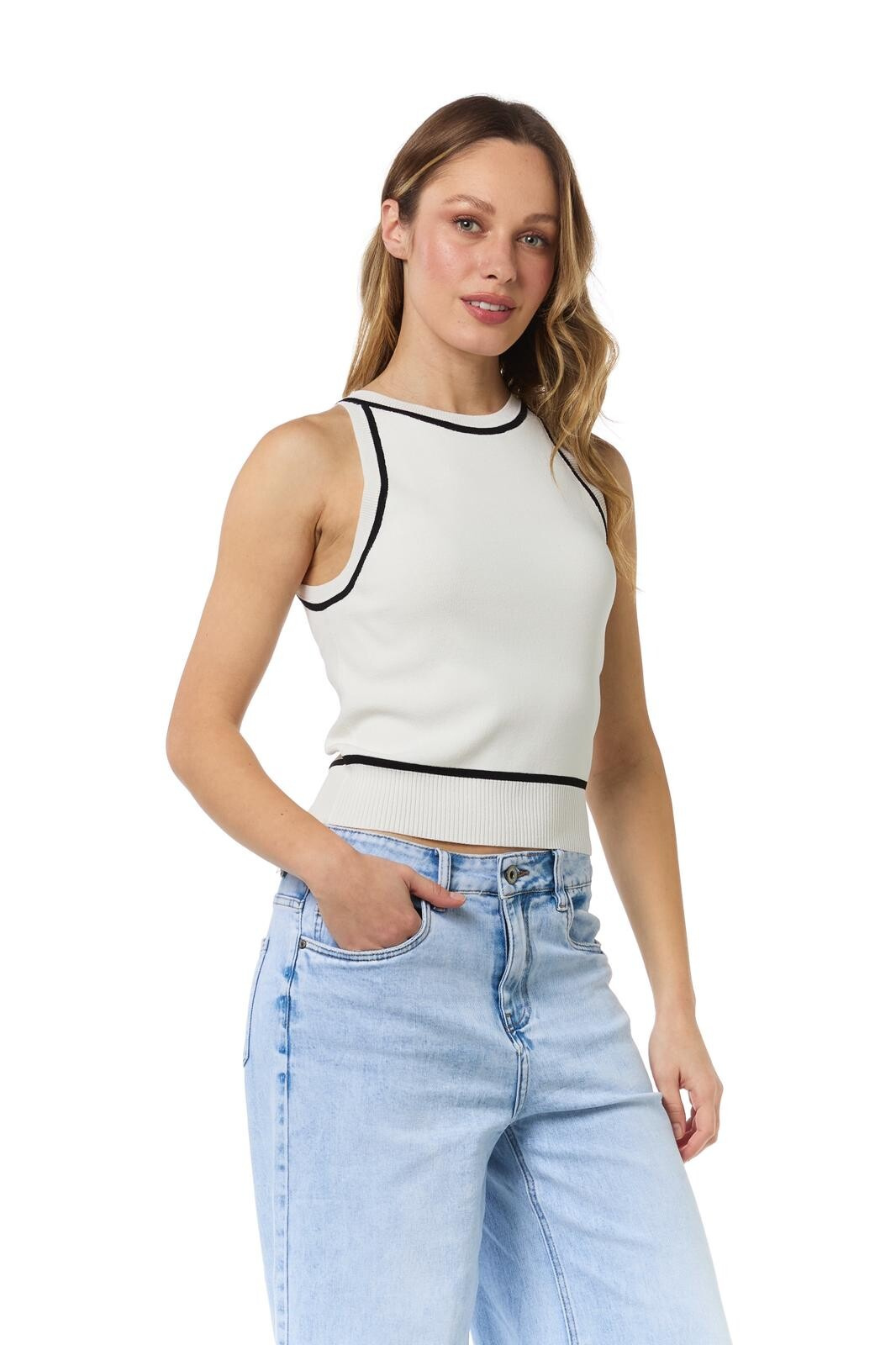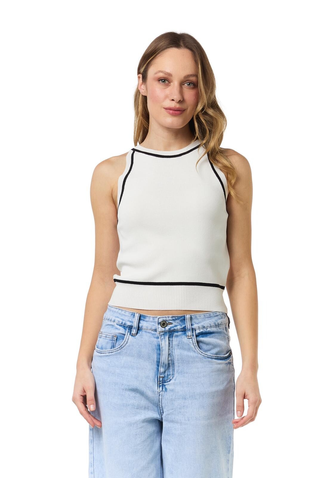 Trendy úpletový top na tenké ramínka z úpletového materiálu.