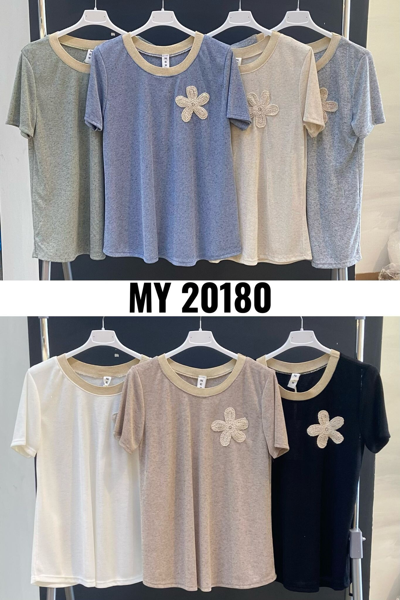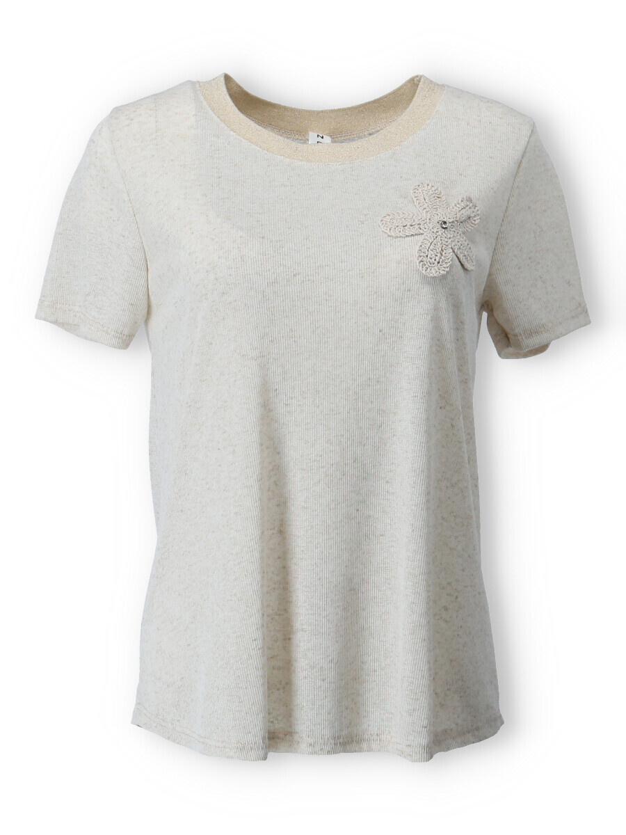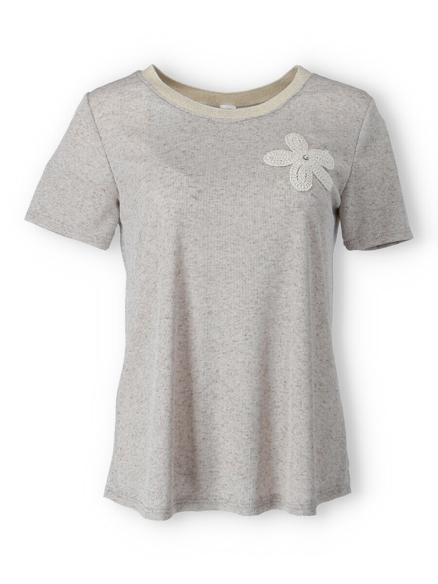 Dámské trendy triko s výšivkou květu na přední straně a krátkým rukávem. Triko je z žebrovaného materiálu, má lurexový lem, kulatý výstřih. Vyrobeno v Itálii
